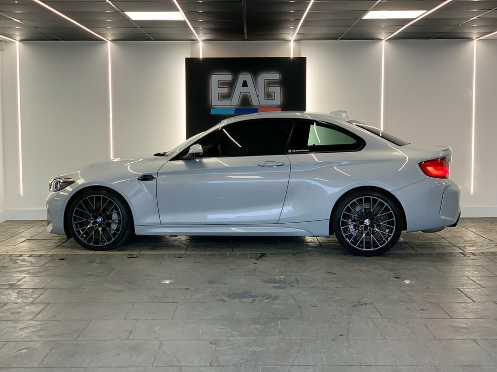 2018 (68) BMW M2 COMPETITION finished in Hockenheim Silver metallic with Black Dakota leather and 788M alloy wheels. Protected perfectly with a full body paint protection film. BMW 2NH big brake kit. Factory spec includes the M2 comfort and plus packs which consist of; comfort access, reversing camera, sun protection glass, fully electric and heated front seats with memory function, storage compartment package, carbon fibre interior trim, cruise control with brake function, adaptive LED ICON headlights with high beam assistant, driving assistant, lane change warning, professional navigation system, Harman/Kardon sound system, wireless telephone charging. 3 owners. Finance available from 9.9% APR (subject to status) 12V Power Socket - Centre Console, 12V Power Socket - Passenger Footwell, 19in M Y-Spoke Alloy Wheels Style 788M w, Access to BMW Connected Plus (12 Month S, Active M Differential, Air Conditioning - Automatic - Dual Zone, Airbags, Airblades - Ferric Grey, Alarm System - Thatcham 1 with Remote Co, Ambient Lighting - Switchable, Armrest - Front with Sliding Adjustment, Automatically Dimming Rear View Mirror, BMW ConnectedDrive Online Services, BMW ConnectedDrive Services, BMW Emergency Call, BMW Mobility System, BMW Professional Radio with Single CD Pl, BMW TeleServices, Battery Age Recognition Function, Battery Safety Cut Off, Black Optic Display Instrument Cluster w, Bluetooth Hands-Free Fa