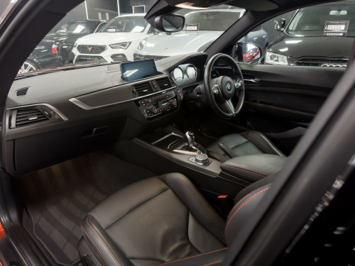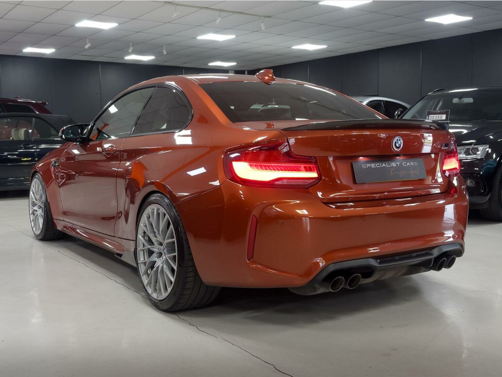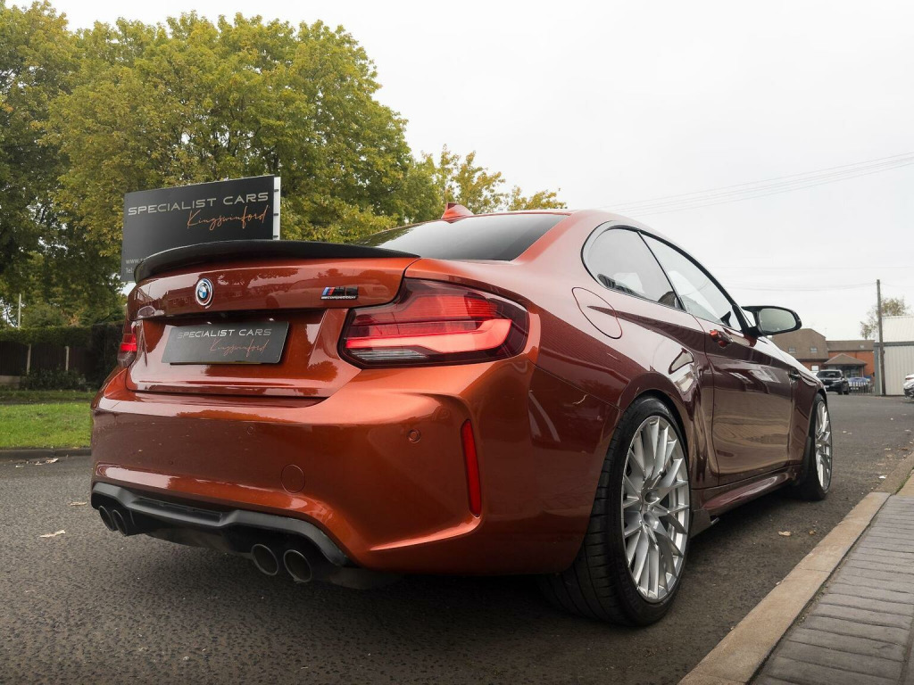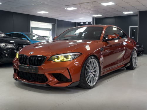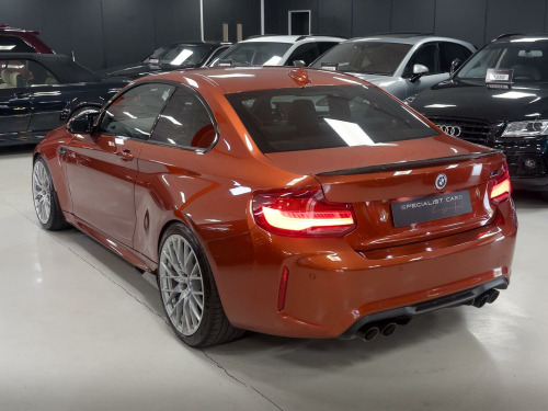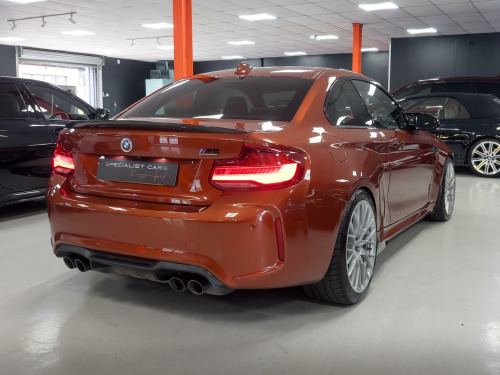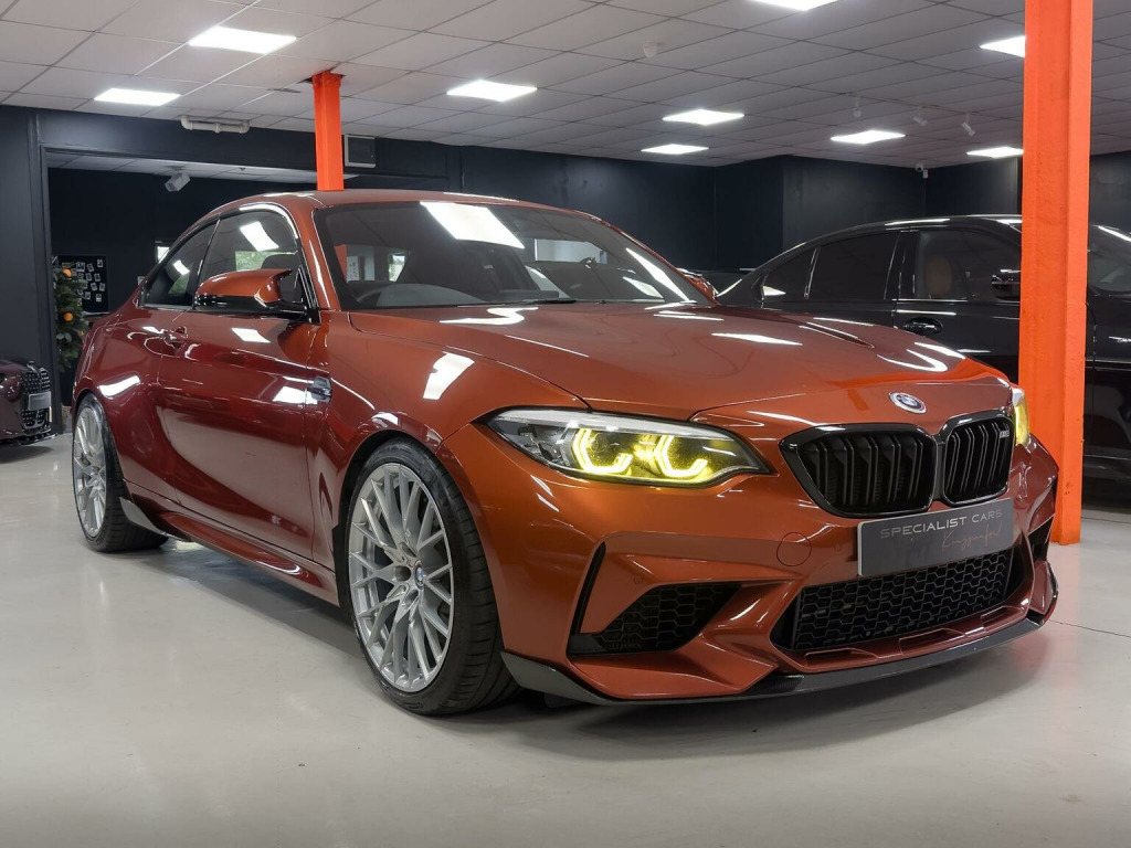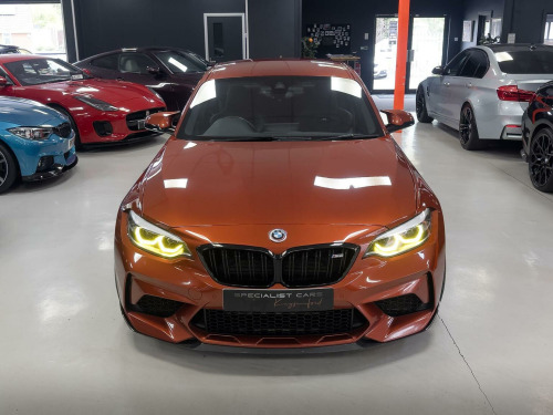 2020 BMW M2 Competition Coupe 3.0 BiTurbo DCT finished in Orange with Dakota Leather in Black with Orange Highlight and Perforated Design. Just 32,500 miles covered and presented with excellent service history including a recent service this year. This M2 is in outstanding condition inside and out, supplied with all relevant documentation, handbooks and accessories, and prepared to our usual high standards ensuring both cosmetic and mechanical elements are in top order. This M2 features an excellent specification thanks to the optional M2 Comfort Pack and M2 Plus Pack. The Comfort Pack enhances everyday usability with heated front seats, heated steering wheel, and front and rear Park Distance Control. The Plus Pack adds premium upgrades including BMW Icon Adaptive LED Headlights with yellow DRLs, a Harman Kardon Surround Sound System, Sun Protection Glazing, and Speed Limit Info for added convenience. Additional optional extras include Eibach lowering springs for a sharper stance and improved handling. As standard, the M2 Competition is exceptionally well equipped with 19-inch M Y-Spoke 788M alloy wheels, M Sport seats, M specific braking system, Active M Differential, BMW Professional Navigation, Bluetooth with USB audio, dual-zone climate control, Cruise Control with Brake Function, Carbon Fibre interior trim, Dynamic Stability Control Plus, Launch Control, Park Distance Control front and rear, and M2-specific aerodynamic bodystyling with quad exhausts in dark chrome, providing a perfect balance of thrilling performance and everyday usability. UK wide delivery available. Get in touch for details. Please note: Although every effort is made to ensure the accuracy of every advert and vehicle specification, system and human errors can occur from time to time and it is advised to check for confirmation.