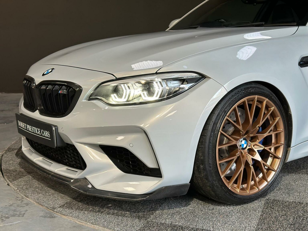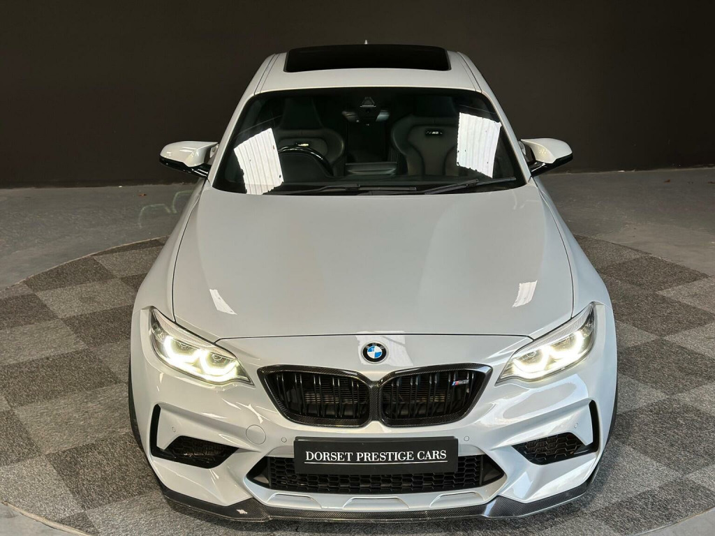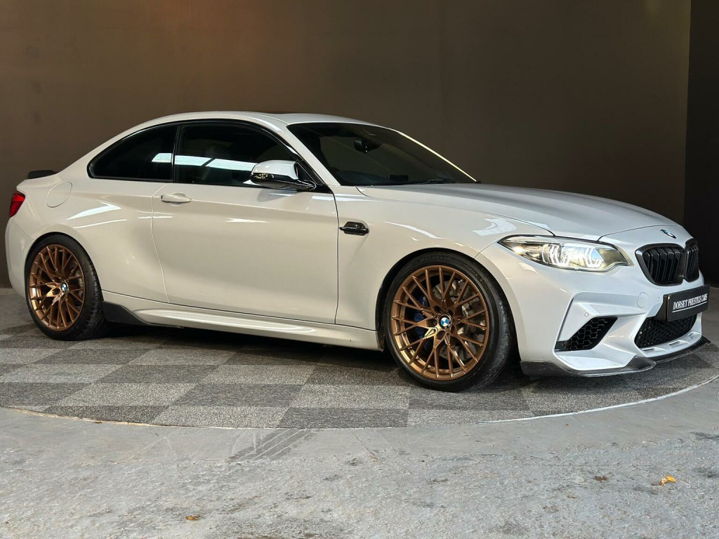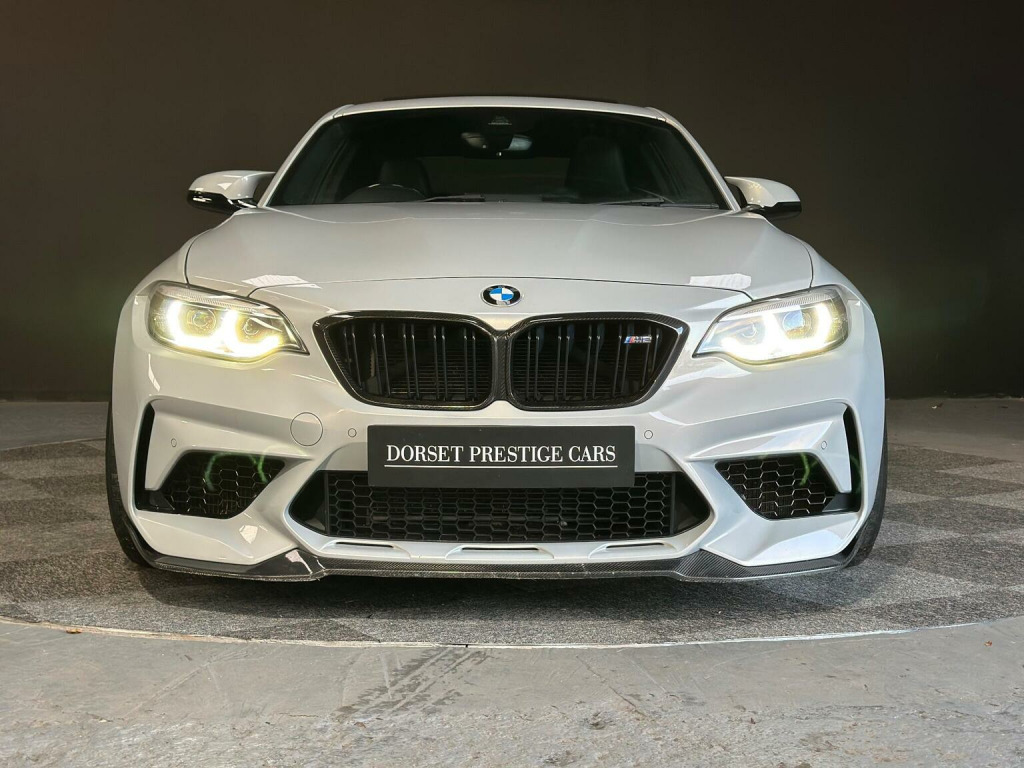 Dorset Prestige Cars are proud to present this BMW M2 3.0 BiTurbo Competition DCT Finished in Hockenheim Silver with Black Leather Heated seats. Exterior - 19 inch M Y-Spoke Satin Bronze Alloys, Full Carbon kit incs- Front spoiler, CS Spoiler, Side Blades, Rear diffuser, Side fender trims, Kidney grille surround, BMW Icon adaptive LED headlights, High-beam Assistant, Reversing Assist Camera, , Interior - Multifunction steering wheel, Front electric seats with memory, Electrically folding and anti dazzle mirrors, Paddle shift, Electric sunroof, I-drive , Bluetooth, Satellite navigation, Ghost immobilizer, Isofix seats, Ski rear hatch, Harman Kardon upgrade, Comfort access system, Heated steering wheel, Sun protection glazing, M2 Comfort pack, M2 Plus pack and much much, Service history; BMW main dealer 02/05/2019 @ 1194 miles, BMW main dealer 02/02/2021 @ 15623 miles, BMW main dealer 07/11/2022 @ 24004 miles, BMW main dealer 17/03/2023 @ 24340 miles, Specialist 23/11/2024 @ 33673 miles, Specialist 26/04/2025 @ 35939 miles. This car come complete with X 2 remote keys and original book pack with manuals. Nationwide Delivery Trailered or Driven you Choose, 6 Months Warranty+ Extended warranties available 12 Months AA Breakdown.... This vehicle comes with 6 months Warranty for full peace of mind (up to 36 month extension available), 3 or 5 year ceramic coating available, train station collection service, nationwide delivery available on all vehicles. Part Exchange welcome. Open Monday to Saturday ***Viewing By Appointment Only*** All Major Credit and Debit Cards Accepted. Please visit our website for more information on our services and to view our other vehicles currently in stock. Secure this vehicle today for £500 deposit T&Cs Apply! All our vehicles are HPI clear and have been through our workshop for a full health check for peace of mind. See our 5***** reviews , Buy with confidence through us. Find us on Facebook Instagram and YouTube! View our full range of cars on our website and Autotrader profile.