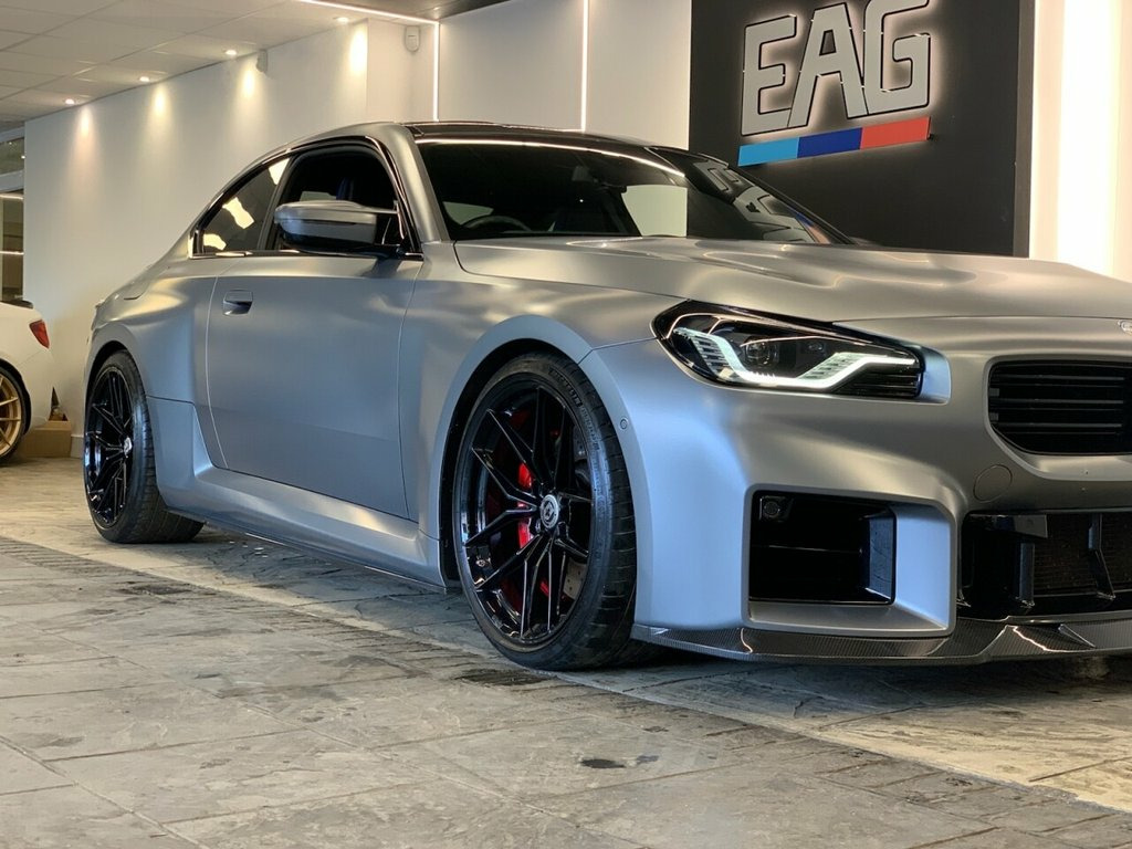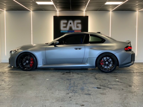 2024 (74) BMW M2 finished in Frozen Pure Grey metallic with Black Vernasca leather. This complete 1 of 1 spec car has been fully OEM converted to X-Drive and is stage 2 tuned by the UK's leading BMW tuner - Tom Wrigley Performance. The extensive list and cost of modifications include; G87 M2 X-Drive conversion (£21,000), Femto DME unlock (£1,000), TWP cat-less downpipes (£599), TWP single mid-pipe (£1,050), Flex Fuel kit (£550), MHD S58 super licence (£450), Stage two custom ECU calibration for 99 ron (£750), Stage two custom ECU calibration for Flex Fuel (£750), gearbox ECU calibration (£300), Eibach Pro Lowering Springs (£350), HRE forged alloy wheels including tyres (£4,500), R44 Performance carbon exterior package (£3,950). Dyno proven 731 bhp. Factory spec includes; heated steering wheel, comfort access, sun protection glass, carbon roof, interior and exterior mirrors with auto dimming, M carbon bucket seats, carbon fibre interior trim, fully electric and heated front seats, cruise control with brake function, adaptive LED lights, parking assistance system, M seat belt stitching, storage tray with wireless charging, Harman/Kardon sound system, Apple CarPlay, Android Auto and Bluetooth connectivity. 2 owners. Full service history. Finance available. 12V Power Socket - Centre Console, 19in Front and 20in Rear Alloy Wheels - , ABS - Anti Lock Braking System, Adaptive LED Headlights, Adaptive M Suspension, Air Conditioning Automatic with Two-Zone, Airbags, Alarm System, Ambient Lighting, Automatically Dimming Rear View Mirror, BMW Connected Package Professional, BMW ConnectedDrive Online Services, BMW Individual Lights Shadow Line, BMW Legal Emergency Call, BMW Live Cockpit Professional, BMW Mobility System, BMW TeleServices, Bumper System - Front and Rear, Carbon Roof, Child Seat ISOFIX Attachment for the Two, Crash Sensor, Cruise Control with Brake Function, Cupholders - Two Front Centre Console, DAB Tuner, DSC - Dynamic Stability Contro