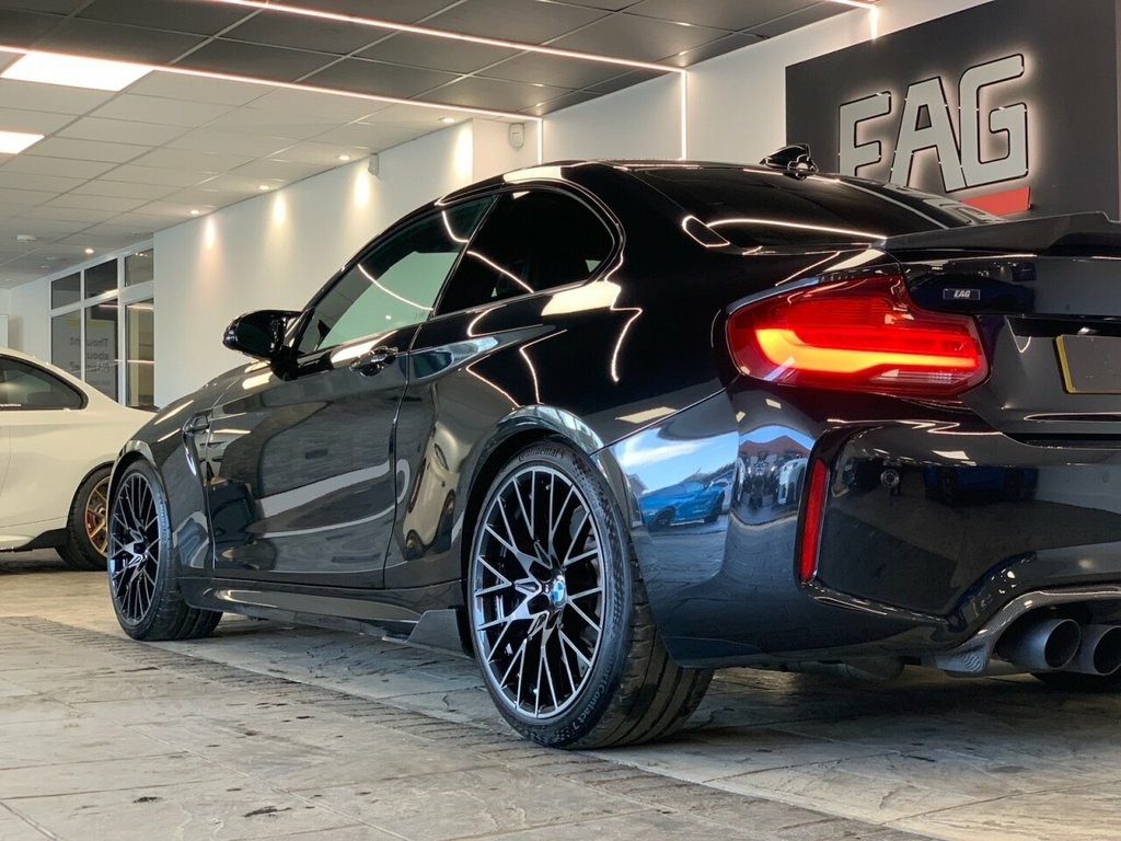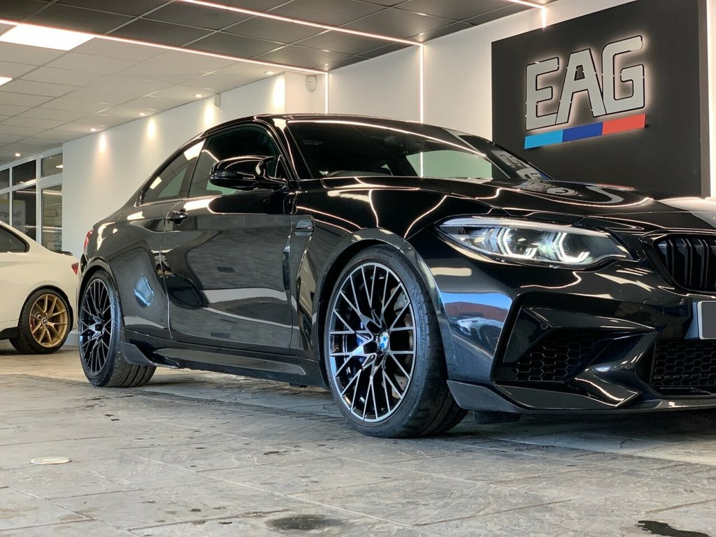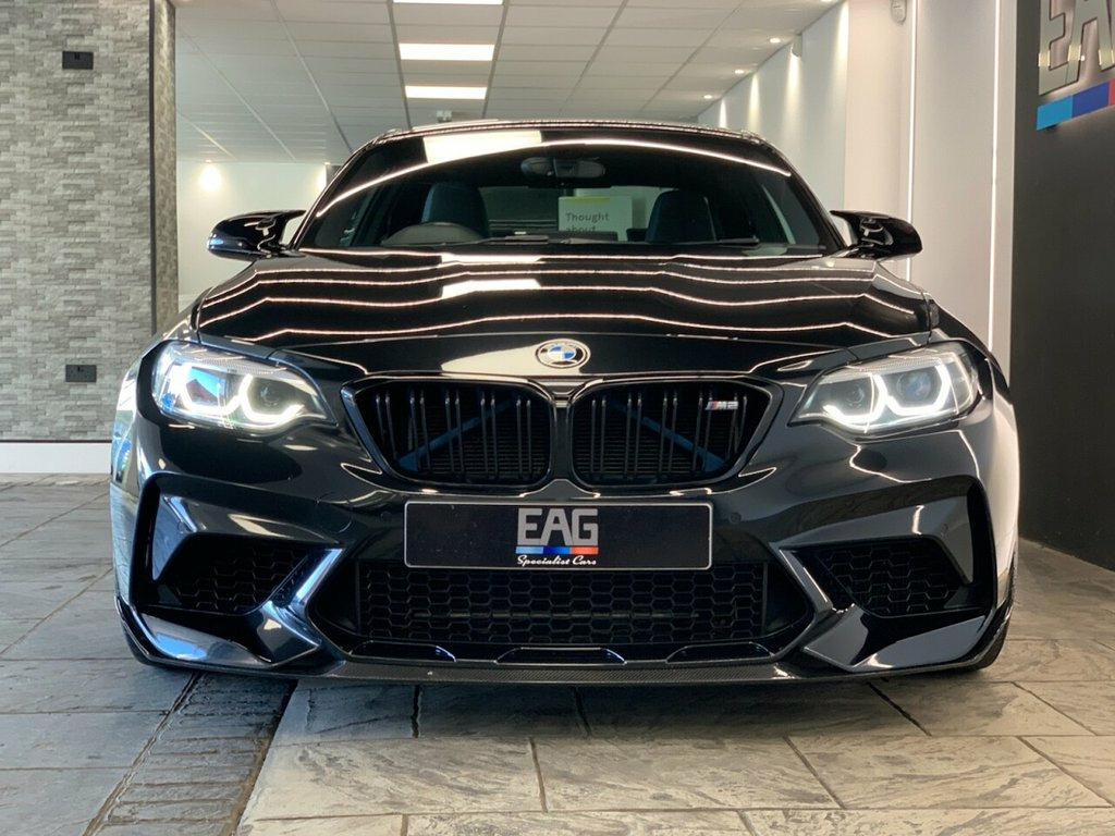 2019 (69) BMW M2 COMPETITION Finished in Sapphire Black with Black Dakota Leather and 788M alloys. This example comes with a Litchfield Stage 1 remap, OPF-back Milltek exhaust system, Crank Hub Capture Plate, MST intakes, Eibach lowering springs and a full carbon fibre body-kit including front splitter, side winglets, rear diffuser and rear spoiler. Factory spec includes; comfort access, reversing camera, sun protection glazing, fully electric and heated front seats with driver memory, storage compartment package, M seat belts, carbon fibre interior trims, park distance control, rain sensor, adaptive LED ICON headlights, high beam assistant, cruise control with brake function, navigation system professional, Harman/Kardon surround sound system, telephony with wireless charging, DAB radio and Bluetooth connectivity. 3 owners. Full service history. HP finance available from 9.9% APR (subject to status) 12V Power Socket - Centre Console, 12V Power Socket - Passenger Footwell, 19in M Y-Spoke Alloy Wheels Style 788M w, Access to BMW Connected Plus (12 Month S, Active M Differential, Air Conditioning - Automatic - Dual Zone, Airbags, Airblades - Cerium Grey, Alarm System - Thatcham 1 with Remote Co, Ambient Lighting - Switchable, Armrest - Front with Sliding Adjustment, Automatically Dimming Rear View Mirror, BMW ConnectedDrive Online Services, BMW ConnectedDrive Services, BMW Emergency Call, BMW Mobility System, BMW Professional Radio with Single CD Pl, BMW TeleServices, Battery Age Recognition Function, Battery Safety Cut Off, Black Optic Display Instrument Cluster w, Bluetooth Hands-Free Fa