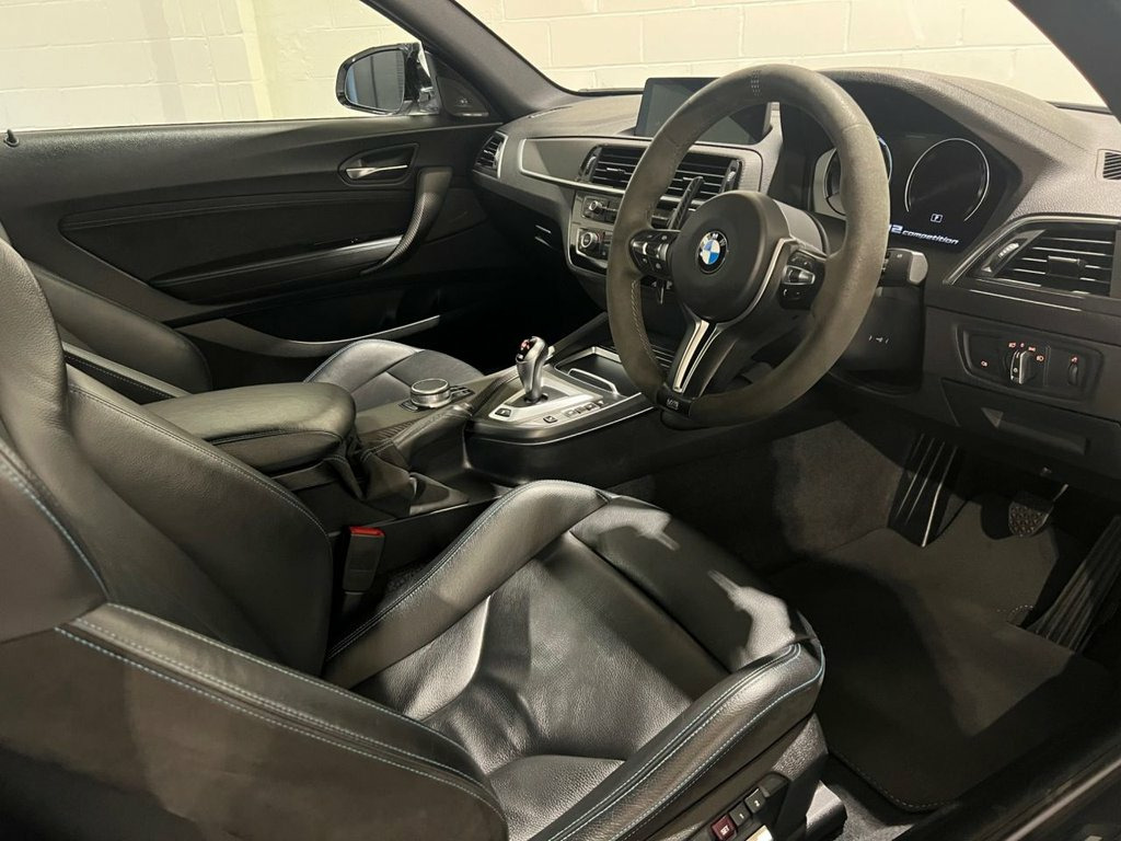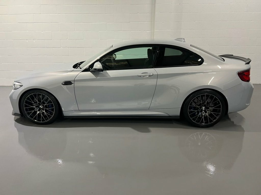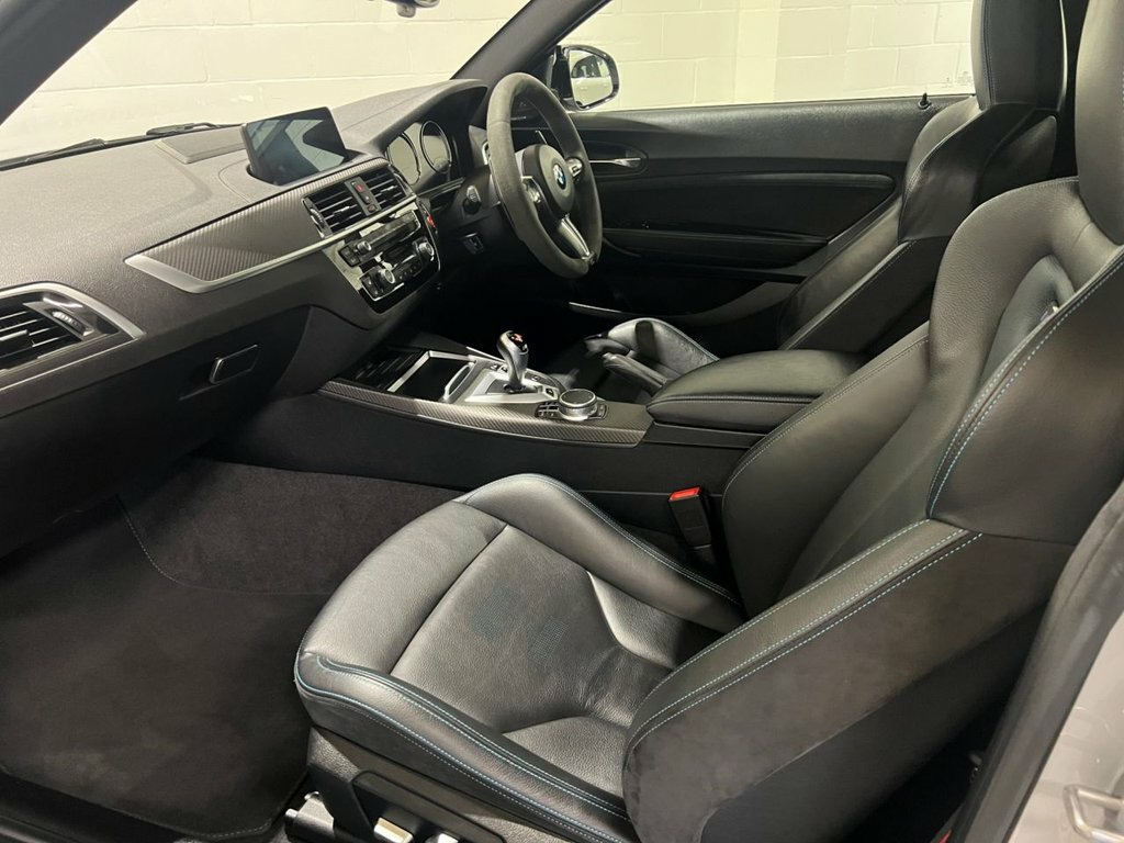 An exceptional example of the 2019 BMW M2 Competition, proudly offered for sale by VEECAR. We were delighted to acquire this car directly in part exchange from one of our customers and are excited to bring it to market. Finished in striking Hockenheim Silver, beautifully contrasted by the Black Dakota leather interior with Blue highlights, this M2 Competition is a truly eye-catching car. Benefitting from some tasteful cosmetic enhancements which really make it stand out, you will note carbon front splitter, rear diffuser, spoiler, and tailpipe covers fitted to the original OEM exhaust system in the images. In addition, the previous owner upgraded the suspension to BMW M Performance coilovers, delivering a softer ride while achieving, in our opinion, the perfect stance. Beyond these upgrades, the car benefits from the highly desirable M2 Comfort Pack and M2 Plus Pack, as well as a through-loading system and heated steering wheel. The former keeper also invested significantly in a full-body XPEL paint protection film, ensuring outstanding paintwork condition and offering peace of mind for the next owner. Provenance is excellent, with a full service history visible via the iDrive images included in this advert. Prior to sale, the car has undergone our own comprehensive inspection and has been supplied with a fresh MOT, which returned no advisories. For further information, please do not hesitate to contact us. Finance options are available, and part exchange is welcome. Viewings 12V Power Socket - Centre Console, 12V Power Socket - Passenger Footwell, 19in M Y-Spoke Alloy Wheels Style 788M w, Access to BMW Connected Plus (12 Month S, Active M Differential, Air Conditioning - Automatic - Dual Zone, Airbags, Airblades - Cerium Grey, Alarm System - Thatcham 1 with Remote Co, Ambient Lighting - Switchable, Armrest - Front with Sliding Adjustment, Automatically Dimming Rear View Mirror, BMW ConnectedDrive Online Services, BMW ConnectedDrive Services, BMW Emergency Call, BMW Mobility System, BMW Professional Radio with Single CD Pl, BMW TeleServices, Battery Age Recognition Function, Battery Safety Cut Off, Black Optic Display Instrument Cluster w, Bluetooth Hands-Free Fa