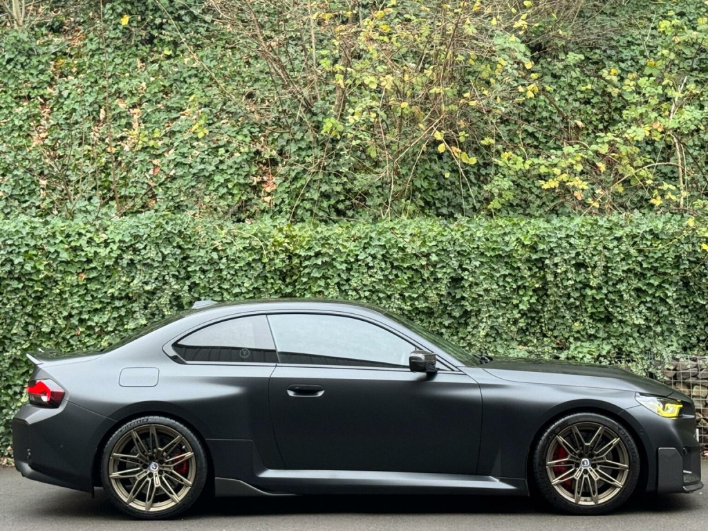 2023 BMW M2 Competition Finished in Satin Black PPF. Specifications on this car include - Bucket Seats | M Performance Sports Suspension | M Drivers Package | M Race Track Package | Carbon Kit | Yellow DRL lights | Heated Steering Wheel | Reverse Camera | Apple Car Play | Harman Kardon Sound System | Privacy Glass & much more listed in the standard spec section below. Supplied with two keys and all correct documentation, HPI clear, Full Service History, 1 Previous Owner. This vehicle has passed a thorough inspection which includes exterior and interior inspection, mechanical inspection & document and history inspection. All our cars comes with a HPI report to prove they havent been written off & are clear of finance. We are available on whats app - 07827 958980 or alternative feel free to give us a call or drop us a email using the message seller button above. We offer some of the lowest finance rates in the country on all of our vehicles. Please get in contact with us & one of our finance experts will help you build the ideal package for you based on your monthly affordability, We would love to take your vehicle in a part exchange no matter what make, model or condition or if you just want to sell your vehicle then please get in contact with us for more information. We Are Open By Appointment Only So Please Get In Contact With Us To Book A Viewing. We offer nationwide delivery on all of our cars & extended warranty packages