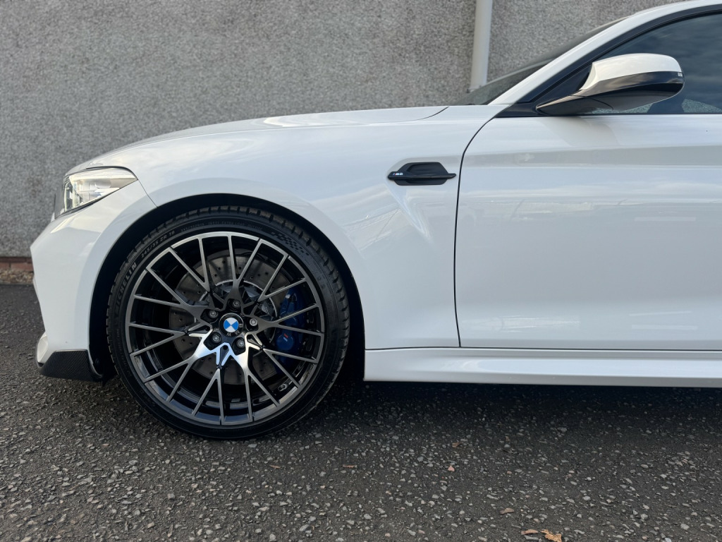 For sale BMW M2 Competition in Alpine White. Over £5000 of factory options. Full BMW History, 404bhp. , Factory options include -, ▪️19 788M alloys (done in gloss black). ▪️M2 Plus Pack. ▪️M2 Comfort Pack. ▪️Alpine White Paint. ▪️Harman Kardon Loudspeaker System. ▪️BMW Icon Adaptive LED headlights. ▪️Heated Leather Seats. ▪️Heated Steering Wheel. ▪️Electric Seats with drivers memory. ▪️Reverse Camera. ▪️Sun protection glazing. , ▪️Along with Carbon front spitter, rear spoiler & side skirts. , The car has very low mileage having covered only 19302 miles from new and has a full BMW service history with the last one having been carried out at 18860 miles. , Long MOT. , Parts and labour warranty also included. , 3.0 litre engine that averages around 30mpg. , The car is in immaculate condition both inside and out. Is mechanically 100% perfect and drives superbly. , Standard features include- Alloy Wheels, Climate Control, Sat Nav, Leather Seats, 8 Speed Semi Auto Gearbox, Body Coloured Bumpers & Door Handles, Heated Seats, Air Conditioning, Dual Zone Digital, CD/Media System, Rear Park Sensors, ESP, Electric Windows, Electric/Heated Mirrors, Driver Information System, Heat Insulating Glass, Front & Rear Heated Screen, Front & Rear Fog Lights, Remote Central Deadlocking (doors/boot lid), Alarm & Immobiliser System, Front Seats with tilt/lumbar adjustment, Driver/Passenger & Side Airbags, Rear Headrests, ABS, PAS, Isofix Child Seat Anchor Points, 3x3 Point Rear Seat Belts, Height Adjustable Drivers Seat, Adjustable Steering Column/Wheel, Headlight Levelling Control, Air Recirculation Control, Trip Computer. , ▪️Buy from the comfort of your own home without with nationwide delivery available.. ▪️Low rate finance available from 8.9% APR (subject to credit history). ▪️Walk round videos/FaceTime calls available. If you require any further information or have any questions then please contact us. , All part exchanges are welcome with top prices paid for low mileage, well maintained examples with full service history. , More pictures upon request although viewing is highly recommended. If you require any further information or have any questions then please contact us. , £38000