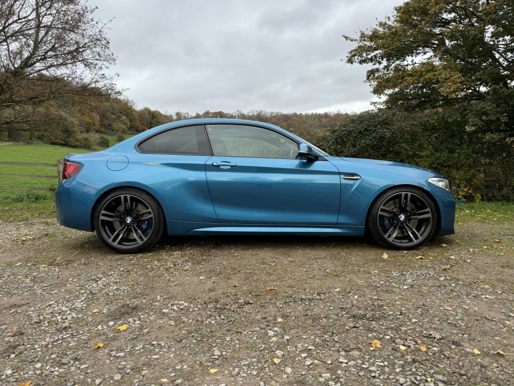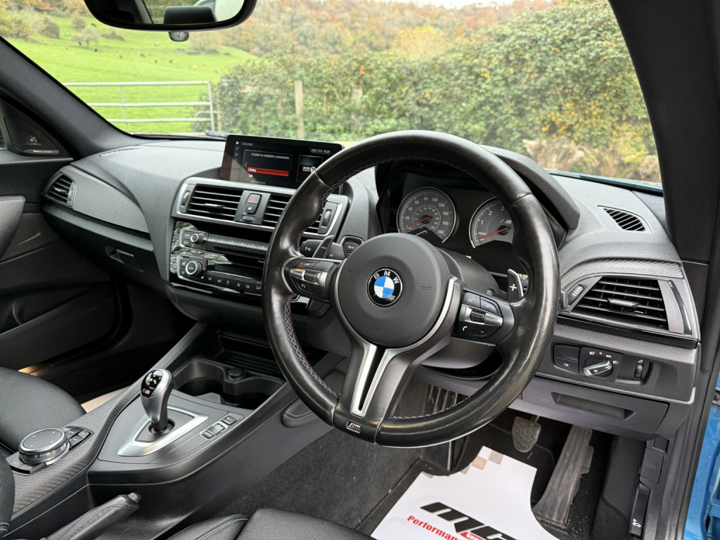 We Are Pleased To Offer This Immaculate Long Beach Blue BMW M2 With A Perfect Service Record And Lovely Factory Specification. , Full Spec Includes Professional Satellite Navigation, Full Black Dakota Leather Interior With Blue Stitching, DAB Radio With Harmon Kardon Surround Speaker System, Heated Seats & Steering Wheel, Auto Xenon Headlamps With Headlamp Wash, Cruise Control With Brake Function, Dual Zone Digital Climate Control Air Conditioning, Apple CarPlay, Bluetooth, Multi Function Steering Wheel, M Twin Clutch Transmission With Drive Logic & Steering Wheel Mounted Paddle Shift, Electric Windows, Electric Mirrors With Black Caps, Remote Central Locking, 19 LA437 Double Spoke Alloy Wheels With Polished Face, Rear Privacy Glass, Front Centre Armrest, Front & Rear Parking Sensors, Rain Sensitive Wipers, High Gloss Shadow Line, Carbon Dash Inserts, Multi Airbags. , This Example Is Further Enhanced With A TRS Performance Stage 1 Remap (Recognised Tuner For The BMW M2), Cold Start Coded Out, iDrive Updated To iDrive 6 With Full Screen Wireless Apple Car Play, Eibach Loweing Springs, Millay Front Control Arms, Braided Brake Hoses, DO88 Charge Pipe Upgrade & Common Diff Input Seal Replaced, New OEM Brake Discs 3 Months Ago, Perfect FULL BMW MAIN DEALER SERVICE HISTORY With All Services Green & On Time. Vehicle Has Also Been Previously Ceramic Coated So Presented In Immaculate Condition.