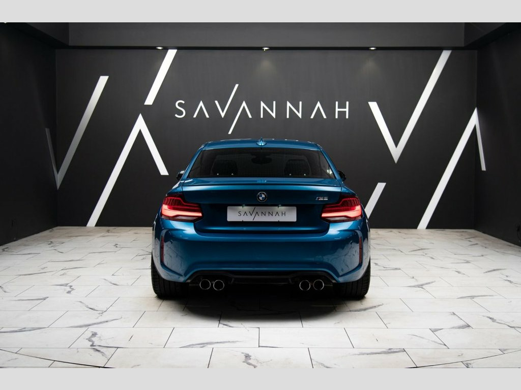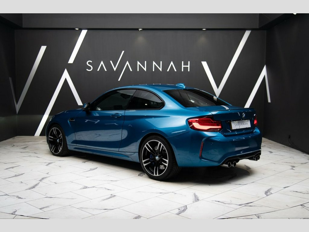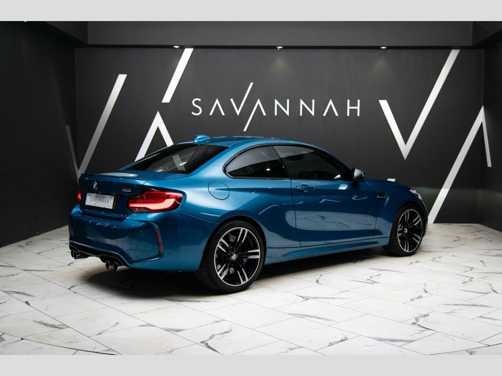 This BMW M2 3.0i DCT Coupe is a pure expression of performance engineering — a driver's car that blends raw power with refined precision. Finished in striking Long Beach Blue, it commands attention with its M Aerodynamic bodystyling, 19-inch forged M Double-Spoke alloy wheels, and distinctive quad chrome exhausts that hint at the 370hp performance beneath the bonnet. The interior continues the performance theme, featuring Dakota Leather sports seats with blue contrast stitching, carbon fibre interior trim, and an M leather multifunction steering wheel, all designed to immerse the driver in a focused yet luxurious environment. Every drive is sharpened by the M DCT gearbox, Active M Differential, and M-specific suspension, ensuring an agile, responsive, and exhilarating experience. Premium touches such as the Harman Kardon surround sound system, Comfort Access, and electric memory seats elevate everyday usability without compromising its motorsport DNA. 12V Power Socket - Centre Console, 12V Power Socket - Passenger Footwell, 19in Alloy Wheels - M Double Spoke Style, Active M Differential, Air Conditioning - Automatic with Two-Zo, Airbags, Airblades - Ferric Grey, Alarm System - Thatcham 1 with Remote Co, Ambient Lighting - Switchable, Armrest - Front with Sliding Adjustment, Automatically Dimming Rear View Mirror, BMW ConnectedDrive Online Services, BMW ConnectedDrive Services, BMW Emergency Call, BMW Mobility System, BMW Professional Radio with Single CD Pl, BMW TeleServices, Battery Age Recognition Function, Battery Safety Cut Off, Bluetooth Hands-Free Facility with USB A, Brake Pad Wear Indicator, Bumper System - Front and Rear, Central