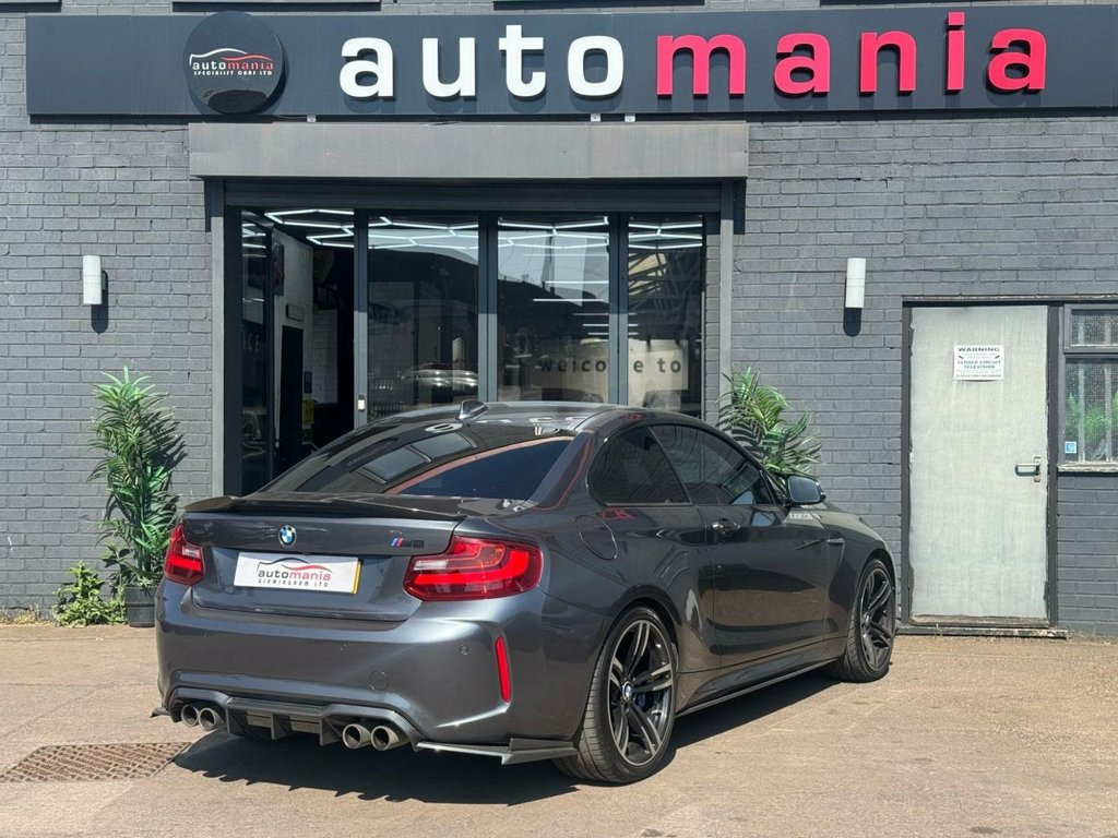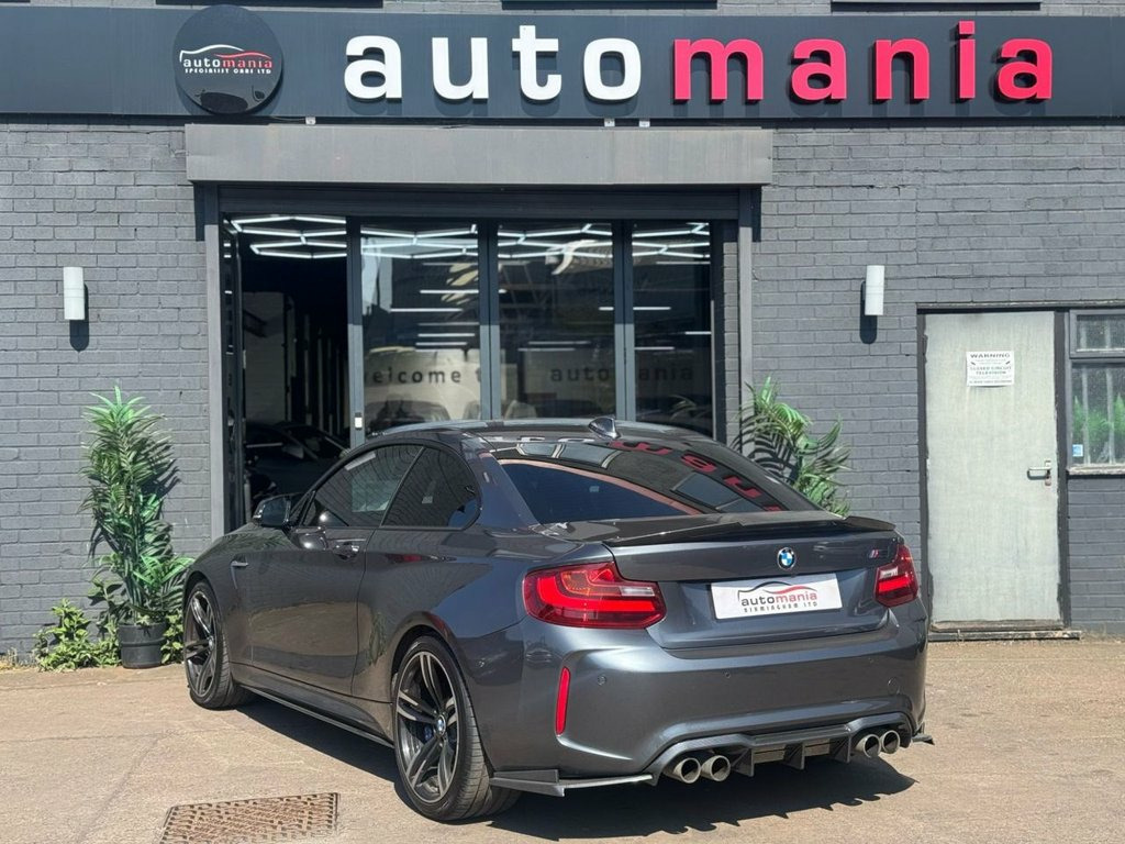 2017 BMW M2 finished in Metallic grey. This car is a well Equipped Great City Car. Includes Interior Features such as; Adjustable Head Restraints, Air Conditioning, Bottle Holders - Front Centre Console and Door, Bottle Holders - Rear Door, Door Courtesy Lights, Driver and Passenger Sun Visor with Ticket Holder, Driver Seat Height Adjustment, Front Door Pockets, Height Adjustable Steering Column, Luggage Compartment Light, Rear Door Pockets, Split Folding Rear Seats - 60-40, Sun Visors with Vanity Mirrors Exterior Features, Allow wheels, Door Handles - Body Coloured, Door Mirrors - Body Coloured, Electric Adjustment and Heated Door Mirrors, Electric Windows - Front and Rear, One Touch Down Drivers Window Control, Rear Spoiler with Integrated Brake Light, Tyre Repair Kit Other Features and Key Information 12V Power Outlet - Front x2, Cruise Control with Speed Limiter, Daytime Running Lights, Power Assisted Steering, RDS Radio-CD Player with MP3 Compatibility, Speakers x2, Trip Computer, Tyre Pressure Monitoring System - TPMS, USB and AUX Connections, ABS - Anti-Lock Brake System, Airbags - Driver, Airbags - Front Passenger, Airbags - Front Side, Airbags - Full Length Curtain, BAS - Brake Assist System, Childproof Rear Door Locks, ESP - Electronic Stability Programme, Front and Rear Seatbelt Reminder, Front Passenger Airbag De-Activation Switch, Immobiliser, ISOFIX Child Seat Anchorage Points - Rear - Outer Rear, Remote Central Locking. 12V Power Socket - Centre Console, 12V Power Socket - Passenger Footwell, 19in Alloy Wheels - M Double Spoke Style, 3.5mm Auxiliary Input Point for Auxiliar, Active M Differential, Air Conditioning - Automatic with Two-Zo, Airbags, Airblades - Ferric Grey, Alarm System - Thatcham 1 with Remote Co, Ambient Lighting - Switchable, Armrest - Front with Sliding Adjustment, Automatically Dimming Rear View Mirror, Battery Age Recognition Function, Battery Safety Cut Off, Bluetooth Hands-Free Facility with USB A, BMW ConnectedDrive Online Services, BMW Emergency Call, BMW Mobility System, BMW Professional Radio with Single CD Pl, BMW TeleServices, Brake Pad Wear Indicator, Bumper System - Front and