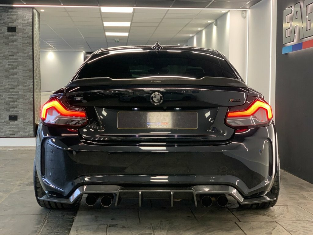 2018 (18) BMW M2 Finished in Black Sapphire with Black Dakota leather and Vossen Concaver CVR2 alloys. This example also includes a Stage 2 re-map with a de-catted downpipe as well as Eibach lowering springs, wheel spacers, G-series rear lights and a full carbon fibre exterior, AIRTEC induction kit, uprated boost pipes and intercooler. Factory spec includes; reversing camera, sun protection glazing, fully electric and heated front seats with driver memory, sports seats, storage compartment package, interior carbon fibre, headlight cleaning system, park distance control, rain sensor, cruise control with brake function, navigational system professional, Harman/Kardon surround sound system, DAB radio and Bluetooth connectivity. 5 owners. Full service history. PCP and HP finance available from 9.9% APR (subject to status) 12V Power Socket - Centre Console, 12V Power Socket - Passenger Footwell, 19in Alloy Wheels - M Double Spoke Style, Active M Differential, Air Conditioning - Automatic with Two-Zo, Airbags, Airblades - Ferric Grey, Alarm System - Thatcham 1 with Remote Co, Ambient Lighting - Switchable, Armrest - Front with Sliding Adjustment, Automatically Dimming Rear View Mirror, BMW ConnectedDrive Online Services, BMW ConnectedDrive Services, BMW Emergency Call, BMW Mobility System, BMW Professional Radio with Single CD Pl, BMW TeleServices, Battery Age Recognition Function, Battery Safety Cut Off, Bluetooth Hands-Free Facility with USB A, Brake Pad Wear Indicator, Bumper System - Front and Rear, Central