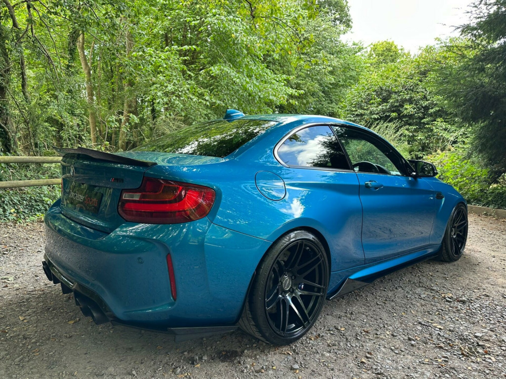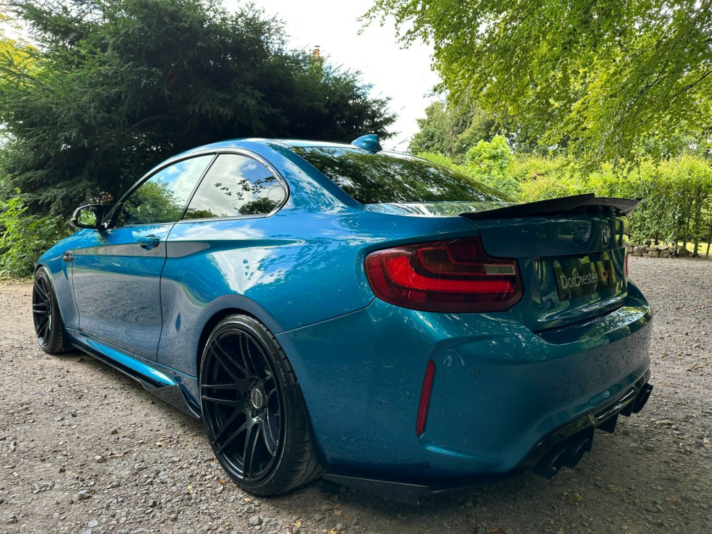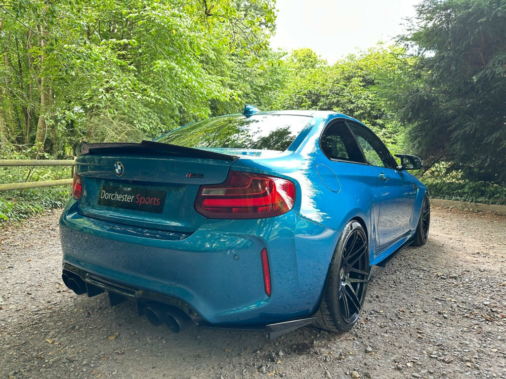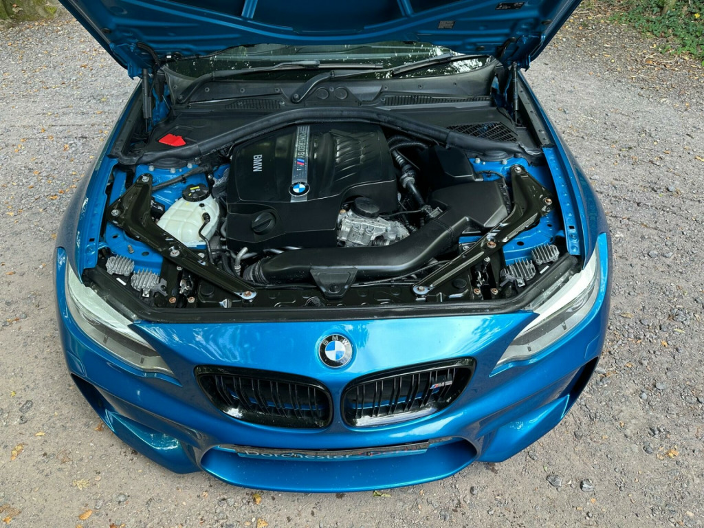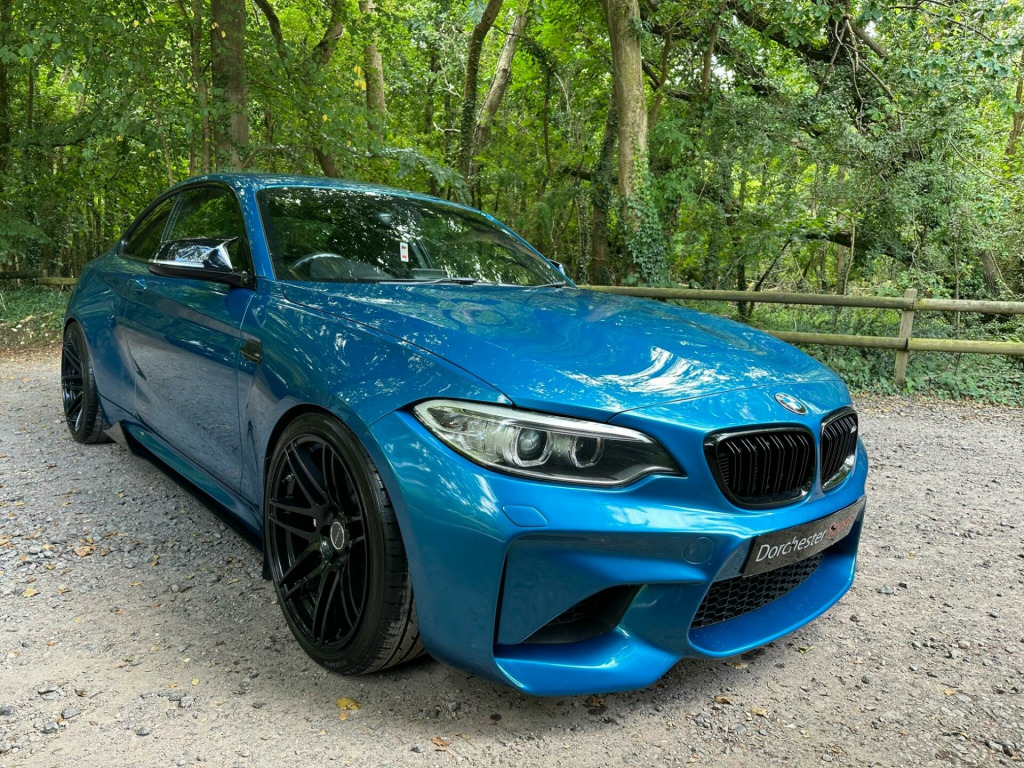 ++JUST ARRIVED INTO STOCK THIS TASTEFULLY MODIFIED BMW M2 3.0 DCT AND THIS PARTICULAR M2 HAS A LOVELY FACTORY SPECIFERCATION STARTING WITH THE DCT GEARBOX, ELECTRIC MEMORY SEAT FUNCTION, HARMAN/KARDON SOUND SYSTEM, COMFORT ACCESS, REVERSE CAMERA, FRONT SEAT HEATING, ELECTRIC FOLDING AND DIMMING MIRRORS, HIGH BEAM ASSIST, ADAPTIVE HEADLIGHTS, CARBON FIBRE INTERIOR TRIM, LONG BEACH BLUE METALLIC, SUN PROTECTION GLASS AND WE HAVE ALSO GOT EXTENDED TAIL PIPES, LOWERING SPRINGS, UPGRADED 19 INCH WHEELS, APPLE CAR PLAY, SIDE SKIRTS, DIFFUSER AND BOOT LIP THAT TARNSFORMS THE CAR AND CATCHES THE EYE++WE HAVE A SERVICE HISTORY RECORD WITH A TOTAL 6 SERVICE WITH THE LAST BEING COMPLETED 31/01/2025 49413++FRONT DSICS AND PADS REPLACED ++ AIR CONDITIONING CONDENSER AT JUST OVER £1500.00++WE HAVE JUST COMPLETED A NEW 12 MONTHS MOT READY FOR THE NEW OWNER TO DRIVE AWAY IN++ +PLEASE CALL ETHAN OR ONE OF OUR SALES TEAM TODAY.. TO CONFIRM YOUR INTEREST WE HAVE COMPLETED A VEHICLE HPI REPORT,SHOWING  ID/STATUS ALL CLEAR!THE NEW OWNER WILL BE PROVIDED WITH A CERTIFICATE ON THE HANDOVER+THE DRIVE IS SUPERB & WILL NOT DISAPPOINT PLEASE CALL ETHAN ON THE MOBILE NUMBER( 07775207157 )TO ARRANGE A VIEWING & TEST DRIVE OF THIS AMAZING BMW M2  /STRICTLY APPOINTMENT ONLY,OUR LAST APPOINTMENT DAILY IS 4 PM/PLEASE DO NOT MAKE THE JOURNEY BEFORE CALLING TO MAKE YOUR APPOINTMENT+((WE ARE 5***** RATED REVIEW DEALER))+WE ARE A FAMILY OWNED & RUN BUSINESS & WE ARE A LEADING MOTOR TRADER THAT HAS BEEN OPERATING SINCE 2003 IN DORCHESTER & SURROUNDING AREAS=BUY IN CONFIDENCE AS WE ARE PARTNERED WITH CLOSE BROTHERS MOTOR FINANCE & WARRANTY WISE AS A APPROVED DEALER++, Viewings are strictly by appointment only. Please call 07830 199320 to book a viewing.  double clutch transmission with drivelogic, seat adjustment - front electric with driver memory, loudspeaker system - harman kardon, visibility package, comfort access system, enhanced bluetooth telephone preparation with usb audio interface and voice control, reversing assist camera, sun protection package, sun protection glazing, seat heating for driver and front passenger, door mirrors - folding - automatically dimming, high-beam assistant, windscreen with grey shade band, dakota leather - black with blue contrast stitching, internet access, loudspeaker system - bmw advanced, speaker system - bmw advanced, speed limit display, glass sunroof, visibility pack, seats - front - electric lumbar support, seats - front heated, smokers package, steering wheel - heated, lumbar support - driver and front passenger, through-loading system, 12v power socket - centre console, 12v power socket - passenger footwell, 12v power socket - rear of centre console, 19in alloy wheels - m light double spoke style - 437m - jet black, 20gb hdd memory, abs - anti lock braking system, asc - automatic stability control, active m differential, adaptive headlights, air conditioning - automatic with two-zone control, air microfilter, airbags - curtain head - front, airbags - curtain head - rear, airbags - driver, airbags - front side, airbags - passenger, airbags - passenger deactivation, airblades - ferric grey, alarm system thatcham 1 with remote control, ambient lighting - switchable, armrest - front and rear integrated into door trim, armrest - front with sliding adjustment, auto activation of interior lights via door opening-ignition or remote key, automatic lock when driving away selectable, automatically dimming rear view mirror, auxiliary input, bmw apps interface, bmw connecteddrive online services, bmw emergency call, bmw mobility system, bmw professional radio - single dvd and mp3, bmw teleservices, battery safety cut off, belt force limiters - front, bluetooth - audio streaming - with compatible devices, bluetooth hands free facility, bluetooth hands free with usb audio interface, brake assist, brake drying, brake pad wear indicator - front and rear, brake readiness, bumpers - body colour, cbc - cornering brake control, carpet - anthracite, central locking - remote, central locking switch - doors - fuel filler cap - luggage compartment, centre console -  carbon fibre, check control warning system, child seat isofix attachment - rear x2, coat hooks - b pillar, comfort go keyless engine start, concierge service, crash sensor - activating central locking-hazard warning lights-fuel cut off, cruise control with brake function, cup holders - front x2, dab digital radio, dbc - dynamic brake control, dsc - dynamic stability control plus, dtc - dynamic traction control, display - 8.8in colour screen, door handle lighting, door handles - body colour, door mirrors - body coloured housing, door mirrors - drivers aspheric, door mirrors - electric and heated, door mirrors - integrated indicators, door panels - alcantara - black with polar blue stitching, door panels - upper arm trim - expanded vinyl - black, door pockets on rear doors, door pull handle  -  carbon fibre, door sill finishers - m2 designation, drive performance control - eco pro - comfort - sport - sport plus, dynamic brake lights, electric windows - front and rear with open-close fingertip control, engine immobiliser, exhaust tailpipe - dark chrome - twin dual, exit lights in doors, extended lighting, extended storage, exterior door handle light using led technology, exterior trim - high-gloss shadowline, first aid kit, floor mats - velour, follow me home headlight function, footwell lights - front, front seats - m embossed, full black panel display, gear knob - leather, gear lever gaiter in leather - black, gearshift lever with m designation, glove box opener with chrome trim, glove compartment, handbrake - leather, handbrake lever gaiter in leather - black, head restraints - rear and folding, headlights - automatic activation, headlights - beam throw control, headlights - led corona rings, headlights - washer system, headlining - anthracite, headrests - dakota leather - black-polar blue highlight, heat protection glazing with green tint, 