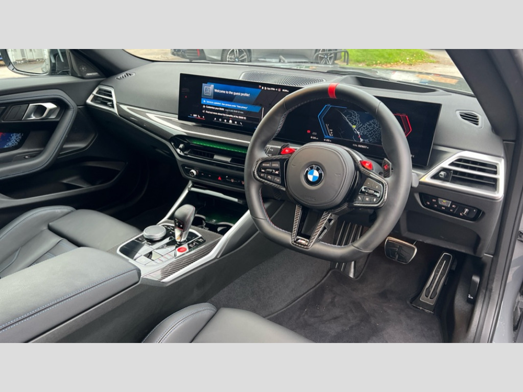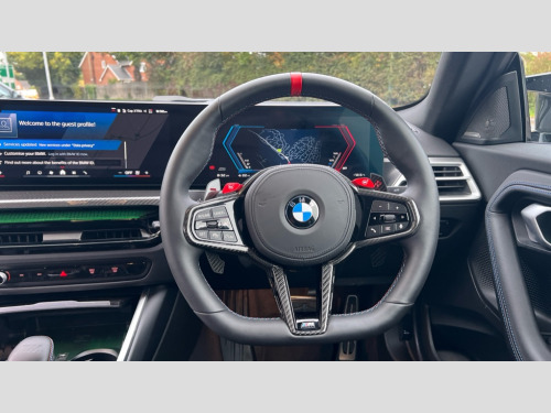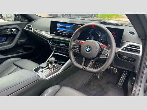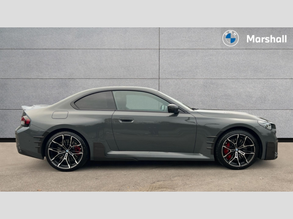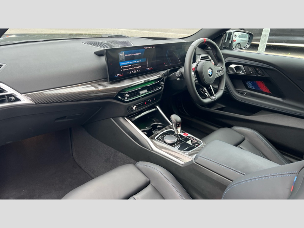 BMW M2 M2 480 2dr Step Auto Active Guard, BMW ConnectedDrive online services, BMW legal emergency call, BMW Live Cockpit Professional including Full colour Head up display with configurable HUD contents, BMW Teleservices, Check control system, Configurable dashboard display, Control Infotainment, Digital owner's manual, Drive off assistant, Driver attention warning, Engine start button, Exterior temperature display, Flat tyre monitor, Fully digital 12.3" multifunctional instrument display and a high-resolution 14.9" control display with Navigation function, Language version English, Oil sensor for level and grade, On board diagnostics, On board documentation English, PAS, Service interval indicator, Shifting point display, Start/stop system, Storage for wireless charging, Travel data recorder, Trip computer, Voice control for audio, climate, telephone, navigation, Widescreen display, M Adaptive suspension, M Drive Professional including track mode, laptimer, traction control & Drift analyser, M Sport differential, M steptronic sport transmission with drivelogic, DAB tuner, Harman/Kardon surround sound audio system with 464W power digital amplifier, 9 channels and 14 speakers, Personal eSim, Adaptive LED Headlights, Automatic headlamp activation, Automatic headlamp levelling, Door mirror integrated indicators, Dynamic brake lights, Electric adjustable heated door mirrors, Electrochromic interior rear view mirror, Exterior mirrors with memory function and automatic parking function, Fading support, Follow me home headlights, Front and rear bumper system, Front electric windows, Headlight beam throw control, Heat protection, sun protection glazing, High beam assistant, LED 3rd brake light, LED daytime running lights, LED indicator lights, LED number plate light, LED rear lights, M high gloss shadowline extended, M high gloss shadowline exterior trim in mirror triangle cover, mirror cover panel, mirror bezel and window border, M lights shadowline, Rain sensor, Rear boot, Sun protection glass, Trailer stabilisation logic, Variable front intermittent wipers, 12V power socket in front centre console with blanking plug, 2 cupholders, 2 rear head restraints, 2 rear seats, 3 spoke leather M multi-function steering wheel, Ambient lighting, Black velour front and rear floor mats, Compartment in front of cupholder, Driver and front passenger heated seats, Driver/passenger electric lumbar adjustment, Electrically adjustable front seats - driver seat with memory, English handbook, Folding rear seat head rests, Front and rear door exit lights, Front and rear footwell lights, Front centre armrest, Front door pockets with bottle holders, Front door sill strips with aluminium inlays and M2 labelling, Front interior light, Front reading lights, Glove compartment, Glovebox light, Heated steering wheel, Height adjustable front headrests, Illuminated armrest storage compartment, Isofix child seat for two outer rear seats, Luggage compartment lighting, M Accent Surfaces Illuminated: Highlighters in the door trim inlay panels and light module in the instrument cluster with M stripes, M Anthracite headlining, Manually adjustable steering column, Rear armrest, Single front passenger seat, Storage compartment in rear doors, Storage tray and compartment with cover in centre console, Through loading system with 40/20/40 split folding rear seat, Two zone automatic air conditioning, Vanity mirror lights, BMW Live cockpit plus pack - M2, Comfort access pack - M2, Connected package professional - M2, Driving Assistant package - M2, Interior and exterior mirror package - M2, Parking assistant package - M2, Storage compartment package - M2, 4 x 3 point seatbelts, ABS/EBD, Automatic Stability Control (ASC), Cornering brake control (CBC), Crash sensor, Curtain airbags, Dry braking, DSC - Dynamic Stability Control, Dynamic brake control, Electromechanical parking brake, Emergency door unlock, First aid kit, Front airbags for driver and front passenger, Front passenger airbag deactivation, Head airbags for all 4 outer seats, Height adjustable front seatbelts, M seat belts, PC iBrake (Post crash approach control warning with light braking function), Seatbelt pretensioners with load limiters, Seatbelt reminder, Side airbags for driver and front passenger, Tyre pressure monitoring system, Warning triangle, Alarm system, Drive away door locking, Immobiliser, Locking wheel bolts, Remote central locking, Tyre repair kit
