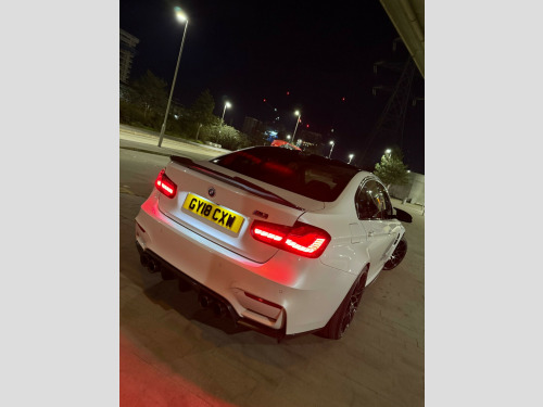 This 2018 BMW M3 BiTurbo Competition boasts a full dealership service history, ensuring its excellent provenance. This Euro 6 compliant 3.0L petrol model comes with a clear vehicle history check and will be supplied with a 12 month MOT for your peace of mind. Notable features include a comprehensive Carbon Exterior Package, Carbon Interior Package, and a Carbon Mirror Package, all complemented by an M Head Up Display and Apple CarPlay Preparation.Experience exhilarating performance with this M3, capable of accelerating from 0 to 62mph in just 4.0 seconds. This impressive acceleration figure highlights how this particular M3 Competition variant offers a superior driving experience compared to other models. The last service was completed at 42,800 miles, further underscoring the care and attention this vehicle has received. v power socket in front centre console and passenger footwell, 20in alloy wheels - m light star-spoke style 666m - forged, 8 programmable favourite buttons, active m differential, adaptive m suspension, air breather, air conditioning - automatic with two-zone control, airbags, alarm system - thatcham 1 with remote control and engine immobiliser, armrest - front with sliding adjustment, automatically dimming rear view mirror, bmw connecteddrive online services, bmw emergency call, bmw individual high-gloss shadowline with extended contents, bmw professional radio with single cd player - with mp3 playback compatibility, bmw teleservices, battery safety cut off, bottle holders integrated into door trim storage compartments - front - up to 1 litre, brake pad wear indicator - front and rear, bumper system - front and rear, carbon-fibre reinforced plastic - cfrp - roof, central locking switch - doors - fuel filler cap - luggage compartment, check control warning system for monitoring of lights and door-luggage compartment open warning, child proof locking system - rear doors, child seat isofix attachment - rear with passenger airbag deactivation, competition package, condition based service, crash sensor, cruise control with brake function, cup holders - front - two with removable oddments tray-lid, dab digital radio, dsc - dynamic stability control plus, direction indicator - side repeaters - integrated in exterior mirrors, direction indicator lights - clear lenses led, display - 8.8in colour screen, door sill finishers - m designation, dynamic brake lights, eps - electric power steering, electric windows - front and rear with open-close fingertip control - anti-trap facility and comfort closing function, enhanced bluetooth telephone preparation with wireless charging, extended lighting, exterior parts in body colour, exterior trim - high-gloss shadowline, first aid kit and warning triangle, floor mats - velour, folding side mirrors with auto-dimming, full black panel display, gearshift lever with m badge, glove box, grab handles - integrated in roof lining x4, handbrake lever and gear lever in leather, headlining - anthracite, heat protection glazing with green tint, high level third brake light, interior lighting - front centre over interior mirror with soft-light and rear centre, interior trim finisher - blue shadow with black high gloss finisher, kidney grille - chrome with double black vertical slats and m3 badging, led headlights, led tailights, lights-on warning by audio warning signal when ignition is switched off, lightweight m sports seats - with breakthrough elements in the seat back, loudspeaker system - bmw advanced, luggage compartment - lashing eyes, luggage compartment - light, lumbar support - driver and front passenger, m aerodynamics package, m designation, m drive manager, m instrument cluster, m mobility tyre sealing system, m rear lip spoiler, m servotronic, m sports exhaust tailpipes - quad - black chrome, m-specific rear seat with two integrated headrests and one removable centre headrest, media package - bmw professional, model designation, navigation system - bmw professional multimedia, non smokers package, obc - on-board computer, oil sensor for level and grade - warning by check control system, optimum shift indicator, pdc - park distance control - front and rear, personal profile, rain sensor with automatic headlight activation, real time traffic information, rear backrest - lightweight construction - foldable and 60:40 dividable, rear fog light, rear suspension - five-link, remote control including integrated key with inset in chrome - 2, remote services, seat adjustment - front electric with driver memory, seat belt security check for driver, seat belts - m stripes, seat heating for driver and front passenger, seats - backrest width adjustment - front, shark fin, side armrests - front and rear integrated into door trim, side impact protection, start-stop button with comfort go keyless engine start and auto start-stop deactivation button, steering column with manual reach and rake adjustment, steering wheel - m leather multi-function - three spoke with three colour m stitching, storage compartment in rear centre console, sun visors with illuminated vanity mirrors and ticket pocket, suspension - front aluminium, three-point seat belts - all seats, toolkit located in luggage compartment, twin horns, tyre puncture warning system - tpws, visible vin, welcome light, wifi hotspot preparation, windscreen washer jets - heated, windscreen wipers - two-speed with adjustable intervals, wireless charging cradle located in front centre armrest storage compartment, idrive touch controller with shortcut buttons, headlight wash, head-up display, interior trim finisher - carbon fibre with black chrome finisher, reversing assist camera, sun protection glazing, loudspeaker system - harman kardon, concierge service, speed limit display, 20in alloy wheels - m light star-spoke style 666 m - forged - black, full merino leather - black, carbon interior package, apple carplay preparation, carbon mirror package, resonater delete with mperformance exhaust tips, windscree