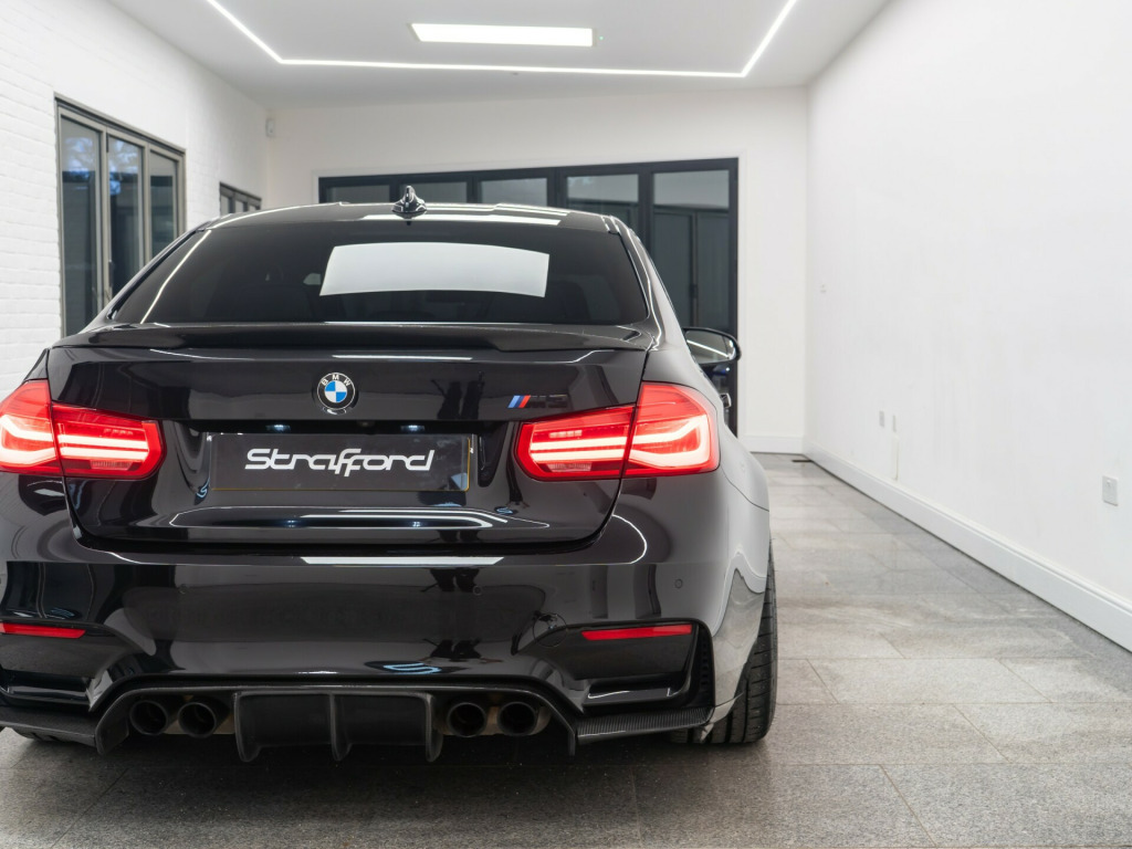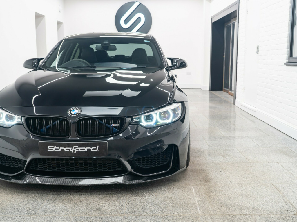 New into stock is this stunning 2018 BMW F80 M3 Competition registering just 35,005 miles from new.Finished in Sapphire Black Metallic with Black Merino Leather upholstery, this M3 presents in very good order throughout and benefits from a desirable specification, including the sought after M Competition Package and heads up display. Factory Options:P7MNA - M Competition PackageS248A - Heated steering wheelS610A - Head-Up DisplayS688A - Harman/Kardon surround sound systemS2CQA - 20'' BMW Style 666M forged alloy wheelsS2MKA - M Twin-Clutch Transmission with DrivelogicS2VBA - Tyre pressure displayS2VFA - Adaptive M chassisS3AGA - Reversing cameraS420A - Rear privacy glassS459A - Electric front seat adjustment with driver memoryS494A - Heated front seatsS4WLA - Carbon fibre interior trimsS502A - Headlight cleaning systemS508A - Park Distance ControlS5DPA - Park AssistS609A - Navigation System ProfessionalS6AKA - ConnectedDrive ServicesS6NWA - Telephony with wireless chargingS760A - High Gloss Shadow LineS7M9A - Extended leather door cardsPost factory, this cars infotainment system has been professionally updated adding full screen wireless apple carplay and screen mirroring.As part of our sales preparation, our in house service centre has completed a full service using genuine BMW parts, including replacement of spark plugs. Recent maintenance also includes four new Michelin Pilot Super Sport tyres, all showing more than 6.5mm tread, along with new front brake discs and pads.Service History:24.10.2025 - 35,005 miles - Independent Specialist17.12.2024 - 32,943 miles - Independent Specialist17.03.2023 - 21,177 miles - Independent Specialist25.05.2022 - 17,042 miles - BMW Service26.03.2021 - 12,526 miles - BMW Service15.05.2020 - 9,880 miles - BMW Service26.09.2018 - 1,255 miles - BMW ServiceIncluded:- Both original keys- V5 showing 4 former keepers- HPI Clear CertificateOptional:- Dealer Finance at 8.9% APR- Extended Warranty Options- Home delivery- Part exchange v power socket in front centre console and passenger footwell, aux-in connection, access to bmw connected plus (12 month subscription from new), bmw connecteddrive online services, bmw emergency call, bmw professional radio with single cd player - with mp3 playback compatibility, bmw teleservices, control display - 8.8in colour display screen, dab digital radio, enhanced bluetooth telephone preparation with wireless charging, full black panel display, loudspeaker system - bmw advanced, media package - bmw professional, real time traffic information, remote services, shark fin, wifi hotspot preparation, wireless charging cradle located in front centre armrest storage compartment, 20in alloy wheels - m light star-spoke style 666m - forged, air breather, bmw individual high-gloss shadowline with extended contents, bumper system - front and rear, carbon-fibre reinforced plastic - cfrp - roof, direction indicator - side repeaters - integrated in exterior mirrors, direction indicator lights - clear lenses led, electric windows - front and rear with open-close fingertip control - anti-trap facility and comfort closing function, exterior mirrors - electrically folding with anti dazzle, exterior parts in body colour, exterior trim - high-gloss shadowline, heat protection glazing with green tint, kidney grille - chrome with double black vertical slats and m3 badging, m aerodynamics package, m designation, m mobility system, m rear lip spoiler, m specific exterior mirrors - electrically adjustable and heated, m sports exhaust finished with black chrome tailpipe finishers, model designation, windscreen washer jets - heated, 8 programmable favourite buttons, air conditioning - automatic with two-zone control, armrest - front with sliding adjustment, automatically dimming rear view mirror, bottle holders integrated into door trim storage compartments - front - up to 1 litre, central locking switch - doors - fuel filler cap - luggage compartment, cup holders - front - two with removable oddments tray-lid, door sill finishers - m designation, extended lighting, floor mats - velour, gearshift lever with m badge, glove box, grab handles - integrated in roof lining x4, handbrake lever and gear lever in leather, headlining - anthracite, interior lighting - front centre over interior mirror with soft-light and rear centre, interior trim finisher - blue shadow with black high gloss finisher, lightweight m sports seats - with breakthrough elements in the seat back, luggage compartment - lashing eyes, luggage compartment - light, lumbar support - driver and front passenger, m drive manager, m instrument cluster, m-specific rear seat with two integrated headrests and one removable centre headrest, non smokers package, personal profile, rain sensor with automatic headlight activation, rear backrest - lightweight construction - foldable and 60:40 dividable, rear fog light, seat adjustment - front electric with driver memory, seat belts - m stripes, seat heating for driver and front passenger, seats - backrest width adjustment - front, side armrests - front and rear integrated into door trim, start-stop button with comfort go keyless engine start and auto start-stop deactivation button, steering column with manual reach and rake adjustment, steering wheel - m leather multi-function - three spoke with three colour m stitching, storage compartment in rear centre console, sun visors with illuminated vanity mirrors and ticket pocket, toolkit located in luggage compartment, twin horns, welcome light, windscreen wipers - two-speed with adjustable intervals, active m differential, adaptive m suspension, brake pad wear indicator - front and rear, competition package, condition based service, cruise control with brake function, eps - electric power steering, m servotronic, obc - on-board computer, oil sensor for level and grade - warning by check control system, optimum shift indicator, pdc - park distance control - front and rear, rear suspension - five-link, suspensio