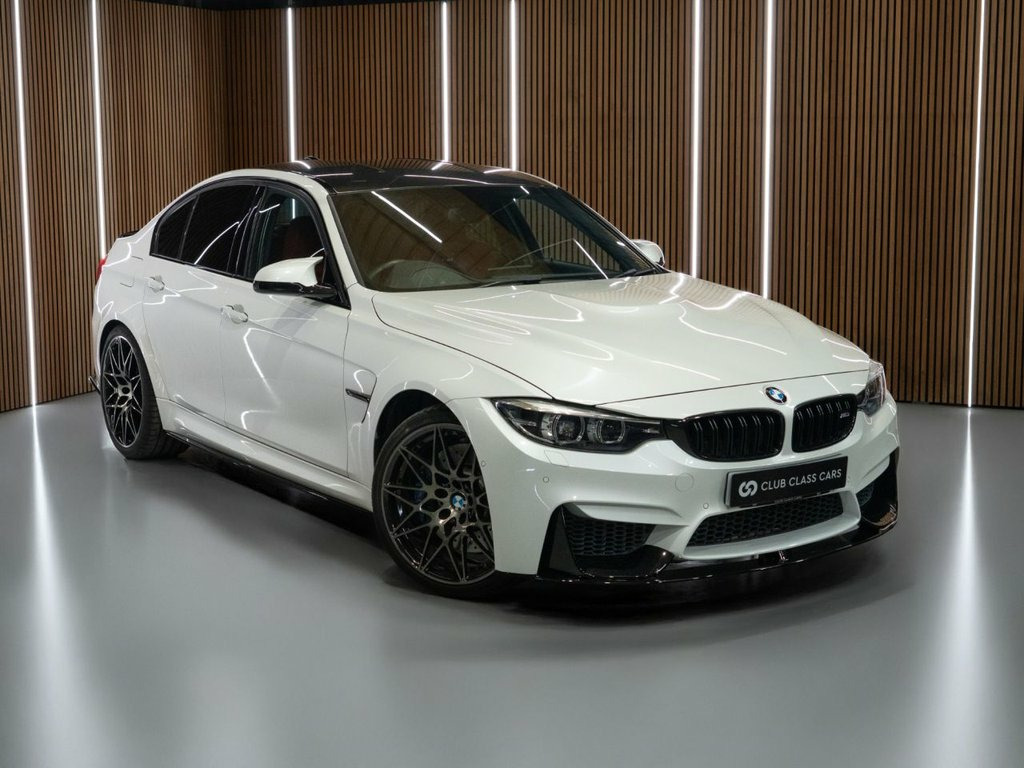 2017 BMW M3 Competition 3.0 BiTurbo 4dr Petrol DCT in Mineral White with 2 owners and just over 75,950 miles. Great spec including Full Merino Leather Interior in Sakhir Orange with Heated & Electric Memory Front Seats, 20in Alloy Wheels, Harman Kardon Sound System, Advanced Parking Package, Reversing Camera, DAB Digital Radio, BMW Professional Media Package (Widescreen Sat Nav), Front & Rear Parking Sensors, Electric Folding Mirrors, LED Headlights, Cruise Control etc. Full Service History with previous services completed as follows; - 11/10/2017 @ 1,215 miles (Running in Service at BMW) - 8/3/2019 @ 19,786 miles - 30/8/2020 @ 39,401 miles - 5/8/2022 @ 52,257 miles - 1/9/2023 @ 57,125 miles - 21/3/2025 @ 69,804 miles MOT until 7/9/2026. 12V Power Socket in Front Centre Console, 20in Alloy Wheels - M Light Star-Spoke S, 8 Programmable Favourite Buttons, Active M Differential, Adaptive M Suspension, Air Breather, Air Conditioning - Automatic with Two-Zo, Airbags, Alarm System - Thatcham 1 with Remote Co, Armrest - Front with Sliding Adjustment, Automatically Dimming Rear View Mirror, BMW ConnectedDrive Online Services, BMW Emergency Call, BMW Individual High-Gloss Shadowline wit, BMW Professional Radio with Single CD Pl, BMW TeleServices, Battery Safety Cut Off, Bottle Holders Integrated into Door Trim, Brake Pad Wear Indicator - Front and Rea, Bumper System - Front and Rear, Carbon-Fibre Reinforced Plastic - CFRP -, Central