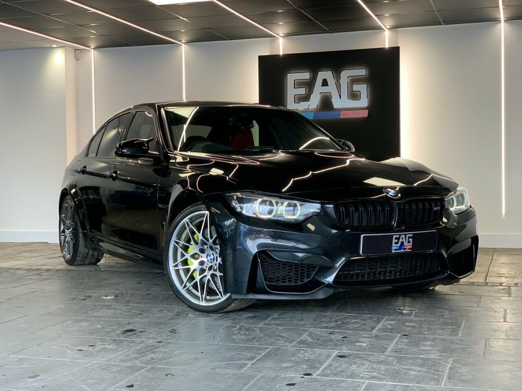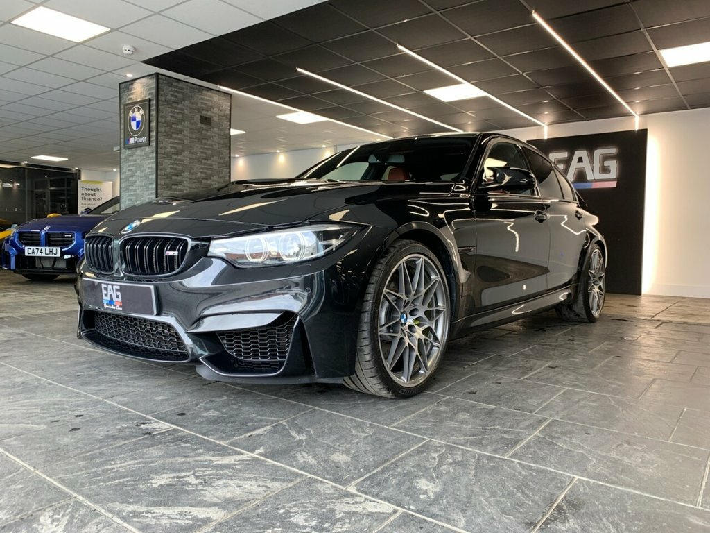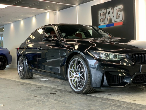 2018 (68) BMW M3 COMPETITION Finished in Black Sapphire with Sakhir Orange Leather and 666M alloys. Factory spec includes; reversing camera, adaptive M chassis, sun protection glazing, fully electric and heated front seats with driver memory, headlight cleaning system, rain sensor, park distance control, cruise control with brake function, navigational system professional, head-up display, Harman/Kardon surround sound system, telephony with wireless charging, DAB radio and Bluetooth connectivity. Full Service history. 4 owners. Finance available from 9.9% APR (subject to status) 12V Power Socket in Front Centre Console, 20in Alloy Wheels - M Light Star-Spoke S, 8 Programmable Favourite Buttons, AUX-In Connection, Access to BMW Connected Plus (12 Month S, Active M Differential, Adaptive M Suspension, Air Breather, Air Conditioning - Automatic with Two-Zo, Airbags, Alarm System - Thatcham 1 with Remote Co, Armrest - Front with Sliding Adjustment, Automatically Dimming Rear View Mirror, BMW ConnectedDrive Online Services, BMW Emergency Call, BMW Individual High-Gloss Shadowline wit, BMW Professional Radio with Single CD Pl, BMW TeleServices, Battery Safety Cut Off, Bottle Holders Integrated into Door Trim, Brake Pad Wear Indicator - Front and Rea, Bumper System - Front