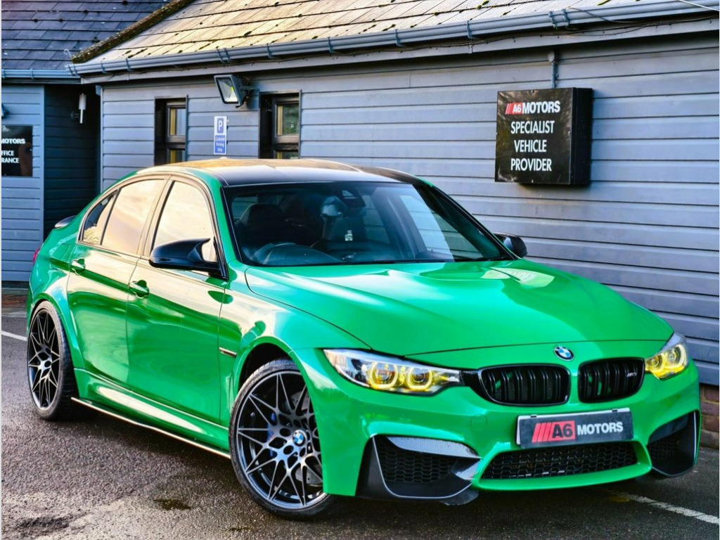 SAME DAY FINANCE AVAILABLE WITH £0 DEPOSIT. CALL OUR FINANCE TEAM FOR A QUOTATION TODAY. REQUEST A PERSONALISED VIDEO TODAY. STUNNING BMW M3 COMPETITION WRAPPED IN GREEN BOASTING A FULL SERVICE HISTORY & COMPLIMENTED BY A HUGE FACTORY SPEC. THIS LOVELY EXAMPLE IS SUPPLIED HPI CLEAR & WITH A NATIONWIDE WARRANTY. GOOD CONDITION THROUGH OUT. DRIVES WELL. 12V Power Socket in Front Centre Console, 20in Alloy Wheels - M Light Star-Spoke S, 8 Programmable Favourite Buttons, Active M Differential, Adaptive M Suspension, Air Breather, Air Conditioning - Automatic with Two-Zo, Airbags, Alarm System - Thatcham 1 with Remote Co, Armrest - Front with Sliding Adjustment, Automatically Dimming Rear View Mirror, BMW ConnectedDrive Online Services, BMW Emergency Call, BMW Individual High-Gloss Shadowline wit, BMW Professional Radio with Single CD Pl, BMW TeleServices, Battery Safety Cut Off, Bottle Holders Integrated into Door Trim, Brake Pad Wear Indicator - Front and Rea, Bumper System - Front and Rear, Carbon-Fibre Reinforced Plastic - CFRP -, Central