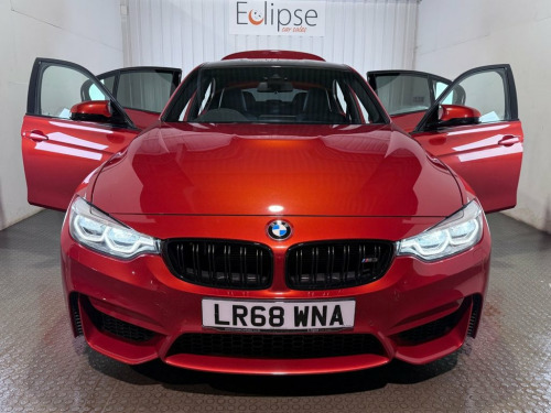 **THIS VEHICLE MAY BE AT OUR 150-CAR STORAGE FACILITY. PLEASE CALL AHEAD TO ARRANGE VIEWING AT OUR WINCHESTER SALES SITE** MOT August 2026. Serviced at 1k, 6k, 14k, 21k, 26k, 36k, 41k and 49k miles. This well looked after BMW M3 Competition finished in a stunning Sakhir orange with a black leather interior and 20 inch forged alloy wheels blends track ready performance and every day usability making it ideal for anyone looking for a fast, thrilling car to drive while still being useable for everyday life. Equipped with various features to make every drive even better such as a heads up display, reversing and side cameras with front and rear parking sensors, Harman Kardon premium sound system, cruise control with speed limiter, electric memory heated front seats, dual zone climate control and more. Powered by a 3 litre BiTurbo petrol engine and an automatic gearbox. 12V Power Socket in Front Centre Console, 20in Alloy Wheels - M Light Star-Spoke S, 8 Programmable Favourite Buttons, Active M Differential, Adaptive LED Headlights with High-Beam A, Adaptive M Suspension, Air Breather, Air Conditioning - Automatic with Two-Zo, Airbags, Alarm System - Thatcham 1 with Remote Co, Armrest - Front with Sliding Adjustment, Automatically Dimming Rear View Mirror, Battery Safety Cut Off, BMW ConnectedDrive Online Services, BMW Emergency Call, BMW Individual High-Gloss Shadowline wit, BMW Professional Radio with Single CD Pl, BMW TeleServices, Bottle Holders Integrated into Door Trim, Brake Pad Wear Indicator - Front and Rea, Bumper System - Front and Rear, Carbon-F