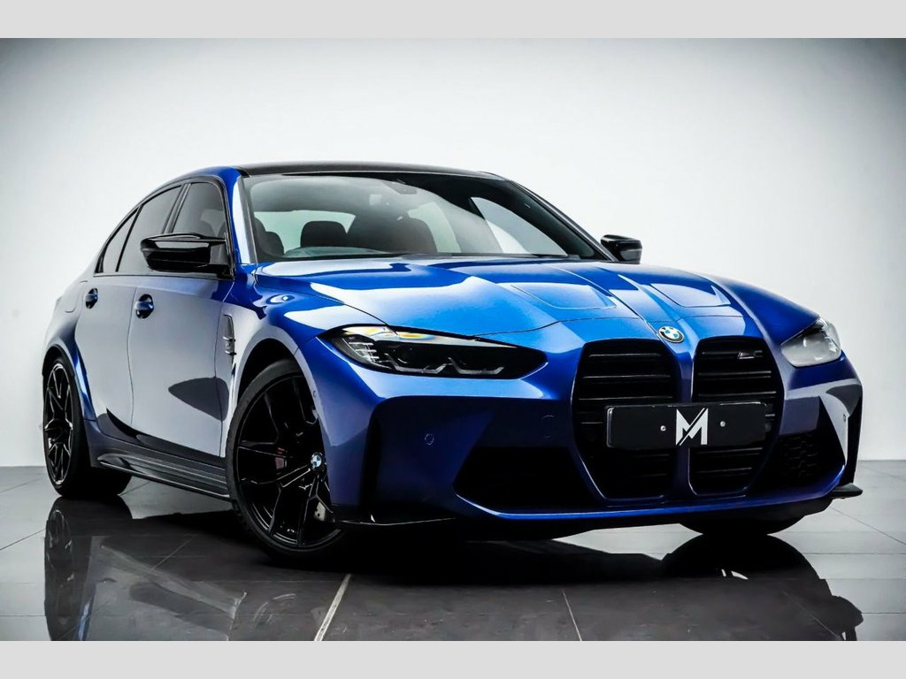 This BMW M3 Competition is finished in Portimao Blue and this vehicle comes with the following specification - Harman/Kardon surround sound system | Seat adjustment, electric, with memory | Storage compartment package | Interior trimstrips, Carbon Fibre | High-beam assistant | Driving Assistant | Head-up display. 12V Power Socket in Front Centre Console, 19in Front - 20in Rear Alloy Wheels - M , 19in Front - 20in Rear Alloy Wheels - M , 8 Programmable Favourite Buttons, ABS - Anti Lock Braking System, Acoustic Glazing, Adaptive M Suspension, Air Conditioning - Automatic with Three-, Airbags, Alarm, Ambient Lighting, AUX-In Connection, BMW ConnectedDrive Online Services, BMW Gesture Control, BMW Individual High-Gloss Shadowline wit, BMW Live Cockpit Professional, BMW Mobility Kit, BMW Shadow Lights, BMW TeleServices, Bottle Holders Integrated into Door Trim, Bumper System - Front and Rear, Carbon Fibre Reinforced Plastic Roof, Child Proof Locking System - Rear Doors, Child Seat ISOFIX Attachment, Comp