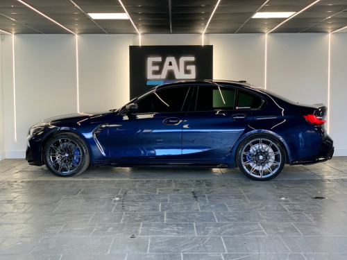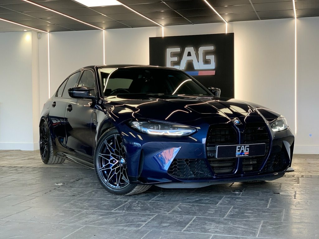 2022 (72) BMW M3 COMPETITION Finished in Tanzanite Blue with Black Merino Leather and 826M alloys. Factory spec includes; adaptive M chassis, reversing camera, acoustic comfort glazing, sun protection glazing, interior mirror with auto-dip, fully electric and heated front seats with driver memory, storage compartment package, M seat belts, interior carbon fibre trims, cruise control with brake function, high beam assistant, driving assistant, active guard, parking assistance system, Harman/Kardon surround sound system, wireless charging tray, apple carplay and android auto, DAB radio and Bluetooth connectivity. 2 owners. Full service history. PCP and HP finance available from 9.9% APR (subject to status) 19in Front - 20in Rear Alloy Wheels - M , Acoustic Glazing, Active Guard Plus, Air Conditioning - Automatic with Three-, Airbags, Alarm, Ambient Lighting, Armrests, Automatic Start-Stop Button, BMW ConnectedDrive Online Services, BMW Emblem on Engine Compartment Lid and, BMW Emergency Call, BMW Individual Lights - Shadowline, BMW Kidney - Frameless with Horizontal D, BMW Live Cockpit Professional, BMW TeleServices, Battery in Luggage Compartment, Bumper System, Centre Armrest in Rear - Folding with 2 , Centre Lock Switch, Closing System with Central Locking, Condition Based Service, Connected Package Professional, Crash Sensor, Cruise Control including Speed Limiting , Cupholder, DAB Digital