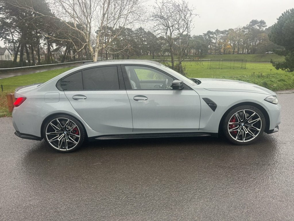 This 2021 BMW M3 BiTurbo Competition presents an exceptional opportunity with remarkably low mileage for its age, having covered just 23,000 miles. This Euro 6 compliant model boasts a powerful 3.0L petrol engine paired with a dynamic four wheel drive system, offering exhilarating performance. It comes equipped with striking 19 inch front and 20 inch rear M Double Spoke 825 forged alloy wheels in bicolour black, complete with mixed tyres. Enhancing your driving experience are features such as the Driving Assistant, which includes Blind Spot Assistance, and electric front seat adjustment with driver memory. For seamless connectivity, it features Connected Package Professional, supporting both Android Auto and Apple CarPlay, alongside convenient seat heating for the driver and front passenger. The M3 BiTurbo Competition stands out with its impressive acceleration, achieving 0-60mph in a mere 3.5 seconds, a testament to its performance capabilities. This vehicle also benefits from a low insurance group, making it a more accessible choice for performance car enthusiasts. These highlights collectively demonstrate how this particular BMW M3 offers a superior package compared to other similar vehicles on the market, combining speed, advanced technology, and practical considerations. 12V Power Socket in Front Centre Console, 19in Front - 20in Rear Alloy Wheels - M , 19in Front - 20in Rear Alloy Wheels - M , 8 Programmable Favourite Buttons, ABS - Anti Lock Braking System, Acoustic Glazing, Adaptive M Suspension, Air Conditioning - Automatic with Three-, Airbags, Alarm, Ambient Lighting, Automatic Windscreen Wiper and Headlight, AUX-In Connection, BMW ConnectedDrive Online Services, BMW Emergency Call, BMW Gesture Control, BMW Individual High-Gloss Shadowline wit, BMW Individual Lights - Shadowline, BMW Live Cockpit Professional, BMW Mobility Kit, BMW TeleServices, Bottle Holders Integrated into Door Trim, Brooklyn Grey, Bumper System - Front and Rear, Carbon Fibre Reinfo