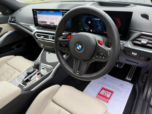2024 24 BMW M3 COMPETITION 3.0 BITURBO AUTO, SPEC INCLUDES:, * SKYSCRAPER GREY METALLIC, * CARBON FIBRE ROOF, * FACELIFTED BMW I-DRIVE 8 NEW DASH, * HEADS UP DISPLAY (H.U.D) , * REVERSE CAMERA, * LEATHER THREE SPOKE MULTI FUNCTION CARBON STEERING WHEEL WITH CARBON PADDLESHIFTS, * 8 SPEED AUTOMATIC GEARBOX WITH SPORT MODE, * COMFORT, ECO, SPORT AND SPORT PLUS DRIVING MODES, * START / STOP TECHNOLOGY, * M FRONT, SIDE AND REAR STYLING, * M3 COMPETITION ENTRY SILLS, * 20 REAR AND 19 FRONT COMPETITION STAR SPOKE FORGED ALLOY WHEELS WITH A POLISHED FINISH, * EXCELLENT TYRES ALL ROUND, * FULL IVORY WHITE INDIVIDUAL LEATHER COMPETITION SPORTS INTERIOR WITH LIGHT UP M3 LOGO , * UPGRADED HARMAN / KARDON SOUNDS SYSTEM, * ELECTRIC ADJUSTABLE SEATS, * ELECTRIC TWO STAGE MEMORY SEATS, * THREE STAGE HEATED SEATS, * AUTOMATIC LIGHTS, * AUTOMATIC WIPERS, * CARBON FIBRE INTERIOR AND DASH TRIM, * CRUISE CONTROL, * FULL COLOUR PROFESSIONAL WIDESCREEN SATELLITE NAVIGATION SYSTEM, * BMW I-DRIVE SYSTEM, * DAB DIGITAL RADIO, * MUSIC HARD DRIVE, * VOICE COMMAND, * BLUETOOTH FACTORY PHONE CONNECTION AND INTERFACE, * FRONT AND REAR PARKING SENSORS WITH ON SCREEN ASSIST, * AIR CONDITIONING, * DUAL DIGITAL CLIMATE CONTROL, * REAR CLIMATE CONTROL, * LANE ASSIST, * DTC TRACTION CONTROL, * ELECTRIC FOLDING MIRRORS  , * KEYLESS GO, * FOGLIGHTS, * IPOD/AUX/USB CONNECTION, * LEATHER CENTRE ARMREST, * TYRE PRESSURE MONITORS, * TWIN CUP HOLDERS, * REAR HEATED SCREEN, * CARPET MATS, * PRIVACY GLASS, * TWO KEYS, * BMW MAIN DEALER WARRANTY UNTIL 04/2027, STUNNING LOOKING CAR, EXCELLENT PERFORMANCE WITH HIGH SPEC, EXCELLENT CONDITION INSIDE AND OUT, HAS BEEN CHERISHED SINCE NEW, HPI CLEAR WITH GOLD REPORT, 5 DAYS FREE DRIVEAWAY INSURANCE... £65,995, PART EXCHANGE WELCOME, FINANCE AVAILABLE, 07425 507632