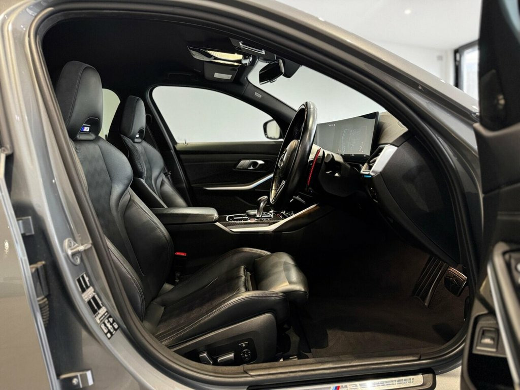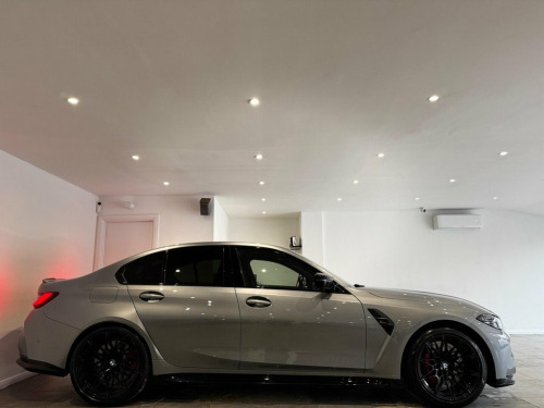 This 2023 BMW M3 BiTurbo Competition is presented with a clear vehicle history check, offering peace of mind for its next owner. This striking M3, featuring a powerful 3.0 litre petrol engine and a four wheel drive drivetrain, is a Euro 6 compliant model. Inside, you will find a wealth of comfort and convenience features, including a heated steering wheel and heated front seats, perfect for those colder mornings. The automatic air conditioning with three zone climate control ensures everyone enjoys their ideal temperature, while the Harman Kardon Surround Audio Sound System provides an exceptional listening experience. For added comfort and convenience, the vehicle is equipped with electric memory seats. The M3 Competition stands out with its impressive acceleration, achieving 0-62mph in just 3.5 seconds, a testament to its performance capabilities. This remarkable speed indicates how this vehicle offers a more exhilarating driving experience compared to many others in its class. Furthermore, its position within a low insurance group makes it an even more attractive proposition for discerning drivers seeking both performance and practicality. 19in Front - 20in Rear Alloy Wheels - M , Acoustic Glazing, Active Guard Plus, Air Conditioning - Automatic with Three-, Airbags, Alarm, Ambient Lighting, Armrests, Automatic Start-Stop Button, BMW ConnectedDrive Online Services, BMW Emblem on Engine Compartment Lid and, BMW Emergency Call, BMW Individual Lights - Shadowline, BMW Kidney - Frameless with Horizontal D, BMW Live Cockpit Professional, BMW TeleServices, Battery in Luggage Compartment, Bumper System, Centre Lock Switch, Closing System with Central Locking, Condition Based Service, Connected Package Professional, Crash Sensor, Cruise Control including Speed Limiting , Cupholder, DAB Digital Radio, DSC - Dynamic Stability Control Pl