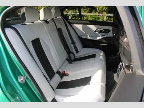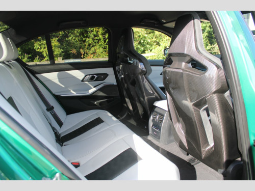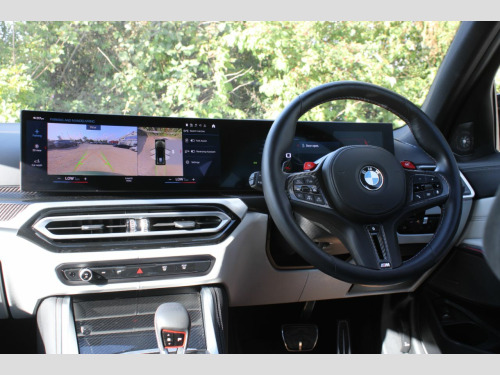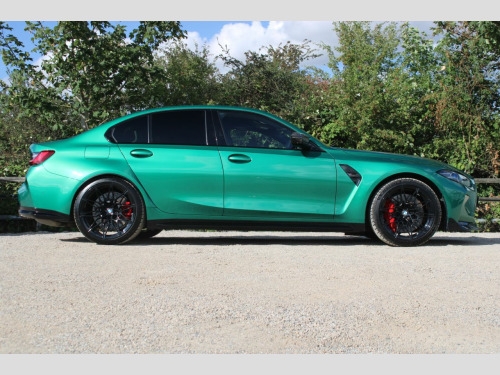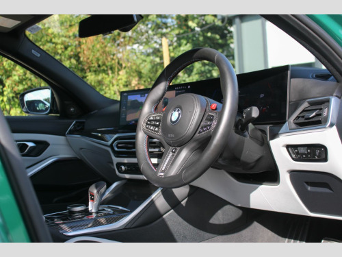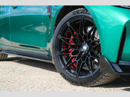 Finished in Isle of Man Green metallic with full Silverstone and black Merino leather interior. Features include the Ultimate package, M carbon package to include M carbon bucket seats and carbon exterior package, technology plus package, comfort package to include steering wheel heating, Akrapovic exhaust tips, head-up display, BMW live cockpit professional with widescreen display, 19/20” 826M alloy wheels with jet black finish, Harman Kardon surround sound system, parking assistant plus to include 3D surround view cameras, heated electric front seats with driver memory, digital dual zone climate control with automatic air conditioning, Apple CarPlay and Android Auto, satellite navigation, bluetooth connectivity with media streaming, DAB digital radio, visibility package to include BMW Laserlights, driving assistant professional, M adaptive suspension with M sport differential, BMW drive recorder, BMW Connected services, electric folding exterior mirrors, rear privacy glass, comfort access, carbon fibre interior trim, wireless phone charging, interior ambient lighting, front splitter in gloss black, ghost immobiliser, voice control, electric tailgate, multifunctional leather and carbon steering wheel with paddleshift, automatic Steptronic transmission plus much more standard specification. This highly specified M3 Competition xDrive is offered in excellent condition having covered only 7000 miles from new by its 1 owner. The car comes complete with the reassurance of a remaining manufacturers warranty until March 2027.