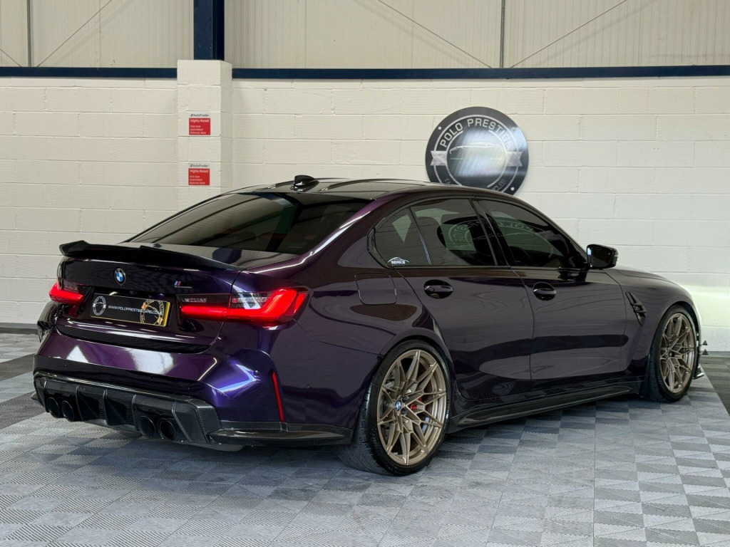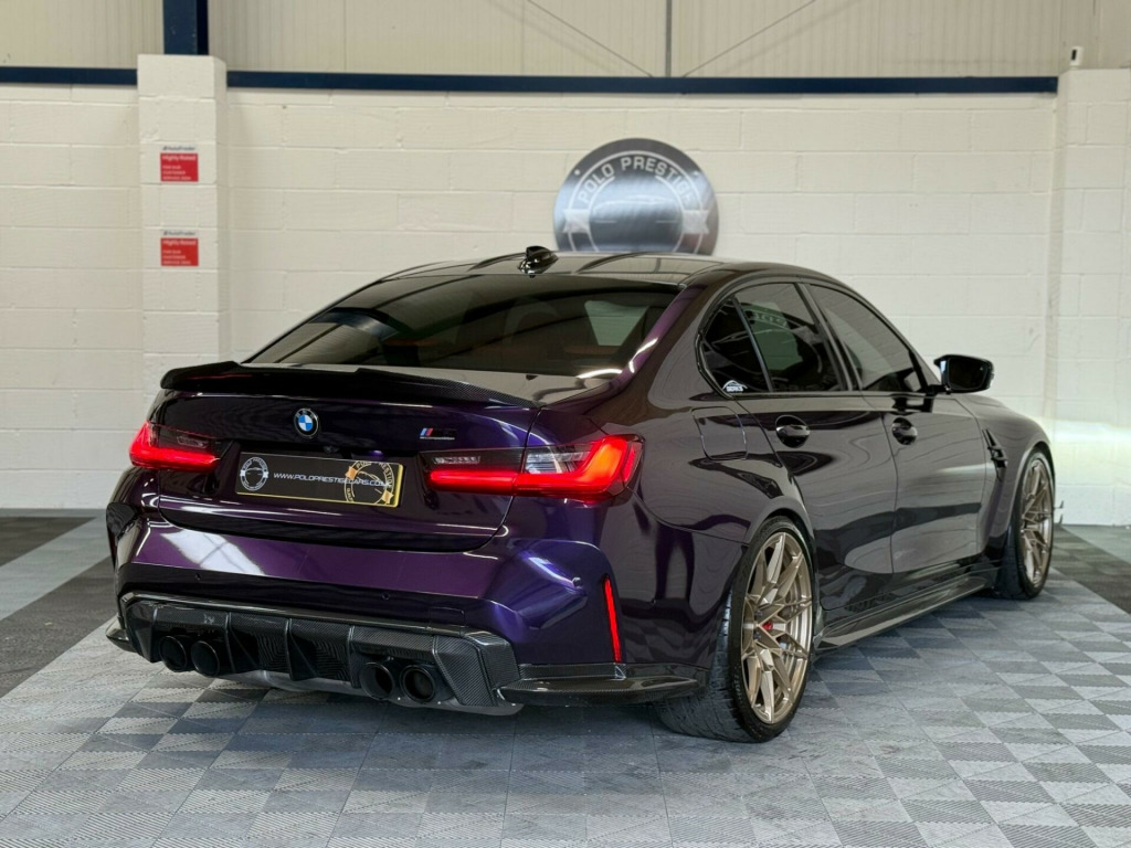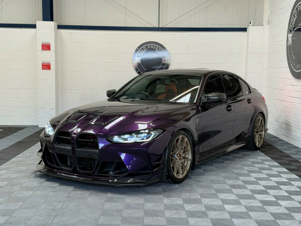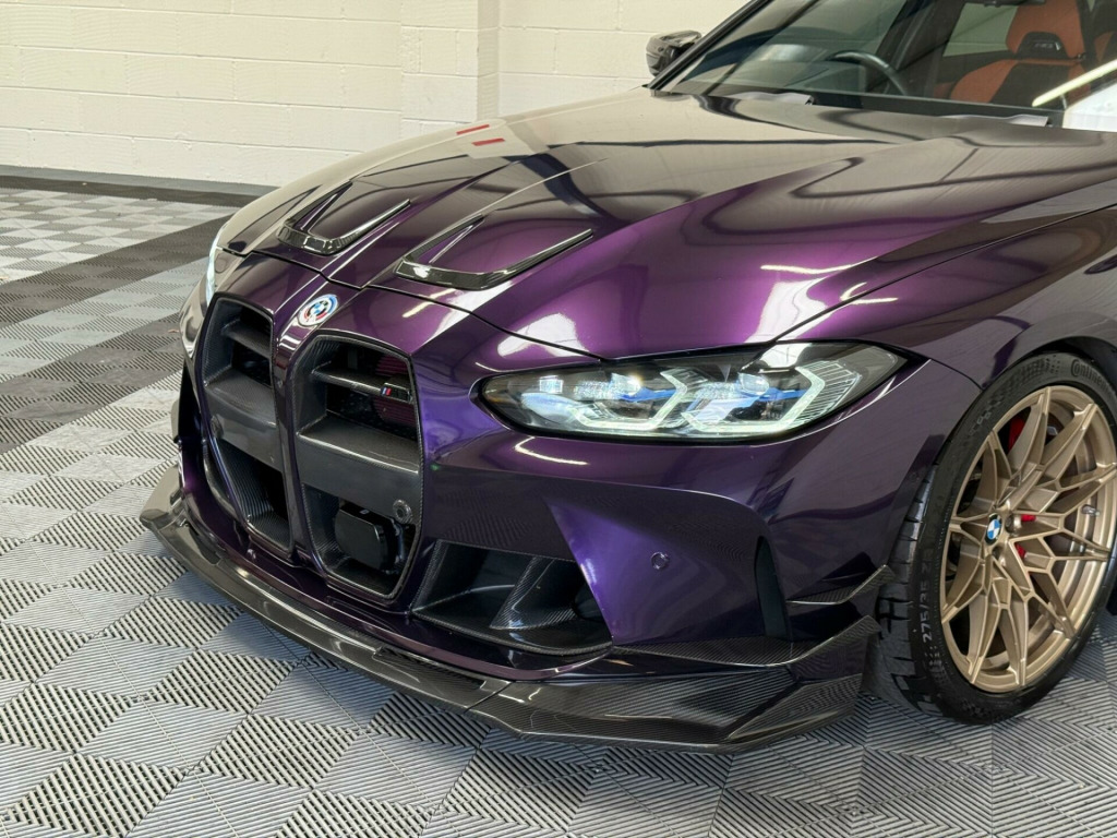 A truly exceptional example this BMW M3 has been meticulously built and tuned to an extraordinary standard, producing up to 900bhp and achieving an incredible 9.6-second quarter mile.Professionally built by Serks Motorworks and tuned by Darkhorse Kiev on MHD+, this car represents the very best of what a modern M car can be when executed correctly. Every element has been refined for performance, response and reliability.Wrapped in Merlin Purple with Frozen White BMW individual paint underneath.Performance & Powertrain•ECU unlocked•Map 1 - 99RON: 750bhp•Map 2 - E45: 850bhp•Map 3 - E55: 900bhp•Decat downpipes & single mid pipe for maximum flow and sound•Spool ethanol sensor•Front air intakes & hard pipe kitTransmission & Chassis•Rod Sutphin custom transmission tune on XHP•Wheel alignment set to drag specifications•Adjustable traction arms•Adjustable toe armsExterior & StylingFinished with an extensive carbon fibre package including:•Carbon canards•Carbon side skirts•Full carbon diffuser•Carbon bonnet styling•Carbon front splitter•Full carbon front-end insertsThis is the fastest Stage 2 M3 in the UK, built with no expense spared and maintained to the highest standard. A truly special car for the serious enthusiast or collector looking for something rare, extreme and perfectly executed chnology plus pack, visibility pack, comfort pack, parking assistant plus, steering wheel - heated, 19in front - 20in rear alloy wheels - m double spoke - 826 - forged - bicolour black with mixed tyres, drive recorder, full merino bicolour leather - black-kyalami orange, 12v power socket in front centre console and blanking plug, 19in front - 20in rear alloy wheels - m double spoke - 826 - forged - jet black with mixed tyres, 8 programmable favourite buttons, abs - anti lock braking system, aux-in connection, acoustic glazing, adaptive m suspension, air conditioning - automatic with three-zone, airbags, alarm, ambient lighting, automatic windscreen wiper and headlights, bmw connecteddrive online services, bmw emergency call, bmw gesture control, bmw individual high-gloss shadowline with extended contents, bmw individual lights - shadowline, bmw live cockpit professional, bmw mobility kit, bmw teleservices, bottle holders integrated into door trim storage compartments - front - up to 1 litre, bumper system - front and rear, carbon fibre reinforced plastic roof, child proof locking system - rear doors, child seat isofix attachment, compartment in front of cupholder, condition based service, connected package professional, control display - 10.25in colour display screen, crash sensor, cruise control with brake function, cup holders in front - two with clamping elements, dab digital radio, dsc - dynamic stability control - stabilises the vehicle in extreme situations - controls traction, diffuser in black high gloss, door sill finishers with aluminium inserts and model inscriptions, driving assistant, dynamic brake lights, eps - electric power steering, electric windows - front and rear, electro mechanical parking brake, electronic engine immobiliser, extended storage, exterior mirrors - electrically folding with anti dazzle, exterior parts in body colour, exterior trim - high-gloss shadowline, galvanic controls, gearshift lever with embossed m badge, glove box, headlining - anthracite, high-beam assistant, instrument cluster with extended contents, interior lighting, interior rear-view mirror with automatic anti-dazzle function, interior trim - black high gloss, interior trim - carbon fibre, kidney grille with frameless high gloss and model badging, led headlights, led taillights with new 3d l-shaped led light design, language version english handbook, loudspeaker system - harman kardon, lumbar support - driver and front passenger, m compound brake - red high gloss, m designation, m drive professional, m head-up display, m multifunctional leather steering wheel - three spoke with steering column adjustments, m rear lip spoiler in high gloss black, m seat belts, m servotronic, m sport differential, m sport seats, model badge in black, oil sensor for level and grade - warning by check control system, optimum shift indicator, parking assistant, rear fog light, rear seat headrest - folding, reflector, run-flat indicator, seat adjustment - front electric with driver memory, seat heating for driver and front passenger, side impact protection, speed limiter, split folding rear seat - 40-20-40, start-stop button with auto start-stop deactivation button, steering column with manual reach and rake adjustment, storage compartment in the rear side trim, storage tray and compartment with lid in centre console, sun protection glazing, sun visors with illuminated vanity mirrors and insert tab for driver and passenger, tpms - tyre pressure monitoring system, tailpipe finishers in black chrome, three-point seat belts - all seats, tool kit located in luggage compartment, two tone horn, vehicle key with 4 buttons including the integrated key, visible vin, welcome light, windscreen wipers - with integrated washing jets, idrive controller