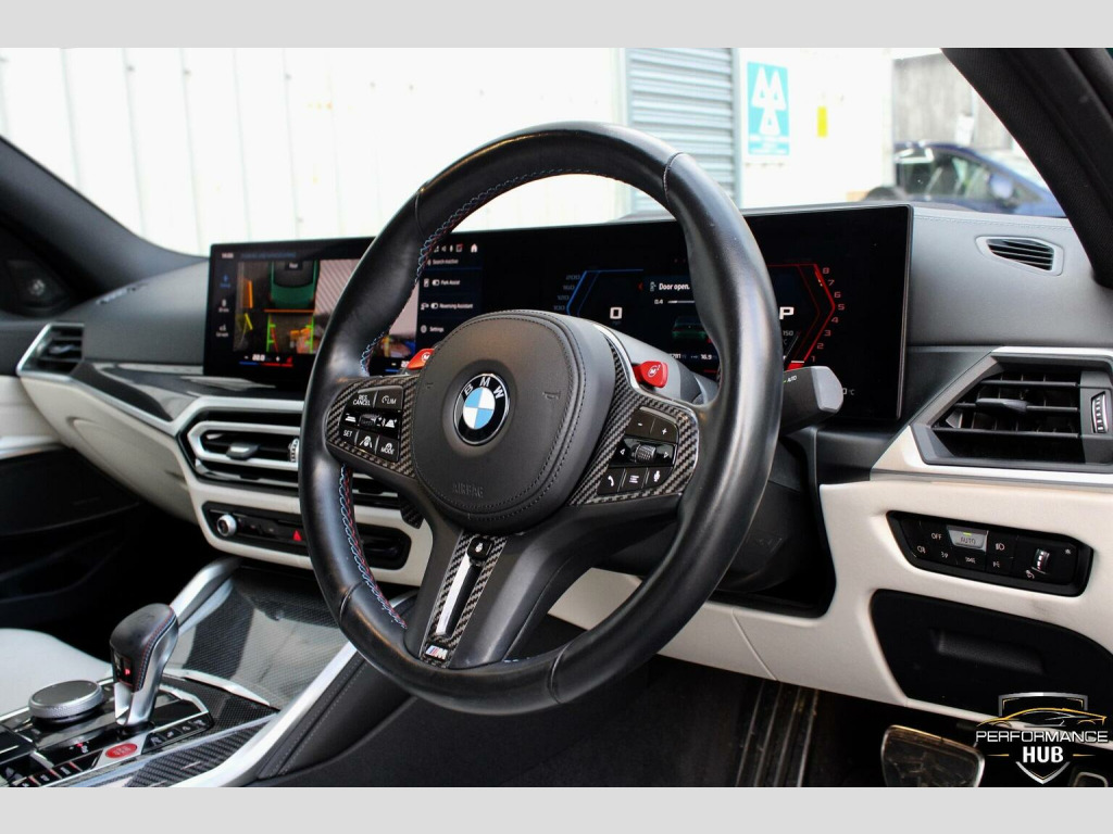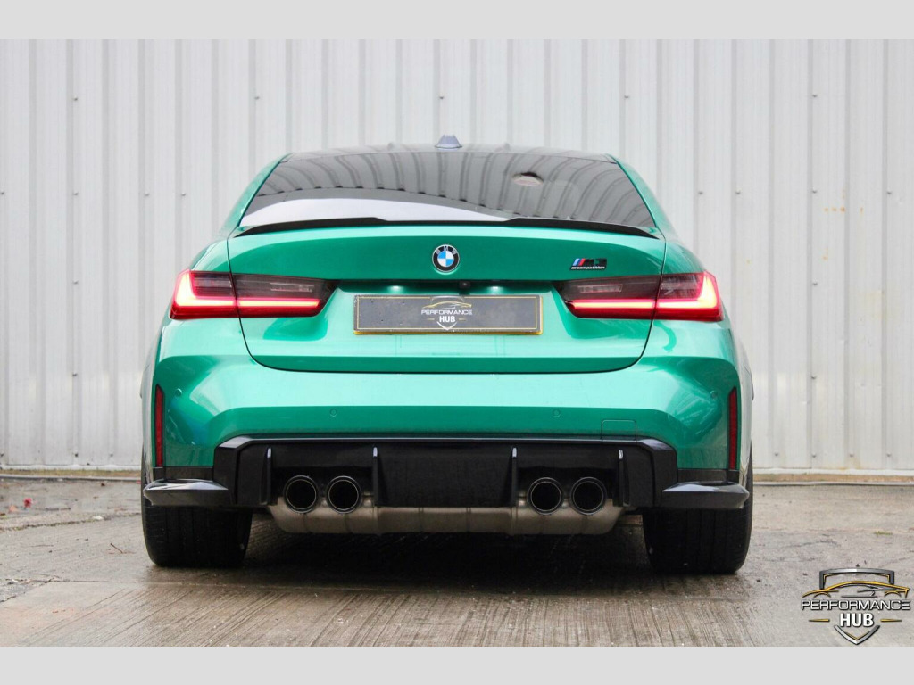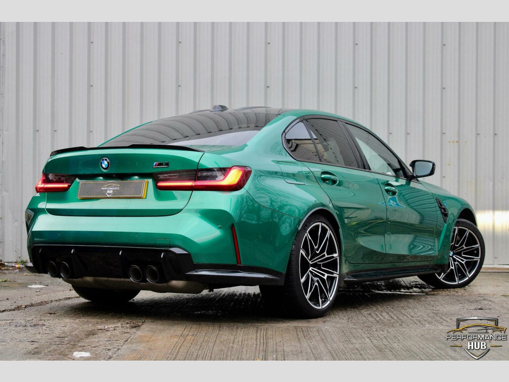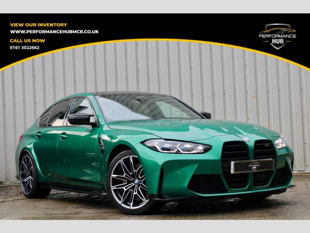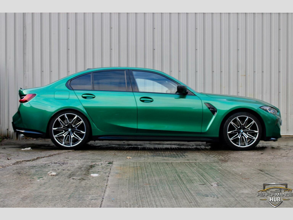 We are proud to offer this stunning G80 BMW M3 Competition xDrive for sale finished in the beautiful Metallic Isle of Man Green with contrasting Ivory leather interior, one owner from new. This vehicle comes with an array of extras including, M Head up display, visability package, laser lights, Harmon Kardon surround sound system, 360 assist camera, comfort access, comfort package, heated steering wheel, carbon inlays, carbon roof, adaptive M chassis, parking assistance system, driving assistant professional, cruise control with brake function, virtual cockpit, telephone wireless charging, DAB tuner, High beam assist, satellite navigation, plus much more