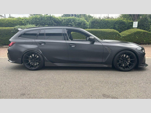 This incredible 1 of a kind 2023 BMW M3 BiTurbo Competition is presented in excellent condition with a clear vehicle history check. It features a powerful 3.0L petrol engine and a sophisticated four wheel drive drivetrain, meeting Euro 6 emission standards. The striking M Double Spoke 825 forged alloy wheels, finished in Orbit Grey Matt, measure 19 inches at the front and 20 inches at the rear and are fitted with mixed tyres. Inside, you'll find the BMW Live Cockpit Professional, complete with a Head Up Display, and the Connected Package Professional which seamlessly integrates Android Auto and Apple CarPlay. Convenience is further enhanced by a wireless charging tray for your phone and a comprehensive Parking Assistant system, including front and rear cameras and sensors. This m3 has has had ?1000?s spent on its been tuned The BMW M3 Competition Touring from Tom Wrigley has just been further enhanced with a full set of brand-new Michelin pilot sport tyres and over ?2,000 invested in a complete bill of health for your piece of mind, this car has been signed off directly by Tom Wrigley themselves. This ensures the car is in peak condition and ready to be enjoyed with total confidence. It has a brand new CT carbon kit and not to forget the vossen wheels at over ?6k alone! Experience exhilarating performance with this M3, capable of accelerating from 0 to 62mph in a remarkable 3.6 seconds. This impressive acceleration highlights how this vehicle offers a superior drivin 19in Front - 20in Rear Alloy Wheels - M , Acoustic Glazing, Active Guard Plus, Air Conditioning - Automatic with Three-, Airbags, Alarm, Ambient Lighting, Armrests, Automatic Start-Stop Button, BMW ConnectedDrive Online Services, BMW Emblem on Engine Compartment Lid and, BMW Emergency Call, BMW Individual Lights - Shadowline, BMW Kidney - Frameless with Horizontal D, BMW Live Cockpit Professional, BMW TeleServices, Battery in Luggage Compartment, Bumper System, Centre Lock Switch, Closing System with Central Locking, Condition Based Service, Connected Package Professional, Crash Sensor, Cruise Control including Speed Limiting , Cupholder, DAB Digital Radio, DSC - Dynamic Stability Control Pl