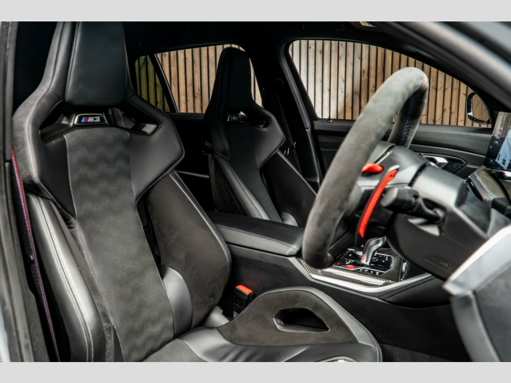 This 2023 BMW M3 BiTurbo Competition represents a pinnacle of performance and luxury, boasting a powerful 3.0L petrol engine and a sophisticated four wheel drive system. As a Euro 6 compliant vehicle, it combines exhilarating driving dynamics with modern efficiency. This particular model comes equipped with the comprehensive Ultimate Package, featuring advanced Laser headlights for superior visibility, convenient Keyless Entry, and a 360 degree camera for effortless parking assistance. Inside, you'll find the comfort of Memory seats, complemented by the sporty M Carbon Bucket Seats, also with memory function, and the M Carbon Exterior Package for a striking visual presence. The striking 19 inch front and 20 inch rear M Double Spoke 826 alloy wheels, finished in bicolour black and fitted with TRACK tyres, complete the aggressive stance.The M Drivers Package further enhances the driving experience, pushing the boundaries of what this exceptional machine can achieve. The M3 BiTurbo Competition is engineered for speed, accelerating from 0 to 62mph in a remarkable 3.6 seconds. This rapid acceleration demonstrates a clear advantage over many other vehicles in its class, offering a truly exhilarating performance. The combination of its advanced drivetrain, potent engine, and carefully curated optional packages ensures that this BMW M3 delivers an unparalleled driving experience, blending cutting edge technology with pure driving pleasure.. 19in Front - 20in Rear Alloy Wheels - M Double Spoke - 826 - Forged - Jet Black with Mixed Tyres, Acoustic Glazing, Active Guard Plus, Air Conditioning - Automatic with Three-Zone, Airbags, Alarm, Ambient Lighting, Armrests, Automatic Start-Stop Button, BMW ConnectedDrive Online Services, BMW Emblem on Engine Compartment Lid and Tailgate, BMW Emergency Call, BMW Individual Lights - Shadowline, BMW Kidney - Frameless with Horizontal Double Grille Slates - Black High-Gloss with Model Badge, BMW Live Cockpit Professional, BMW TeleServices, Battery in Luggage Compartment, Bumper System, Centre Armrest in Rear - Folding with 2 Cup Holders, Centre Lock Switch, Closing System with Central Locking, Condition Based Service, Connected Package Professional, Crash Sensor, Cruise Control including Speed Limiting Function - LIM Button, Cupholder, DAB Digital Radio, DSC - Dynamic Stability Control Plus, Door Sill Finishers with Aluminium Inserts and Model Inscriptions, Door Sill Strips - M Sport Entry Sills, Double-Jointed Spring-Strut Front Axle, Driving Assistant, Driving Experience Switch, Electric Bootlid, Electric Memory Seats, Electric Vehicle Immobiliser, Electric Window, Electro Mechanical Parking Brake, Electronic Differential Lock, Enhanced Bluetooth and Wireless Charging, Extended Storage, Exterior Mirror Caps and Rear Spoiler in High-Gloss Black, Exterior Trim - Extended High Gloss Shadowline, Exterior Trim - High-Gloss Shadowline, Floor Mats - Velour, Folding Wing Mirrors with Auto-Dimming, Follow-Me-Home Function, Front Lumbar Support, Front and Rear Apron Plastic in Body Colour, Galvanic Controls, Glove Compartment - Illuminated, Harman Kardon Surround Audio Sound System, Head-Up Display, Headlight Beam-Throw Control, Headlining - Anthracite, Heat Protection - Sun Protection Glazing, Heated Seats - Front, High-Beam Assistant, Illuminated Bow-Type Door Handles - in Body Colour - Drivers Side with Door Lock, Interior Trim - Black High Gloss, Interior Trim - Carbon Fibre, LED Rear Lights, Language Version English, Lower Edges of Bumpers - Side Sills - Edge Binding of Diffuser and Diffuser in Black High-Gloss, Luggage Compartment Lights, M Adaptive Suspension, M Compound Brakes with Red High Gloss, M Drive, M Drive Professional, M Roof Rails High-Gloss Black, M Seat Belts, M Sport Differential, M Sport Seats, M Steering Wheel, Model Badges in Black, Model Logo - Rear Right M3 Competition Inscription, Multifunction for Steering Wheel, Oil Sensor For Level and Grade, Parking Assistant, Personal eSim, Power Socket - 12V, Power Sockets, Rear Backrest - Foldable and Dividable by 40-20-40, Rear Folding Headrests, Rear-View Mirror with Auto-Dimming, Reversing Light, Roof Aerial Bulge and Roof Mouldings in Black High-gloss, Roof and Mirror Caps in High-Gloss Black, Runflat Indicator, Safety Battery Terminal Clamp, Shifting Point Display, Side Impact Protection, Smartphone Integration, Steering Column Adjustment, Strakes in Front Side Panel - Black Matt-Black High-Gloss with Model Badge, Sun Protection Glazing, Sun Visors with Ticket Holder and Illuminated Vanity Mirror, Tailpipe Finishers in Black Chrome, Third Brake Light, Through-Loading System, Tool Kit Located in Luggage Compartment, Tyre Pressure Sensors, Tyre Repair Kit, Variable Sport Steering, Warning Triangle, Washer Jets - Heated, Welcome Light, WiFi Hotspot, Wireless Charging Tray, Ultimate Package, M Carbon Exterior Package, M Carbon Bucket Seats, M Drivers Package, 19in Front - 20in Rear Alloy Wheels - M Double Spoke - 826 - Forged - Bicolour Black with TRACK Tyres, Parking Assistant Plus, Steering Wheel - Heated, Drive Recorder, Full Merino Leather - Black.