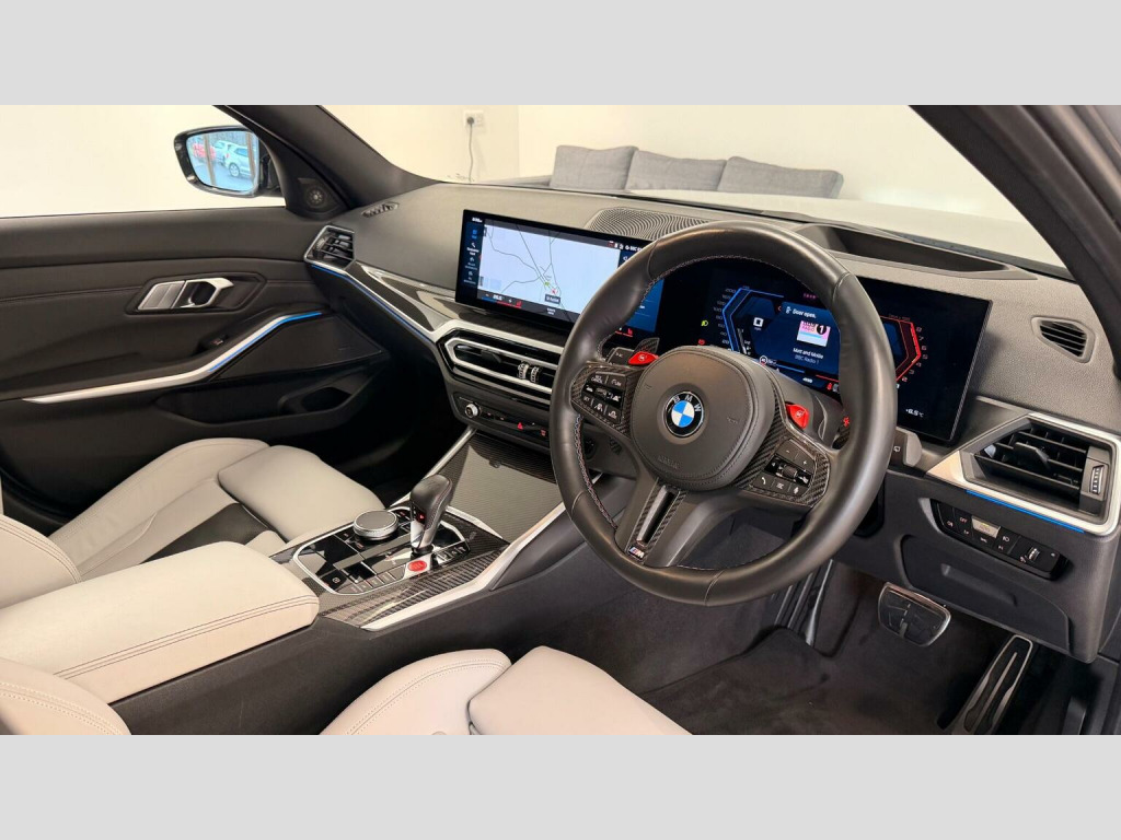 This 2024 BMW M3 BiTurbo Competition is a superb example, having had only one owner since new. It features a powerful 3.0 litre petrol engine paired with a four wheel drive drivetrain, meeting the Euro 6 emission class. This Competition trim model comes equipped with the desirable Technology Plus Pack, which includes adaptive cruise control and a comprehensive 360 degree parking assistance system with front and rear cameras and sensors. Further enhancing its appeal are the M Carbon Exterior Package and the premium Harman Kardon Surround Audio Sound System. Comfort is assured with automatic three zone air conditioning, including independent rear climate control. The performance of this M3 is truly exceptional, accelerating from 0 to 62 miles per hour in a remarkable 3.6 seconds. This rapid acceleration demonstrates its superior engineering and capability compared to many other vehicles in its class. The inclusion of Parking Assistant Plus further elevates its practicality, offering advanced assistance for effortless manoeuvring in any situation. This BMW M3 BiTurbo Competition represents a compelling blend of exhilarating performance, advanced technology, and meticulous care from its sole owner.