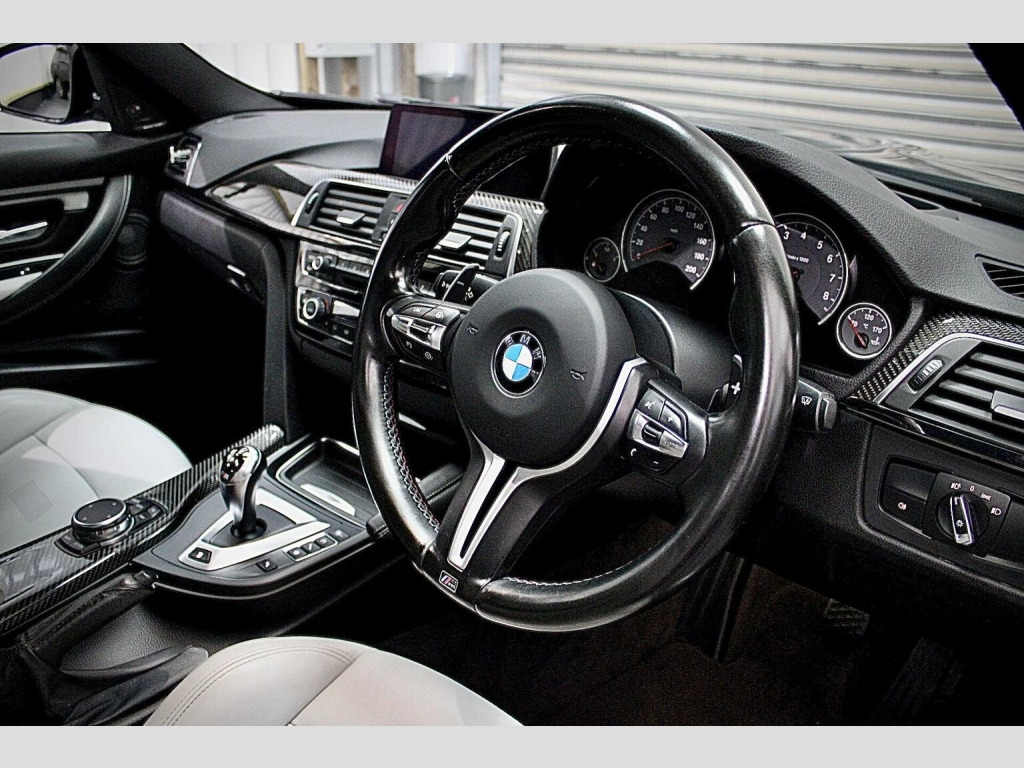 M&C Specialist Motors are proud to present this BMW M3 3.0 BiTurbo DCT finished in Stunning Sapphire Black Metallic with Contrasting Silverstone Merino Leather interior. This Particular example benefits from Full Service History Including a Recent Service at BMW, 2 Keys, Professional Navigation, Harmon/Kardon Sound System, Heated Silverstone Leather Interior, Heads Up Display, Reverse Camara + Front and Rear Parking Sensors, Freshly Refurbished 437M Alloy Wheels with Matching Continental Sport Contact 7s all Round, Front Splitter, Side Skirts and Rear Diffuser in Carbon Fibre, Comfort Access, Carbon Fibre With Black Chrome Interior Trim, Auto-Fold Mirrors, Light Package, Day Time Running Lights, Headlight Cleaning System, Dual Zone Climate Control, Front + Rear Electric Windows, Sun Protection Glazing, Front Armrest with Sliding Adjustment, Cruise Control, Air Conditioning, ISOFIX Anchoring Points, Split Rear Folding Seats, DSC + MDM, Electric Adjustable Mirrors, Remote Central Locking, Driver Airbag, Passenger Airbag, Tyre Inflation Kit + Tool Kit, Rear Head Rests, DAB + Radio + CD, USB + BLUETOOTH!, **COMPETITIVE FINANCE AVAILABLE**, If you would like any additional information, photos/videos or would like to arrange an appointment to view/test drive the vehicle, please contact us on 01923 549 135 or 07856 550 400. This Particular Vehicle comes with 3 Months Warranty + Breakdown Cover!, Extended vehicle warranty also available. ***VISIT OUR WEBSITE FOR NEW ARRIVALS***, www.mcspecialistmotors.co.uk, Call us today on 01923 549 135 or 07856 550 400