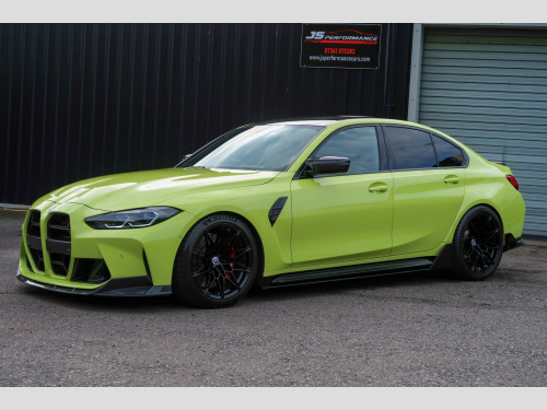 2023 [73] BMW M3 3.0 COMPETITION 820BHP VELOCITY STAGE 3 TUNED , , ---------------------------------------------------------------------, , JS Performance Cars are proud to offer this outstanding 2023 BMW M3 Competition finished in the iconic São Paulo Yellow, my personal favourite colour that truly sets this car apart. Originally supplied by BMW Canterbury as a 1-owner, 3,700-mile standard example, this M3 has since been tastefully and professionally upgraded with over £20,000 in enhancements, bringing it to an exceptional standard of performance and presentation. , This particular model is rear-wheel drive – a variant no longer available from BMW – offering purer handling dynamics and reduced drivetrain loss compared to xDrive versions. Its powered by the renowned S58 engine, now tuned to 820BHP by Velocity, one of the UKs most respected performance specialists. , It comes with an exceptional factory specification and desirable upgrades, all carried out with great care. The car has covered just 6,400 miles from new, has a full service history including the all-important running-in service, and I am happy to have it serviced before sale. This is a unique opportunity to own a one-of-a-kind, low-mileage M3 Competition thats ready to enjoy immediately. , Factory Specification Includes:, , São Paulo Yellow Metallic Paint, Carbon M Bucket Seats, Rear-Wheel Drive (now discontinued), BMW Laser Headlights, Carbon Interior and Exterior Pack, Heated Steering Wheel, Digital Cockpit with Navigation, , Performance and Styling Upgrades:, , Tuned to 820BHP by Velocity Tuning, Mossleman Hybird Turbos, SLN Front-Mounted Intakes, SLN Catless Downpipe, SLN Mid Pipes (valved system retains comfort under normal driving), AST Lowering Springs, 10mm Wheel Spacers (front and rear), Carbon Front Splitter, CSL-Style Carbon Kidney Grilles. , Additional Features:, , Ghost Immobiliser installed, Always run on 99 RON fuel, Proper warm-up and cool-down routine followed - meticulously owned. 2 x brand new Michelin PS4S rear tyres (295/30/20), , This M3 Competition is not to be confused with average examples on the market. With its rare spec, low mileage, high-quality modifications and stunning condition, it represents excellent value and serious appeal for any enthusiast or collector. , Part exchange welcome. Finance available. Please contact us to arrange a viewing or for more information. , ---------------------------------------------------------------------, , Finance is available on this car from 9.9% APR, , Get in touch with a member of the team to find out more. , ---------------------------------------------------------------------, , £68,995 - FINANCE AVAILABLE!