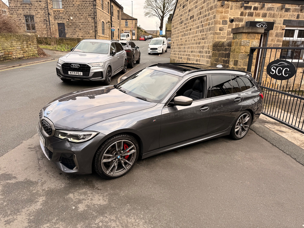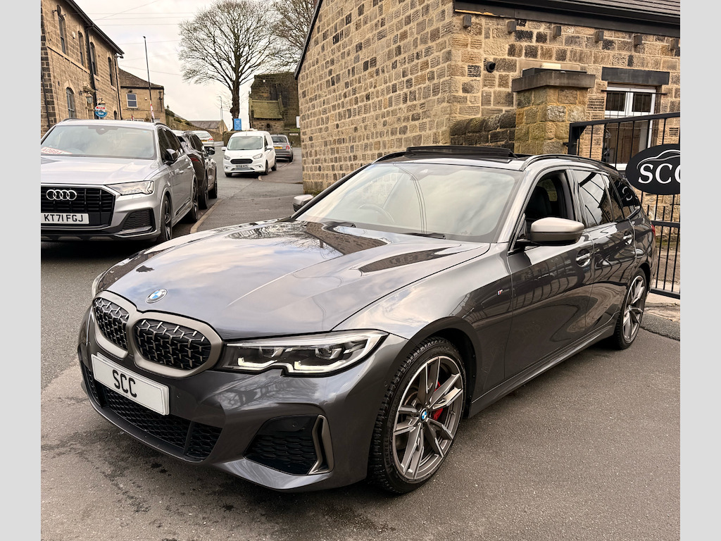 ***CAR IS ON SITE IN QUEUE FOR DETAILING & PHOTOGRAPHY*** BMW M340d xDrive Estate – Rare Pre-LCI 2021 with Full Spec! Its rare that we ever get one of these and to be lucky enough to buy one from a very nice customer with huge spec and someone who is fastidious on cleaning is exactly why we are here. Brian picked this pre lci version as the new screen idrive 8 in 2022 cars is quite hard to use and found test driving one that it was impossible to use on the move so not only saved thousands of pounds but got a much better user interface with this idrive 7 enabled car. We also love that this car doesnt have black wheels, grills and bodykit - doesn't need them - gives a very sophisticated look. This 2021 M340d Pre-LCI Estate (71-plate) is the ultimate blend of performance, luxury, and rarity. Powered by the 3.0-litre inline-six turbo diesel, it delivers 340 PS and 700 Nm, effortlessly combining speed and practicality. This example is fully loaded, featuring: Panoramic Glass Sunroof – floods the cabin with light Comfort Plus Package Uber rare M Sports Performance Seats & lumbar support – exceptional comfort and support Harman Kardon premium sound system – concert-quality audio Heated steering wheel – perfect for winter driving Available now for £36,995 – a rare opportunity to own a fully specced, performance-focused 3 Series Estate. Book your test drive today or call 01943 884551 to experience this extraordinary M340d for yourself. Don’t miss out on the opportunity to own this remarkable vehicle. Contact us to book a test drive today, or call 01943884551 today. 12V Power Socket in Front Storage Compartment,19in Alloy Wheels - M Light Double Spoke Style - 792 M - Bicolour Cerium Grey with Mixed Tyres and Runflat Tyres,Acoustic Glazing,Active Guard Plus,Adaptive M Suspension,Air Conditioning - Automatic with Three-Zone,Airbags,Alarm System - Thatcham 1 with Remote Control and Electronic Engine Immobiliser,Ambient Lighting with Welcome Light Carpet,Armrest - Integrated in Door Trim Front and Rear and in Front on the Centre Console,Armrest - Rear Centre with Two Cupholders,Attentiveness Assistant,Automatically Dimming Rear View Mirror,BMW Connected Package Professional,BMW ConnectedDrive Online Services,BMW Emergency Call,BMW Individual Roof Rails High-Gloss Shadow Line,BMW Live Cockpit Professional,BMW TeleServices,Battery Safety Cut-Off in the Event of an Accident,Bluetooth Hands Free with USB Audio Interface,Brake Pad Wear Indicator - Front and Rear,Bumper System - Front and Rear,Central Locking Switch - Doors - Fuel Filler Cap - Luggage Compartment,Centre Console Rear Storage Compartment - Ventilation Grille,Cerium Grey Finish Mirror Caps - Kidney Grilles - Exterior Air Inlets and Model Designation,Check Control Warning System for Monitoring of Lights and Door-Luggage Compartment Open Warning,Child Proof Locking System - Rear Doors,Child Seat ISOFIX Attachment - Rear,Crash Sensor,Cruise Control with Brake Function,Cup Holders in Centre Console - Front - 2 Cupholder Inserts with Clamping Elements - Inlay Matt Black,DAB Digital Radio,DSC - Dynamic Stability Control Plus,Deletion Lumbar Support-Width Adjustment Passenger Side,Door Pockets - Front and Rear,Door Sill Finishers - Aluminium Inserts in the Front - Brushed with BMW Designation,Drive Performance Control,Driving Experience Modes,Dynamic Brake Lights,EPS - Electric Power Steering,Electric Windows - Front and Rear,Electro Mechanical Parking Brake,Exterior Mirrors - Electrically Folding with Anti Dazzle,Exterior Parts in Body Colour,Exterior Trim - High-Gloss Shadowline,First Aid Kit and Warning Triangle,Floor Mats - Velour - Front and Rear,Glove Compartment - Illuminated - With Separate Small Compartment,Grab Handles - Integrated in Roof Lining x4,Headlights - Adaptive LED,Headlining - Anthracite,Heat Protection Glazing with Green Tint,HiFi Loudspeaker System,Incorrect Fuelling Protection System,Instrument Cluster,Instrument Panel in Sensatec,Interior Lighting,Interior Trim - Aluminium Tetragon,LED Fog Lights - Front,Larger Fuel Tank,Lashing Eyes in Luggage Compartment x4,Luggage Compartment - Light,M Designation on Front Side Panel - Left and Right,M Leather Steering Wheel,M Seat Belts,M Sport Brake - Red High Gloss,M Sport Differential,M Sport Exterior Styling,Model Designation on Tailgate - Right,OBC - On-Board Computer,Oil Sensor For Level and Grade - Warning by Check Control System,Optimum Shift Indicator,PDC - Park Distance Control - Front and Rear,Parking Assistant,Personal Profile,Preparation For High-Beam Assistant,Rain Sensor with Automatic Headlight Activation,Rear Lights - LED,Rear Seats,Remote Control - Including Integrated Key,Roof Mouldings - Body Colour,Run Flat Tyres,Seat Backrest Width Adjustment,Seat Belt Security Check for Driver and Front Passenger,Seat Heating for Driver and Front Passenger,Servotronic Steering,Shark Fin Aerial,Side Impact Protection,Split Folding Rear Seat,Sport Seats - Front,Square Exhaust Tailpipes - 2x,Start-Stop Button with Keyless Engine Start and Auto Start-Stop Deactivation Button,Steering Column Mechanically and Infinitely Variably Adjustable in Height,Steering Wheel - Gearshift Paddles,Stroke-dependent Dampers,Sun Protection Glazing,Sun Visors with Vanity Mirrors and Ticket Holder,TPMS - Tyre Pressure Monitoring System,Three-Point Seat Belts - All Seats,Tool Kit Located in Luggage Compartment,Two Tone Horn,Tyres - Reduced Rolling Resistance,Variable Sport Steering,Vehicle Key with M-Specific Designation,Visible VIN,Welcome Light,Windscreen Wipers - with Integrated Washing Jets,iDrive Controller,Comfort Plus Package,Front Lumbar Support,Interior Trim - Fine-Wood Oak Grain Open-Pored,Loudspeaker System - Harman Kardon,M Sports Seats - Driver and Passenger,Mineral Grey,Panoramic Glass Sunroof,Steering Wheel - Heated,Vernasca Leather - Black with Blue Contrast Stitching