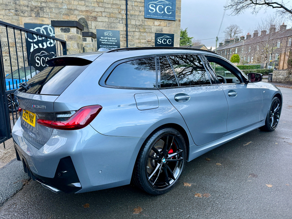 Experience the luxury, performance, and modern style of this BMW 3 Series Estate — now available for £50,295 1 owner and a full BMW main dealer history and BMW warranty. Finished in the striking Skyscraper Grey, this model also features a rare panoramic glass sunroof, a highly sought-after option that likely added around £1,400 to the original cost. Contemporary greys like this are incredibly on-trend, making this car one of the most desirable colour-and-spec combinations you can stock. Inside, you’re welcomed by Tacora Red leather seats, giving the cabin a bold, sporty, and premium feel. This is elevated further by the Carbon Fibre Interior Trim Pack, which boosts the performance-inspired look and feel. For comfort, the car includes heated front seats and a heated steering wheel — ideal for colder mornings and a definite plus when selling. You also get a Drive Recorder for added security and peace of mind. Audio and entertainment come via the Harman Kardon Surround Sound System, delivering a rich, immersive listening experience. And now, the highlight — the Technology Plus Package. This premium package layers in: BMW Head-Up Display, projecting key driving info (speed, navigation, warnings) directly onto the windscreen Live Cockpit Professional, with a high-resolution digital instrument cluster and central touchscreen display Driving Assistant Plus, giving you advanced driver-aid features such as lane-keeping, Active Cruise Control, and more BMW UK Parking Assistant Plus, which includes 3D surround-view (360°) cameras, remote view, and self-parking capabilities. Combined, these features make driving easier, safer, and more connected — especially in urban or congested traffic. Finishing off the spec are 19-inch Double Spoke Style 791M Jet Black alloy wheels and the panoramic glass sunroof, blending performance, style, and practicality beautifully. Don’t miss out on this exceptionally high-spec example. To arrange a viewing or book a test drive, contact us today or call 01943 884551. 12V Power Sockets,Acoustic Glazing,Active Guard Plus,Adaptive LED Headlights,Adaptive M Suspension,Air Conditioning - Automatic,Airbags,Alarm System,Ambient Lighting,Armrest,Attentiveness Assistant,Automatic Start-Stop Button,Automatically Dimming Rear View Mirror,BMW Emergency Call,BMW ID,BMW Live Cockpit Plus,BMW TeleServices,BMW iDrive,Battery in Luggage Compartment,Bumper System,Centre Armrest in Rear - Folding with 2 Cup Holders,Centre Lock Switch,Closing System with Central Locking,Condition Based Service,Connected Package Pro,ConnectedDrive Services,Crash Sensor,Cruise Control with Brake Function,Cup Holders - Centre Console x2,DAB Tuner,DSC - Dynamic Stability Control Plus,Door Sill Strips,Double-Jointed Spring-Strut Front Axle,Driving Experience Switch,Electric Windows - Front and Rear,Electro Mechanical Parking Brake,Electronic Engine Immobiliser,Exhaust Tailpipe Finishers - Visible,Exterior Items,Exterior Trim - Extended High-Gloss Shadowline,Exterior Trim - High-Gloss Shadowline,Floor Mats in Velour,Follow-Me-Home Function,Fuel Tank Breather System,Glove Compartment - Illuminated,Headlight Beam-Throw Control,Headlining - Anthracite,HiFi Speaker System - Digital Amplifier - 205W Amplified Power,High-Beam Assistant,Instrument Panel in Sensatec,Interior Lighting,Interior Trim - Aluminium Rhombicle,Interior and Exterior Mirror Package,Lashing Eyelets in Luggage Compartment,Luggage Compartment - Light,M Aerodynamics Package,M Lights Shadow Line,M Rear Spoiler,M Seat Belts,M Sport Brakes with Red Calipers,M Sport Differential,M Sport Exterior Styling,M Sport Leather Steering Wheel,Model Logo,Multifunction for Steering Wheel,Oil Sensor For Level and Grade,Parking Assistant,Plastic Fuel Tank,Power Sockets,Preparation for Driver Assistance,Rear Backrest - Foldable and Dividable by 40-20-40,Rear Lights - LED,Reversing Light,Roof Rails - High-Gloss Shadowline,Run Flat Tyres,Safety Battery Terminal Clamp,Seat Backrest Width Adjustment - Driver,Seat Heating for Driver and Front Passenger,Seats - Manual Adjustment for Height - Fore and Aft Position - Seat Depth - Backrest Tilt and Head Restraint Height,Shifting Point Display,Smartphone Integration,Speed Limiter,Split Folding Rear Seat,Sport Seats - Front,Steering Column Adjustment,Steering Wheel - Gearshift Paddles,Storage Compartment Package,Sun Protection Glazing,Sun Visors with Ticket Holder and Illuminated Vanity Mirror,TPMS - Tyre Pressure Monitoring System,Third Brake Light,Tool Kit Located in Luggage Compartment,Variable Sport Steering,Warning Triangle,Washer Jets - Heated,Welcome Light,19in Alloy Wheels - Double Spoke Style - 791 M - Jet Black with Mixed Tyres,Drive Recorder,Driving Assistant Professional,Harman Kardon Surround Audio Sound System,Interior Trim - Carbon Fibre,Panoramic Glass Sunroof,Parking Assistant Plus,Skyscraper Grey,Steering Wheel - Heated,Technology Plus Pack,Vernasca Leather - Tacora Red with Black Stitching,Wireless Charging Tray