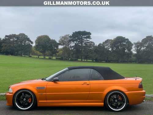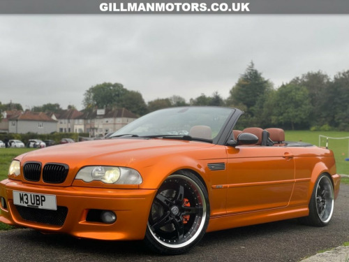 WELCOME TO GILLMAN HERE WE HAVE A STUNNING ONE OF A KIND COLLECTABLE M3 MANUAL PRESENTED IN SUNBURST ORANGE AND FULL BROWN LEATHER INTERIOR TO MATCH, TINTED WINDOWS ALL ROUND, SPLIT RIMS, HARMON KARDON SPEAKERS, ELECTRIC MEMORY SEATS, THE CAR HAS BEEN DROPPED SLIGHTLY AND SITS BEAUTIFULLY ON THE ALLOYS WITH NO RUBBING THE DRIVE IS TIGHT AND GEARBOX AND ENGINE ARE GREAT MODIFIED EXHAUST IS GRUNTY THE DRIVE IS ALL TOGETHER SUPERB COME SEE THIS ONE OFF FOR YOURSELF CALL TO BOOK VIEWING This 2002 BMW M3 i offers excellent peace of mind with its MOT valid until March 2026. Under the bonnet, you'll find a powerful 3.2 litre petrol engine, delivering the performance expected from the M3 model. This particular example combines its impressive vehicle identifiers with reassuring provenance information, ensuring you are investing in a well maintained machine. The M3 i variant is renowned for its dynamic driving experience, and this 2002 model is no exception. Its 3.2 litre engine provides a spirited performance that sets it apart from many other vehicles in its class. The extended MOT validity further underlines its readiness for the road, offering a compelling proposition for any enthusiast seeking a classic performance car. Electric Front Seat Adjustment, Full-Leather Upholstery, Metallic Paint