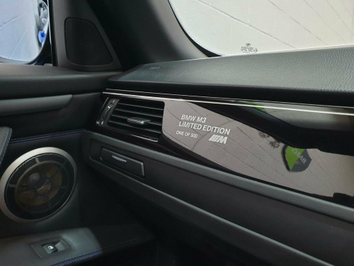 HUGE SPEC CAR WITH THOUSANDS IN EXTRAS, LIMITED EDITION 1 OF 500 WITH ONLY 50 UNITS FINISHED IN STUNNING SANTORINI BLUE AND CONFIRMED TO BE THE LOWEST MILEAGE VEHICLE LEFT, ONLY 17K MILES WITH FULL SERVICE HISTORY INCLUDING RUNNING IN SERVICE, OPTIONAL EXTRAS INCLUDE THE MUST HAVE ELECTRONIC DAMPER CONTROL EDC, ADAPTIVE HEADLIGHTS, KEYLESS ENTRY, INDIVIDUAL AUDIO UPGRADE, DAB RADIO, HI BEAM ASSIST, INDIVIDUAL PIANO BLACK INTERIOR TRIM, EXTENDED NOVILLO BLACK LEATHER WITH CONTRAST BLUE STITCHING, ELECTRIC ADJUSTABLE SEATS WITH MEMORY FUNCTION AND LUMBAR SUPPORT, WIDESCREEN PROFESSIONAL SAT NAV, HEATED SEATS, 19INCH ALLOYS FINISHED IN GLOSS BLACK, PRIVACY GLASS, DCT AUTO WITH TIPTRONIC AND F1 PADDLESHIFT GEARS, REAR PARKING SENSORS WITH VISUAL ON SCREEN DISPLAY, M3 CHERISHED PLATE, UPGRADES INCLUDE STAGE 2 EVOLVE REMAP WITH CAT DELETE AND GTS GEARBOX FLASH MAKES FOR A GREAT DRIVING EXPERIENCE WITH THE V8 POWERPLANT, STUNNING LOW MILEAGE EXAMPLE OF THIS APPRECIATING CLASSIC! Electric Windows x4, Electric Mirrors, Dual Climate, Leather Multi Function Sports Steering, Air Con, Traction Control, Auto Lights/Wipers, Fog Lights, Tyre Pressure Control, Lumbar Support, Auto Dim Rear View, Puddle Lights, Alarm, Immobiliser, Plus All Standard M3 Refinements, 2 KEYS, HPI CLEAR, RESERVE THIS VEHICLE NOW WITH A SMALL DEPOSIT, VIEWING BY APPOINTMENT AT OUR INDOOR SHOWROOM, LOW RATE FINANCE AND PCP, RAC WARRANTY SUPPLIED WITH 12 MONTHS BREAKDOWN COVER, PART EXCHANGE WELCOME, NATIONWIDE DELIVERY, PAYMENT VIA CRYPTO ACCEPTED, AWARDED 2020 SME BEST PRESTIGE CAR DEALERSHIP IN LANCASHIRE!