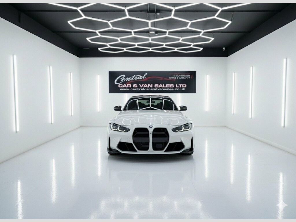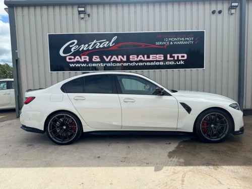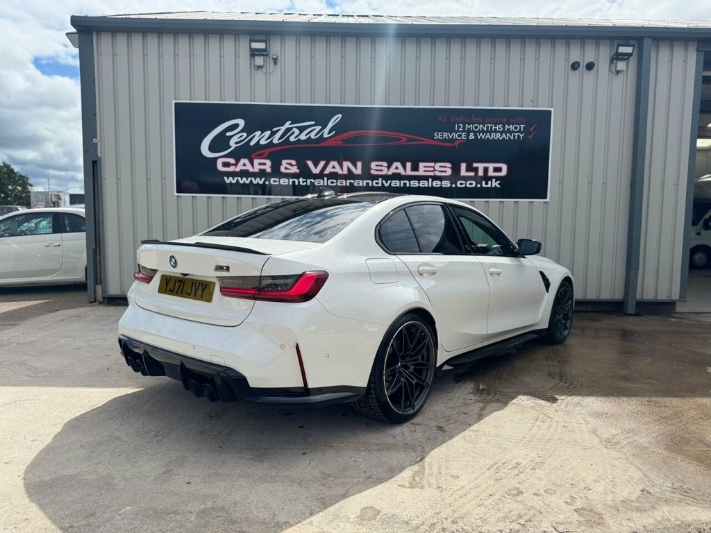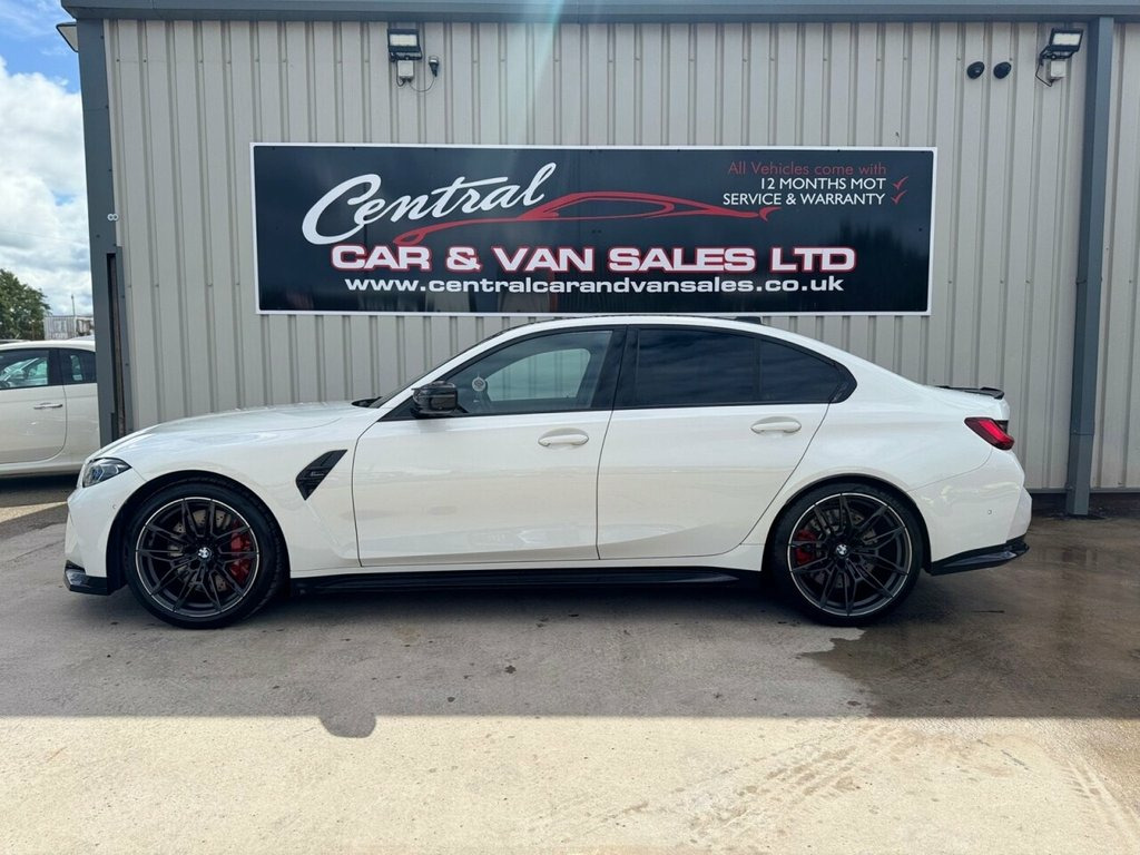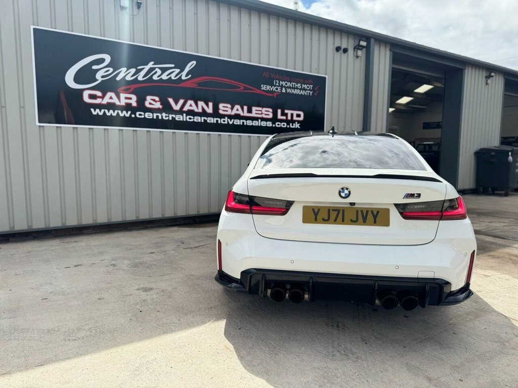 2021 BMW M3 3.0 Bi-Turbo Competition in Alpine White with M Carbon black leather bucket seats, The car has a carbon front grill and gloss black side skirts, rear spoiler & rear diffuser. The car has done 58,000 miles from new and is showing 0 previous owners, The car has Full BMW Digital Service History. Stored on the dashboard, The car is in fantastic condition throughout and has a high specification with factory extras. The M3 Competition features a 3.0-liter inline-6 twin-turbocharged engine producing 503 horsepower and 479 lb-ft of torque. It's paired with an 8-speed automatic transmission and comes standard with M xDrive all-wheel drive. which can be switched to RWD. Acceleration from 0 to 62 mph is achieved in 3.5 seconds, and the top speed is limited to 155 mph. This particular example comes with Electric Adjustable Memory M-Sport bucket seats in full leather with illuminated M logos, BMW Laser Technology Headlights, BMW Hands Free Driving, M1 M2 modes, MDM Mode, Driver Modes, 360 Cameras, Parking Camera, Parking Sensors, Lane Assist, BMW Apps, Illuminated storage area, Heated & Cooled Seats, BMW Collision Assist, Advanced BMW I-Drive, Keyless Entry & Start, Electronic Parking Brake With Auto Hold, Auto Lights, Ambient Lighting, Rear USBC X2, Digital Climate Control, Power Fold Mirrors. HPI Clear, Full V5 Log Book, Car Vertical Checked!