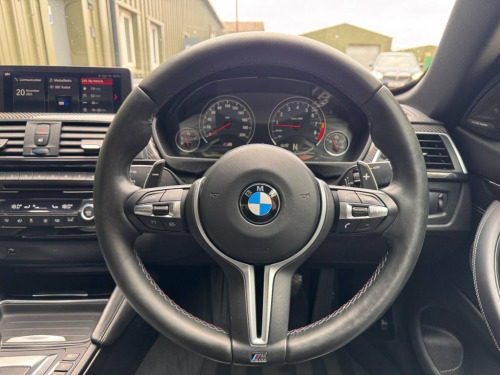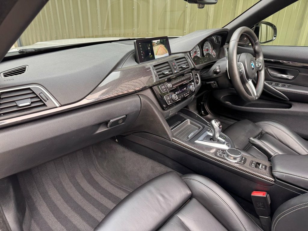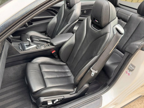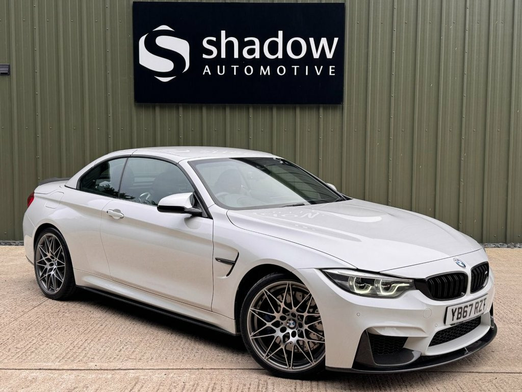 Shadow Automotive are delighted to offer this exceptional BMW M4 Competition Convertible, finished in striking Mineral White metallic with High-Gloss Shadow Line detailing and an array of genuine Carbon Fibre exterior enhancements including the front splitter, side skirts, rear diffuser and boot lip spoiler. The car sits perfectly on unmarked 20-inch bi-colour 666M Star Spoke alloy wheels shod with Continental SportContact 7 tyres, all with 5.5–6mm tread remaining and free from damage. Inside, the cabin features Extended Black Merino Leather upholstery with neck-level heating, driver's memory seat function, Carbon Fibre interior inlays and an Anthracite headlining, creating an unmistakably premium and performance-focused environment. Safety & Assistance Head-Up Display, adaptive LED headlamps with High Beam Assist, front and rear parking sensors with reverse camera, road-sign detection, and auto-dimming interior and exterior mirrors. Convenience & Technology Harman Kardon surround sound system, heated front seats, heated steering wheel, Professional Navigation system, Bluetooth and DAB digital radio, wireless mobile phone charging, neck warmer system, and a detachable wind deflector. This M4 is protected by an Autowatch Ghost 2 immobiliser (with information card supplied) and is offered for sale with a clear HPI report, documented maintenance history, two keys, and RAC warranty with 12 months roadside assistance. Maintained exclusively by BMW main deal 12V Power Socket in Front Centre Console, 20in Alloy Wheels - M Light Star-Spoke S, 8 Programmable Favourite Buttons, Active M Differential, Adaptive LED Headlights with High-Beam A, Adaptive M Suspension, Air Breather, Air Conditioning - Automatic with Two-Zo, Airbags, Alarm System - Thatcham 1 with Remote Co, Apple CarPlay Preparation, Armrest - Front with Sliding Adjustment, Automatically Dimming Rear View Mirror, Battery Safety Cut Off, BMW ConnectedDrive Online Services, BMW Emergency Call, BMW Individual High-Gloss Shadowline wit, BMW Professional Radio with Single CD Pl, BMW TeleServices, Bottle Holders Integrated into Door Trim, Brake Pad Wear Indicator - Front and Rea, Bumper System