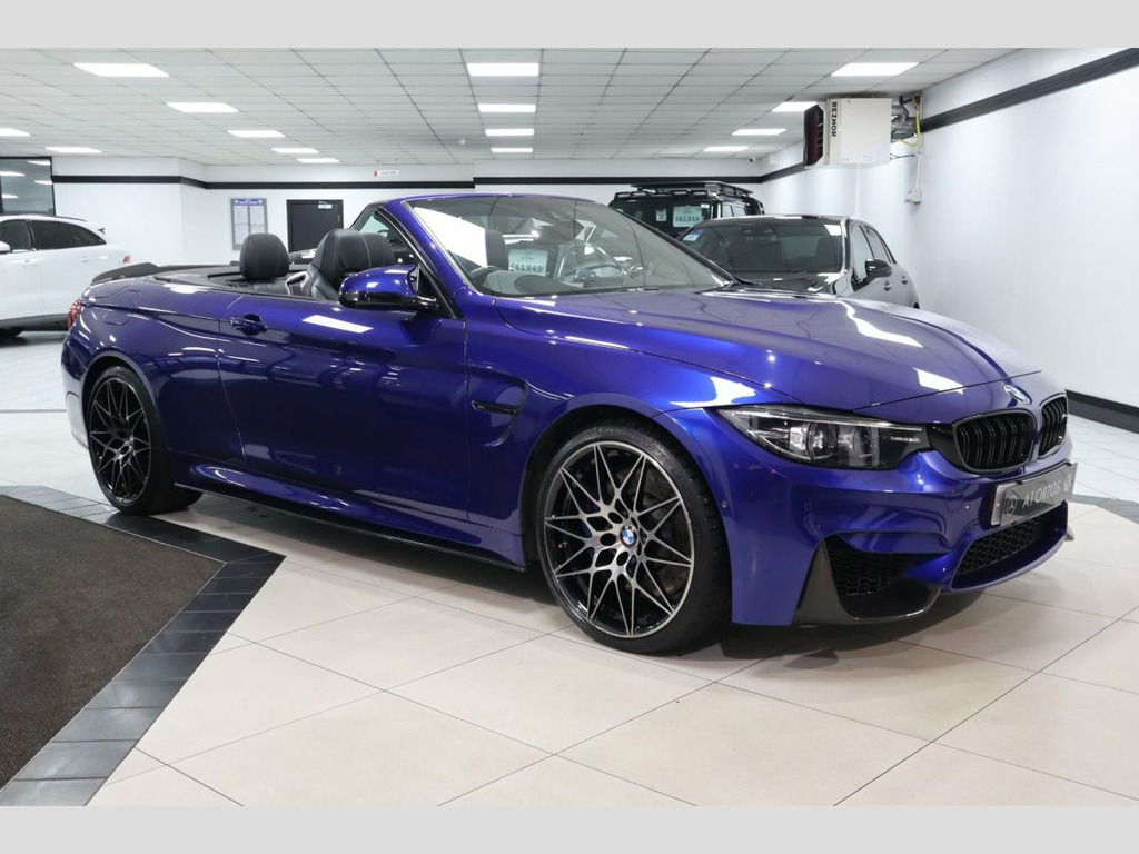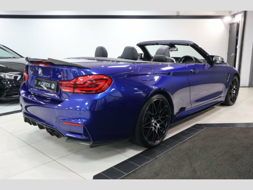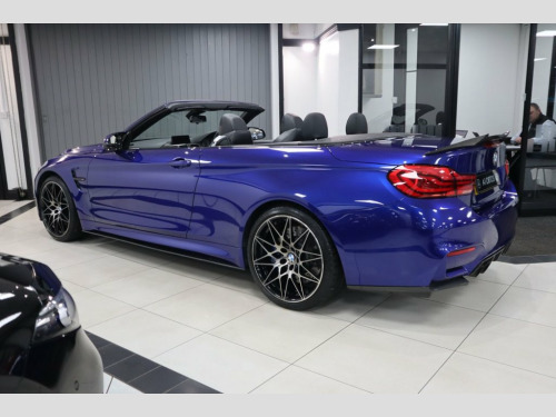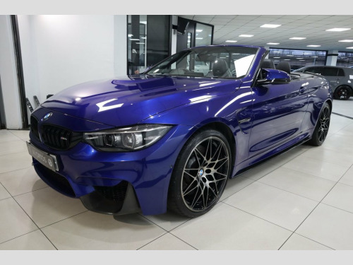 INCREDIBLE F83 M4 COMPETITION JUST ARRIVED INTO STOCK! COVERING 25K MILES FROM NEW BACKED WITH A STUNNING FULL BMW MAIN DEALER HISTORY! RUNNING IN SERVICE COMPLETE AT 1169 MILES JULY 2018! FOLLOWED BY 7 MAIN DEALER VISITS EVERY YEAR THEREAFTER! VERY SOUGHT AFTER EXAMPLE WITH THE ALL IMPORTANT SURROUND VIEW CAMERA FEATURE! FANTASTIC COLOUR, FINISHED IN SAN MARINO BLUE METALLIC! SPEC INCLUDES, CONVERTIBLE COMFORT PACKAGE, HEATED STEERING WHEEL, WARM AIR COLLAR, COMFORT ACCESS WITH SMART OPENER, UPGRADED 20 INCH M LIGHT FORGED ALLOY WHEELS, CARBON FIBRE M PERFORMANCE KIT, HARMAN/KARDON PREMIUM SOUND SYSTEM, M HEAD UP DISPLAY, SPEED LIMIT DISPLAY, CARBON FIBRE INTERIOR ELEMENTS WITH BLACK CHROME FINISHER, REVERSE ASSIST CAMERA, ADAPTIVE M CHASSIS, M TWIN CLUTCH TRANSMISSION WITH DRIVELOGIC, HEATED AND ELECTRIC FRONT SEATS, DRIVERS MEMORY SEAT, WIRELESS SMARTPHONE CHARGING, DAB TUNER! VERY SOUGHT AFTER INCREDIBLE EXAMPLE, EARLY VIEWING IS ESSENTIAL TO AVOID DISAPPOINTMENT, COMPREHENSIVE WARRANTY OPTIONS AVAILABLE , AA BREAKDOWN AVAILABLE STUNNING SHOWROOM CONDITION, MUST BE SEEN NOT TO BE MISSED, FIRST TO SEE WILL BUY, BE VERY QUICK THIS GEM WILL SOON GO!, VIEW MORE PICS ON OUR WEBSITE, PLEASE CALL FOR FULL SPEC, SIMPLY STUNNING! 20in Alloy Wheels - M Light Star-Spoke S, Comfort Access with Smart Opener, Convertible Comfort Package, High-Beam Assistant, Interior Trim Finisher - Carbon Fibre wi, Loudspeaker System - Harman Kardon, M Head-Up Display, Reversing Assist Camera, San Marino Blue, Speed Limit Display, Steering Wheel - Heated, Surround-View, Warm Air Collar, Wind Deflector