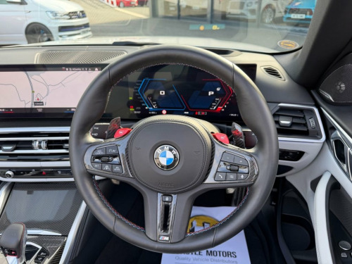 This 2024 BMW M4 3.0 BiTurbo Competition Convertible 2dr Petrol Ste Convertible is currently available for £64,999 in Liskeard Cornwall with Petrol engine and Automatic gearbox. For more information or to arrange a viewing, click here to send us an email using form below.