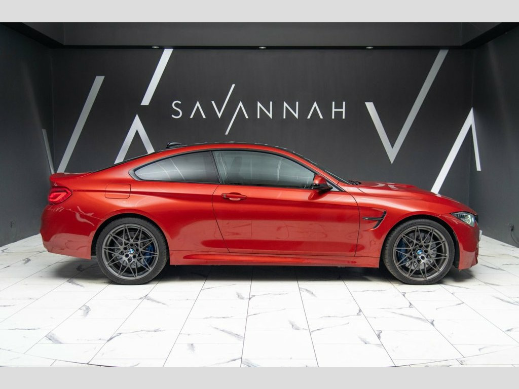 This BMW M4 3.0 BiTurbo Competition is a striking performance coupe engineered for purists, delivering 450ps of razor-sharp precision wrapped in unmistakable M presence. Finished in Sakhir Orange, its muscular stance is enhanced by the 20in forged M Star-Spoke 666M wheels (£175.00) and signature carbon-fibre reinforced plastic roof, combining aesthetic drama with purposeful weight reduction. The M Aerodynamics Package, quad black chrome exhaust tailpipes and High-Gloss Shadowline exterior trim underline its motorsport DNA, while Adaptive M Suspension, the Active M Differential and the full Competition Package ensure electrifying handling on any road. Inside, the cabin blends performance focus with BMW luxury, featuring Extended Merino Black Leather, lightweight M Sport seats, an 8.8in display, WiFi hotspot prep, enhanced Bluetooth with wireless charging, and premium interior finishes including Carbon Fibre trim (£395.00). A suite of added extras elevates the experience further, including Head-Up Display (£825.00), Reversing Assist Camera (£330.00), Sun Protection Glazing (£265.00), Heated Steering Wheel (£155.00) and Online Entertainment (£160.00), bringing total optional equipment to £2,305.00. A compelling blend of power, agility and craftsmanship, this M4 Competition stands as one of BMW M's finest expressions of performance engineering. 20in Alloy Wheels - M Light Star-Spoke S, 12V Power Socket in Front Centre Console, 20in Alloy Wheels - M Light Star-Spoke S, 8 Programmable Favourite Buttons, Active M Differential, Adaptive M Suspension, Air Breather, Air Conditioning - Automatic with Two-Zo, Airbags, Alarm System - Thatcham 1 with Remote Co, Armrest - Front with Sliding Adjustment, Automatically Dimming Rear View Mirror, BMW ConnectedDrive Online Services, BMW Emergency Call, BMW Individual High-Gloss Shadowline wit, BMW Professional Radio with Single CD Pl, BMW TeleServices, Battery Safety Cut Off, Bottle Holders Integrated into Door Trim, Brake Pad Wear Indicator - Front and Rea, Bumper System - Front and Rear, Carbon-F