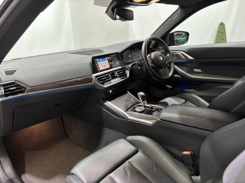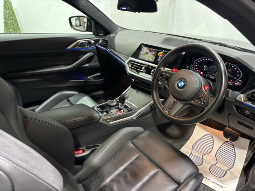 A GREAT EXAMPLE OF A BMW M4 3.0 BiTurbo Competition Coupe 2dr Petrol Steptronic M xDrive Euro 6 (s/s) (510 ps), IN BLACK WITH JUST 21K MILES FULL MAIN DEALER HISTORY NAV,CAM,HEADUP DISPLAY,20"ALLOYS ONE FORMER KEEPER FULL MAIN DEALER HISTORY FINANCE AVAILABLE UP TO 5 YEARS WITH NO DEPOSIT HPI CLERA PART EXCHANGE WELCOME 12V Power Socket in Front Centre Console, 19in Front - 20in Rear Alloy Wheels - M , 8 Programmable Favourite Buttons, ABS - Anti Lock Braking System, AUX-In Connection, Adaptive M Suspension, Air Conditioning - Automatic with Three-, Airbags, Alarm, Ambient Lighting, Automatic Windscreen Wiper and Headlight, BMW ConnectedDrive Online Services, BMW Emergency Call, BMW Gesture Control, BMW Individual High-Gloss Shadowline wit, BMW Live Cockpit Professional, BMW Mobility Kit, BMW Shadow Lights, BMW TeleServices, Bottle Holders Integrated into Door Trim, Bumper System - Front and Rear, Carbon-Fibre Reinforced Plastic - CFRP -, Child Seat ISOFIX Attachment, Compartment in Front of Cupholder, Cond