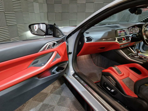 2021 / 71 BMW M4 "Competition" Ultimate Pack, Coupe X Drive. Finished in Brooklyn Grey, with Fiona Red, and Black Individual Leather, 41000 Miles, FSH. Massive Spec (Almost £22K in Factory Options) Inc : ULTIMATE PACK, Carbon Bucket Seats, Factory Carbon Interior Kit, Carbon Mirror Caps, Carbon Exterior Pack, Laser Lights, Visibility Pack, CSL BMW Individual Leather, Stripe Kit (Can Be Removed if Preferred) Black 19" Alloys Staggered, Heated Steering Wheel, Park Assist Plus Pack, Stunning Car in The Best Colour, With A Mammoth Spec ! Car has Just been serviced this week and had a set of £900 RSL 29 brake pads, the best brake pads you will find. All usual dealer facilities available, Warranties, Finance and Part Exchange Available. 12V Power Socket in Front Centre Console, 19in Front - 20in Rear Alloy Wheels - M , 8 Programmable Favourite Buttons, ABS - Anti Lock Braking System, AUX-In Connection, Adaptive M Suspension, Air Conditioning - Automatic with Three-, Airbags, Alarm, Ambient Lighting, Automatic Windscreen Wiper and Headlight, BMW ConnectedDrive Online Services, BMW Emergency Call, BMW Gesture Control, BMW Individual High-Gloss Shadowline wit, BMW Live Cockpit Professional, BMW Mobility Kit, BMW Shadow Lights, BMW TeleServices, Bottle Holders Integrated into Door Trim, Bumper System - Front and Rear, Carbon-Fibre Reinforced Plastic - CFRP -, Child Seat ISOFIX Attachment, Compartment in Front of Cupholder, Cond