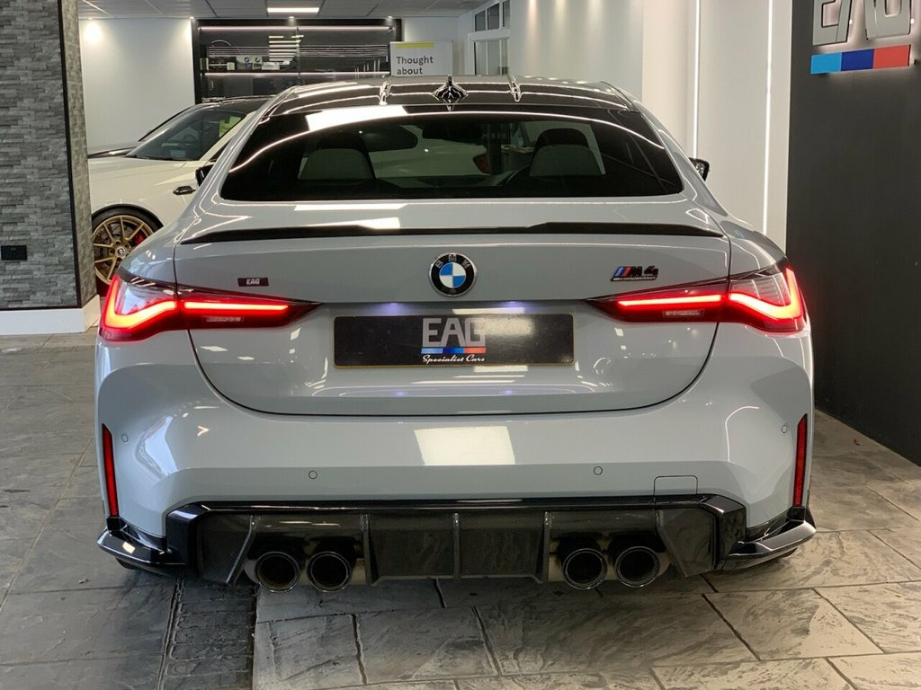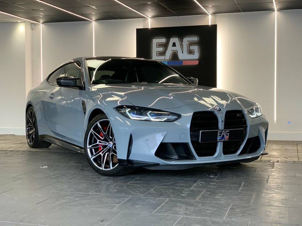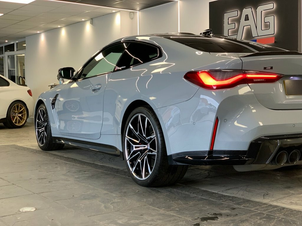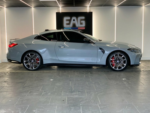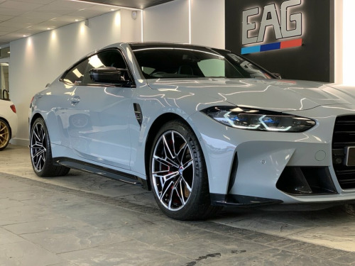 2021 (21) BMW M4 COMPETITIONS finished in Brooklyn Grey with Silverstone Merino leather and 825M alloy wheels. Factory spec includes; carbon exterior package, comfort pack, visibility pack and park assist plus which consist of; heated steering wheel, sun protection and acoustic comfort glass, comfort access, automatic boot lid, red high gloss brake calipers, interior and exterior mirrors with auto dimming, fully electric and heated front seats with drivers memory, storage compartment package, M seat belt stitching, carbon interior trim, BMW Laser Lights, 360 surround view cameras, Harman/Kardon surround sound system, storage tray with wireless charging, DAB radio, Apple CarPlay, Android Auto and Bluetooth connectivity. 1 owner. Full service history. PCP and HP finance available from 9.9% APR (subject to status) 12V Power Socket in Front Centre Console, 19in Front - 20in Rear Alloy Wheels - M , 8 Programmable Favourite Buttons, ABS - Anti Lock Braking System, AUX-In Connection, Adaptive M Suspension, Air Conditioning - Automatic with Three-, Airbags, Alarm, Ambient Lighting, BMW ConnectedDrive Online Services, BMW Gesture Control, BMW Individual High-Gloss Shadowline wit, BMW Live Cockpit Professional, BMW Mobility Kit, BMW Shadow Lights, BMW TeleServices, Bottle Holders Integrated into Door Trim, Bumper System - Front and Rear, Carbon-Fibre Reinforced Plastic - CFRP -, Child Seat ISOFIX Attachment, Compartment in Front of Cupholder, Condition Based Service, Connected Package Professional, Control D