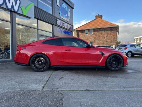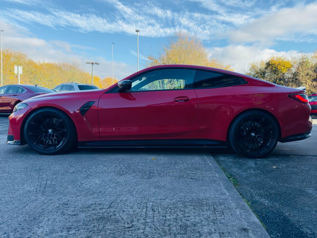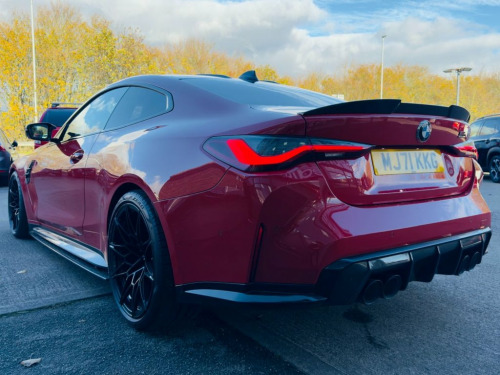 This 2021 BMW M4 BiTurbo Competition is a remarkable find, boasting exceptionally low mileage for its age, having covered just 16,500 miles. This particular example, presented in the Competition trim, is powered by a potent 3.0 litre petrol engine and meets Euro 6 emission standards. It comes equipped with the desirable M Carbon Exterior Package, enhancing its sporty aesthetic. For convenience and safety, it features Parking Assistant Plus, offering a 360 degree camera view along with front and rear sensors, and the Visibility Pack which includes advanced LED and Laser headlights. The Comfort Package adds a touch of luxury, notably with a heated steering wheel. The performance of this M4 is truly impressive, achieving 0-62mph in a swift 3.9 seconds, a figure that highlights its dynamic capabilities compared to many other vehicles. Further enhancing its appeal are its surprisingly large boot space, offering practicality for everyday use, and its placement within a low insurance group, making it an economical choice for performance car enthusiasts. 12V Power Socket in Front Centre Console, 19in Front - 20in Rear Alloy Wheels - M , 8 Programmable Favourite Buttons, ABS - Anti Lock Braking System, AUX-In Connection, Adaptive M Suspension, Air Conditioning - Automatic with Three-, Airbags, Alarm, Ambient Lighting, BMW ConnectedDrive Online Services, BMW Gesture Control, BMW Individual High-Gloss Shadowline wit, BMW Live Cockpit Professional, BMW Mobility Kit, BMW Shadow Lights, BMW TeleServices, Bottle Holders Integrated into Door Trim, Bumper System - Front and Rear, Carbon-Fibre Reinforced Plastic - CFRP -, Child Seat ISOFIX Attachment, Compartment in Front of Cupholder, Condition Based Service, Connected Package Professional, Control D