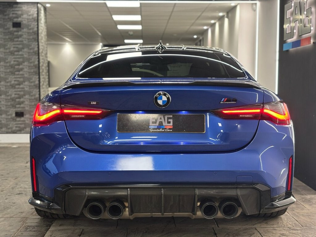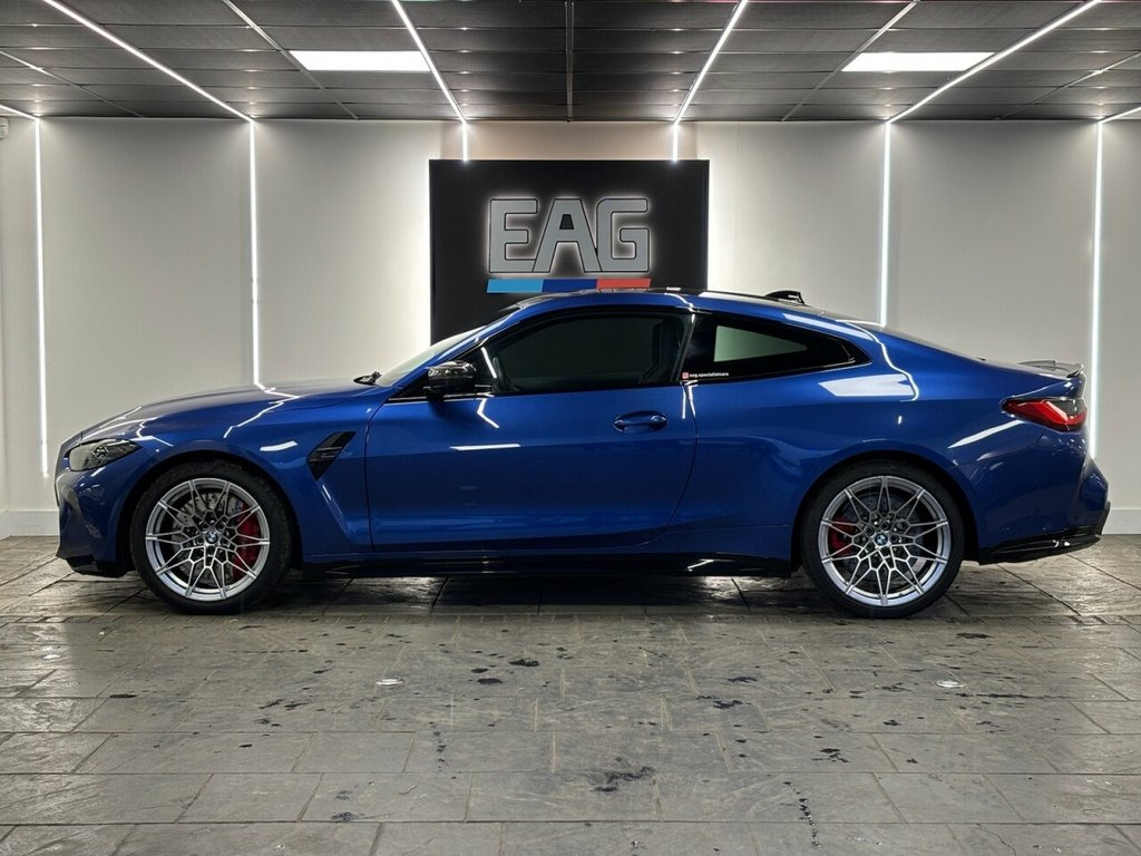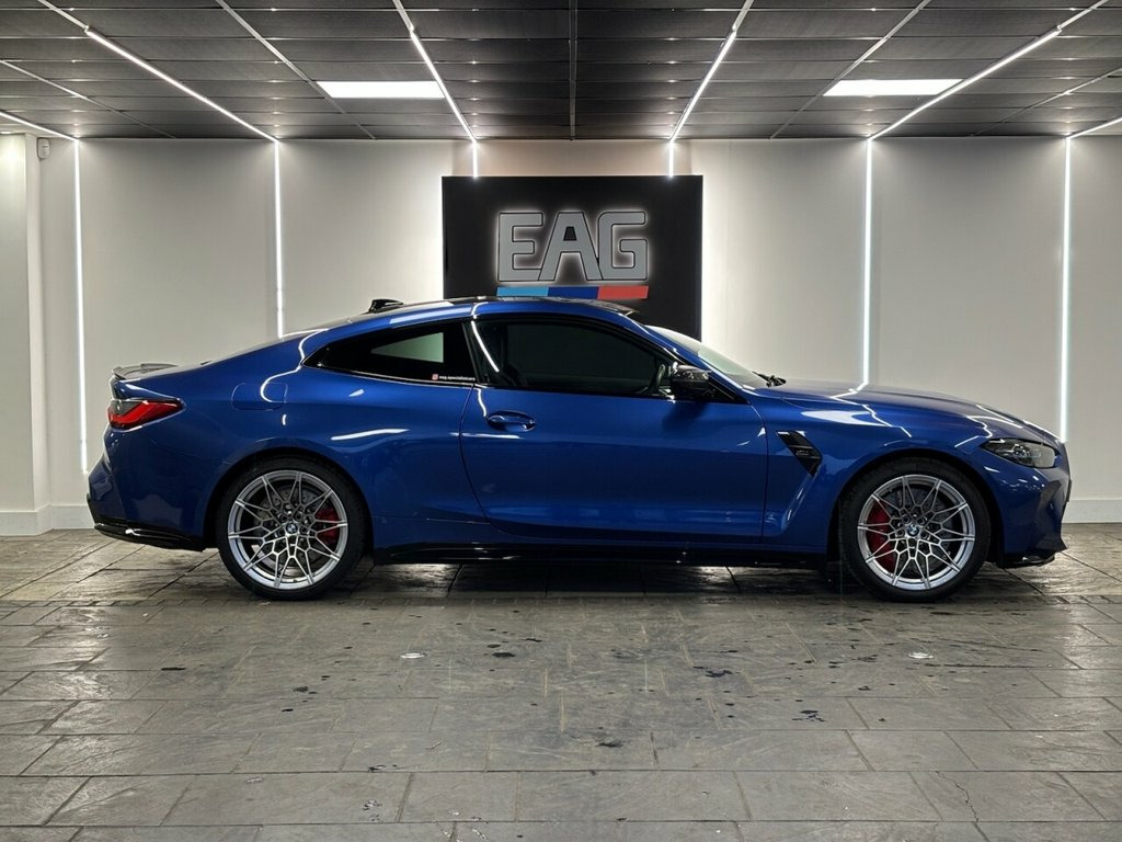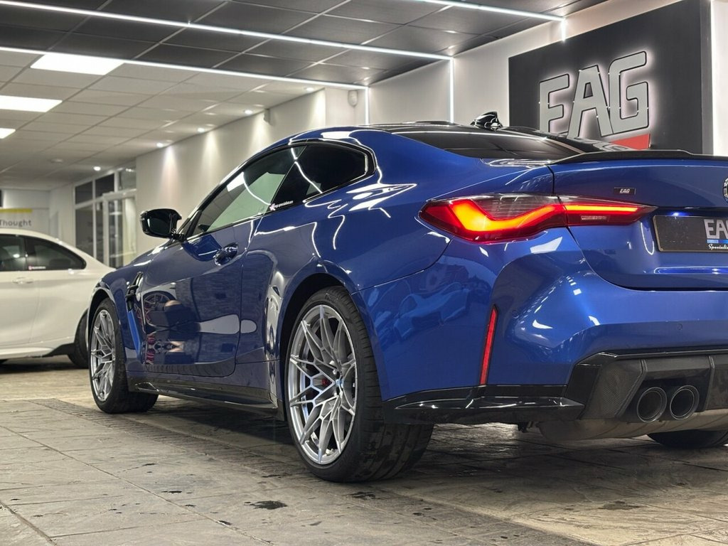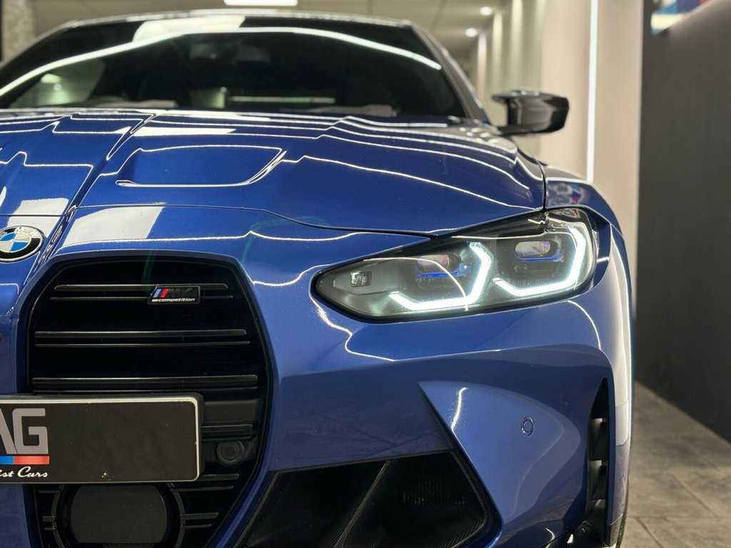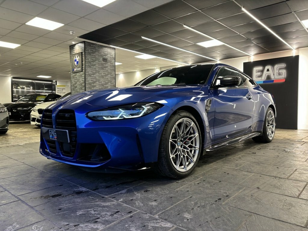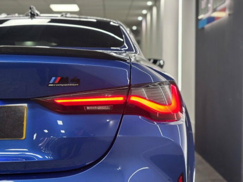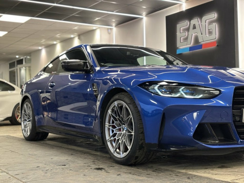 2022 (72) BMW M4 COMPETITION X-DRIVE Finished in Portimao Blue with Black Merino Leather and 826M alloys. Factory spec includes the BMW ultimate package which consists of; heated steering wheel, adaptive M chassis, comfort access system, auto boot-lid, sun protection glazing, M carbon bucket seats, fully heated and electric front seats with driver memory, storage compartment package, interior carbon fibre trims, BMW lazer lights with high beam assist, driving assistant professional, active guard, parking assistance system plus, head-up display, Harman/Kardon surround sound system, telephony with wireless charging, Apple carplay and Android auto, DAB radio and Bluetooth connectivity. 1 owner. Full service history. PCP and HP finance available from 9.9% APR (subject to status) 19in Front - 20in Rear Alloy Wheels - M , Acoustic Glass, Active Guard Plus, Adaptive M Suspension, Air Conditioning - Automatic with Three-, Airbags, Alarm System, Ambient Lighting, Armrests, Automatic Start-Stop Button, BMW ConnectedDrive Online Services, BMW Emblem on Engine Compartment Lid and, BMW Emergency Call, BMW Individual Lights - Shadowline, BMW Kidney - Frameless with Horizontal D, BMW Live Cockpit Professional, BMW TeleServices, Battery in Luggage Compartment, Bumper System - Front and Rear, Centre Armrest in Rear - Folding with 2 , Centre Lock Switch, Closing System with Central Locking, Condition Based Service, Connected Package Professional, Crash Sensor, Cruise Control incl