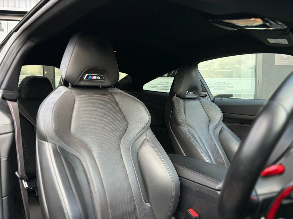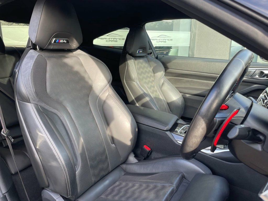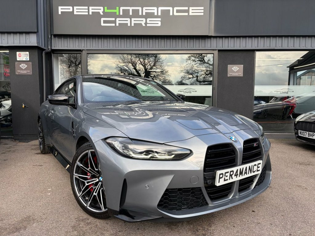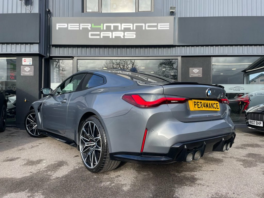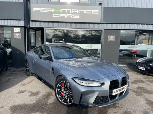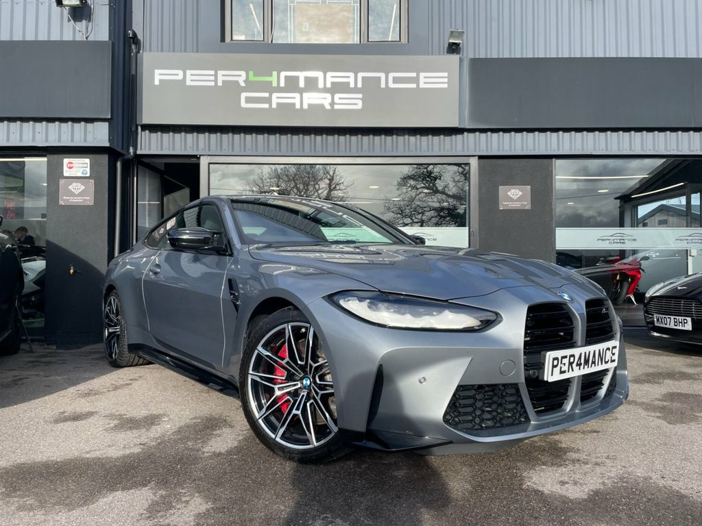 PER4MANCE CARS ARE DELIGHTED TO OFFER THIS STUNNING 2021 BMW M4 3.0 BITURBO COMPETITION (510PS) FINISHED IN SKYSCRAPER GREY METALLIC WITH EXTENDED MERINO BLACK LEATHER SPORTS SEATS, 19" FRONT AND 20" REAR M DOUBLE SPOKE FORGED BICOLOUR BLACK ALLOY WHEELS, HARMAN KARDON SURROUND SOUND, 10.25" TOUCHSCREEN WITH SATELLITE NAVIGATION, BLUETOOTH AND DAB, PARKING ASSISTANT, CRUISE CONTROL WITH BRAKE FUNCTION, HEAD UP DISPLAY, M REAR LIP SPOILER, SUN PROTECTION GLAZING, HIGH BEAM ASSIST, LED HEADLIGHTS, 3 ZONE CLIMATE CONTROL, AUTO LIGHTS AND WIPERS, M SPORTS SEATS, DRIVERS MEMORY SEATS, HEATED FRONT SEATS, ADAPTIVE M SUSPENSION, ISOFIX ANCHOR POINTS, M SEAT BELTS, KEYLESS GO ANJD MUCH MORE... THIS CAR MAY NOT BE ON SITE, PLEASE CALL TO BOOK AN APPOINTMENT. Full dealer facilities available, Finance available, please apply via our website or call for a quote. We have a team of experienced buyers who hand pick our cars from all parts of the UK so you can buy with confidence all vehicles are HPI Clear and prepared to the highest standard. We believe in providing our customers with a personal and first class level of service, Full dealer facilities available, Part exchanges welcomed. Please call Sales on 0333 988 7777 or email [email protected] 12V Power Socket in Front Centre Console, 19in Front - 20in Rear Alloy Wheels - M , 8 Programmable Favourite Buttons, ABS - Anti Lock Braking System, AUX-In Connection, Adaptive M Suspension, Air Conditioning - Automatic with Three-, Airbags, Alarm, Ambient Lighting, Automatic Windscreen Wiper and Headlight, BMW ConnectedDrive Online Services, BMW Emergency Call, BMW Gesture Control, BMW Individual High-Gloss Shadowline wit, BMW Live Cockpit Professional, BMW Mobility Kit, BMW Shadow Lights, BMW TeleServices, Bottle Holders Integrated into Door Trim, Bumper System - Front and Rear, Carbon-Fibre Reinforced Plastic - CFRP -, Child Seat ISOFIX Attachment, Compartment in Front of Cupholder, Cond