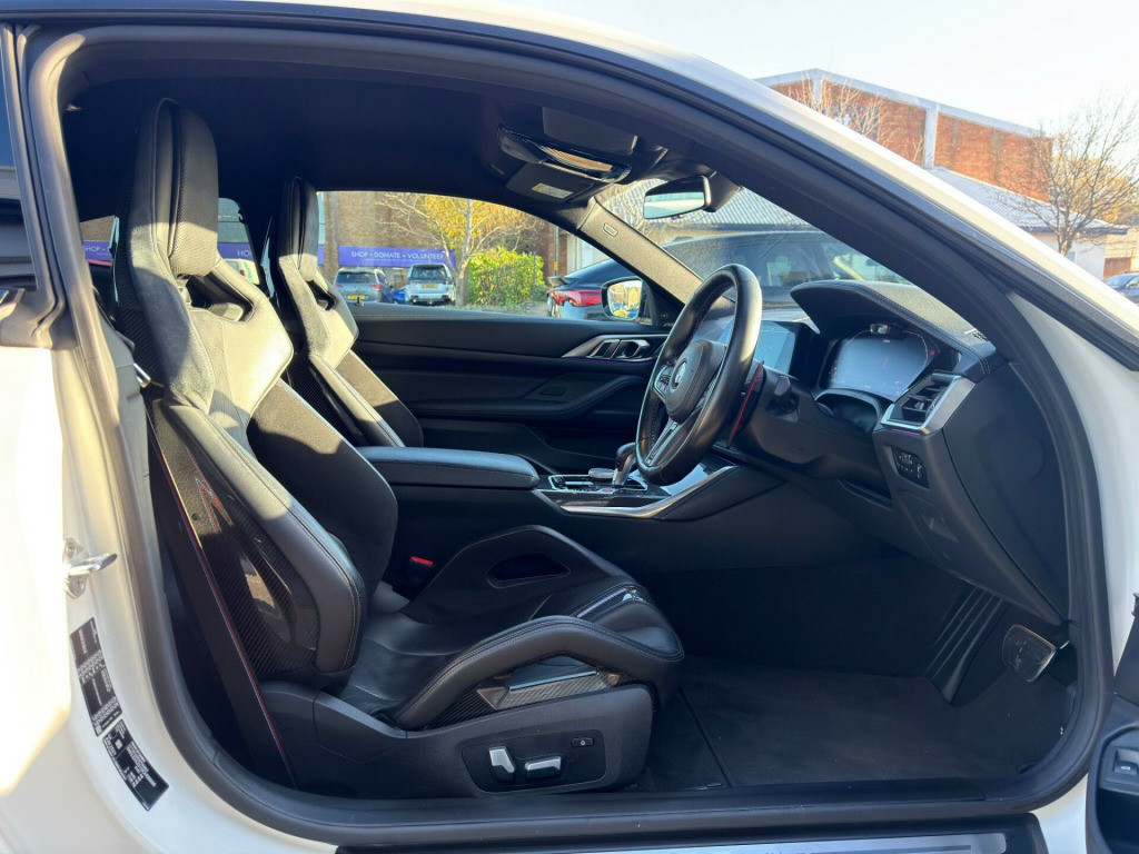 2 Owner Car, 3.0 BiTurbo Competition Modifications: MMR Lowering Kit, Wheel Spacers.Factory Options: M Pro Pack (M Carbon Ceramic Brakes, M Driver’s Package – Top Speed Increase), Ultimate Package (M Carbon Fibre Lightweight Bucket Seats, M Carbon Exterior Package – Carbon Front Splitter, Carbon Mirror Caps, Carbon Air Inlet Inserts, Carbon Rear Diffuser, Carbon Rear Spoiler. Harman Kardon Sound System, Visibility Pack - BMW Laserlights. Comfort Pack - Comfort Access, Heated Steering Wheel, Electric Bootlid. Technology Plus Pack - Driving Assistant Professional. Parking Assistant Plus – Surround View Camera. Drive Recorder). Anniversary Badging, Black Full Merino Leather Interior. Standard Specification: M Heads Up Display, Carbon Fibre Roof, 19/20” 826M Forged Alloy Wheels, Heated Front Seats, Carbon Fibre Interior Trim, Adaptive M Suspension, 3-Zone Climate Control, Ambient Lighting, BMW Gesture Control, BMW Individual High-Gloss Shadowline with Extended Contents, BMW Live Cockpit Professional, Cruise Control with Brake Function, Enhanced Bluetooth with Wireless Charging, Apple CarPlay, Android Auto, DAB Radio, Satellite Navigation, Adaptable Driving Modes with Configurable M1 and M2 Modes, Speed Limiter, Electric Folding Wing Mirrors, High-Beam Assistant, M Sport Differential, M Seat Belts. Finished in Frozen Brilliant White Metallic Paint.Tech Pack, Tech Package, Technology Package. This car does not have a panoramic roof.All our cars are HPI clear. Please contact us for your own personal video presentation of this particular car. We offer competitive finance rates with our in-house team from PCP, lease purchase and HP. Whilst we make every effort to ensure that the specification and technical information for the cars on our website is correct, some of it is supplied by third party providers and we cannot guarantee its accuracy. It is therefore important that you do not solely rely on this information.. M Heads Up Display, Carbon Fibre Roof, 19/20” 826M Forged Alloy Wheels, Heated Front Seats, Carbon Fibre Interior Trim, Adaptive M Suspension, 3-Zone Climate Control, Ambient Lighting, BMW Gesture Control, BMW Individual High-Gloss Shadowline with Extended Contents, BMW Live Cockpit Professional, Cruise Control with Brake Function, Enhanced Bluetooth with Wireless Charging, Apple CarPlay, Android Auto, DAB Radio, Satellite Navigation, Adaptable Driving Modes with Configurable M1 and M2 Modes, Speed Limiter, Electric Folding Wing Mirrors, High-Beam Assistant, M Sport Differential, M Seat Belts, MMR Lowering Kit, Wheel Spacers, M Pro Pack, M Carbon Ceramic Brakes, M Driver’s Package – Top Speed Increase, Ultimate Package, M Carbon Fibre Lightweight Bucket Seats, M Carbon Exterior Package – Carbon Front Splitter, Carbon Mirror Caps, Carbon Air Inlet Inserts, Carbon Rear Diffuser, Carbon Rear Spoiler, Harman Kardon Sound System, Visibility Pack – BMW Laserlights, Comfort Pack – Comfort Access, Heated Steering Wheel, Electric Bootlid, Technology Plus Pack – Driving Assistant Professional, Parking Assistant Plus – Surround View Camera, Drive Recorder, Anniversary Badging, Black Full Merino Leather Interior.
