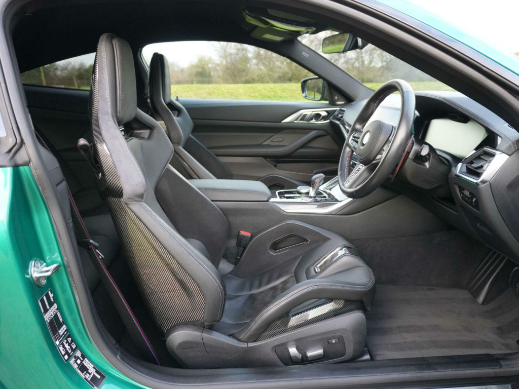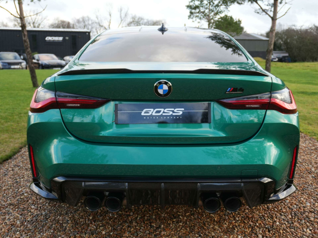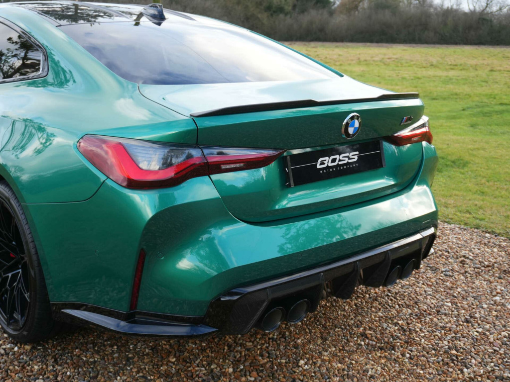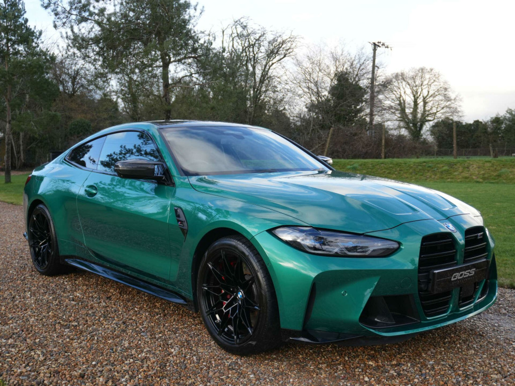 2023 BMW M4 Competition M xDrive Coupe11,600 miles - Full BMW main dealer service history including running-in service completedFinished in Isle of Man Green Metallic with Black full Merino leather interior, this M4 Competition xDrive Coupe benefits from the Ultimate Package, offering a comprehensive factory specification alongside BMW's all-wheel-drive performance.Key details:- 2023 / 72 plate- 11,600 miles- M4 Competition with M xDrive- 3.0-litre twin-turbocharged straight-six petrol engine (503 bhp)- 8-speed automatic transmission- M xDrive all-wheel drive- Ultimate Package specification:- BMW Laserlights with High Beam Assist- Head-up display- Driving Assistant Professional- Adaptive cruise control- Lane keep assist- Active collision warning- Parking Assistant Plus with 360 surround view cameras- Harman Kardon surround sound system- Heated steering wheel- Heated front seats- Electric front seats with memory function- Comfort Access (keyless entry)- Wireless phone charging- Sun protection glazing- Electric bootlid operation- Extended ambient interior lightingAdditional features:- Isle of Man Green Metallic exterior- Black full Merino leather interior- Carbon fibre interior trim- M seat belts- Adaptive M suspension- M Sport differential- Adaptive LED headlights- High-gloss Shadowline exterior trim- 19''/20'' staggered M alloy wheelsHistory & ownership:- Full BMW main dealer service history- Running-in service completedDisclaimer: Whilst every effort has been taken to ensure accuracy of all our vehicles information, some inaccuracies may occur. It is important that you do not rely on this information but check with Boss motor company limited about any items which may affect your decision to buy this vehicle.Fuel consumption and power usage figures are for guidance only. Factors such as driving style, weather, loading, traffic conditions, all affect the rate at which fuel or power is consumed. It is likely that some journeys will result in greater fuel consumption for the same distance than other journeys. You would be wise to ensure the power range remains above 20% at all times., in front - 20in rear alloy wheels - m double spoke - 826 - forged - jet black with mixed tyres, active guard plus, adaptive m suspension, air conditioning - automatic with three-zone, airbags, alarm system, ambient lighting, armrests, automatic start-stop button, bmw connecteddrive online services, bmw emblem on engine compartment lid and tailgate, bmw emergency call, bmw individual lights - shadowline, bmw kidney - frameless with horizontal double grille slates - black high-gloss with model badge, bmw live cockpit professional, bmw teleservices, battery in luggage compartment, bumper system - front and rear, centre lock switch, closing system with central locking, condition based service, connected package professional, crash sensor, cruise control including speed limiting function - lim button, cupholder, dab radio, dsc - dynamic stability control plus, door sill finishers with aluminium inserts and model inscriptions, door sill strips, double-jointed spring-strut front axle, driving assistant, driving experience switch, electric memory seats, electric window, electronic differential lock, electronic engine immobiliser, extended storage, exterior mirror caps and rear spoiler in high-gloss black, exterior trim - extended high gloss shadowline, exterior trim - high-gloss shadowline, floor mats - velour, folding wing mirrors with auto-dimming, follow-me-home function, front heated seats, front lumbar support, front and rear apron plastic in body colour, galvanic controls, glove compartment - illuminated, harman kardon surround audio sound system, headlight beam-throw control, headlining - anthracite, heat protection - sun protection glazing, high-beam assistant, illuminated bow-type door handles - in body colour - drivers side with door lock, interior trim - carbon fibre, led rear lights, language version english handbook, lower edges of bumpers - side sills - edge binding of diffuser and diffuser in black high-gloss, luggage compartment lights, m compound brakes with red high gloss, m drive, m drive professional, m seat belts, m sport differential, m sport seats, m steering wheel, model badges in black, model logo - rear right m4 competition inscription, multifunction for steering wheel, oil sensor for level and grade, parking assistant, parking brake - electromechanical, power socket 12v, power sockets, rear backrest - foldable and dividable by 40-20-40, rear-view mirror with auto-dimming, reversing light, roof aerial bulge and roof mouldings in black high-gloss, runflat indicator, safety battery terminal clamp, shifting point display, side impact protection, smartphone integration, steering column adjustment, strakes in front side panel - black matt-black high-gloss with model badge, sun protection glass, sun visors with ticket holder and illuminated vanity mirror, third brake light, through-loading system, tool kit located in luggage compartment, tyre pressure sensors, tyre repair kit, variable sport steering, warning triangle, washer jets - heated, welcome light, acoustic glass, centre armrest in rear - folding with 2 cup holders, enhanced bluetooth and wireless charging, head-up display, interior trim - black high gloss, tailpipe finishers in black chrome, wifi hotspot, drive recorder, isle of man green, m carbon bucket seats, parking assistant plus, steering wheel - heated, ultimate package